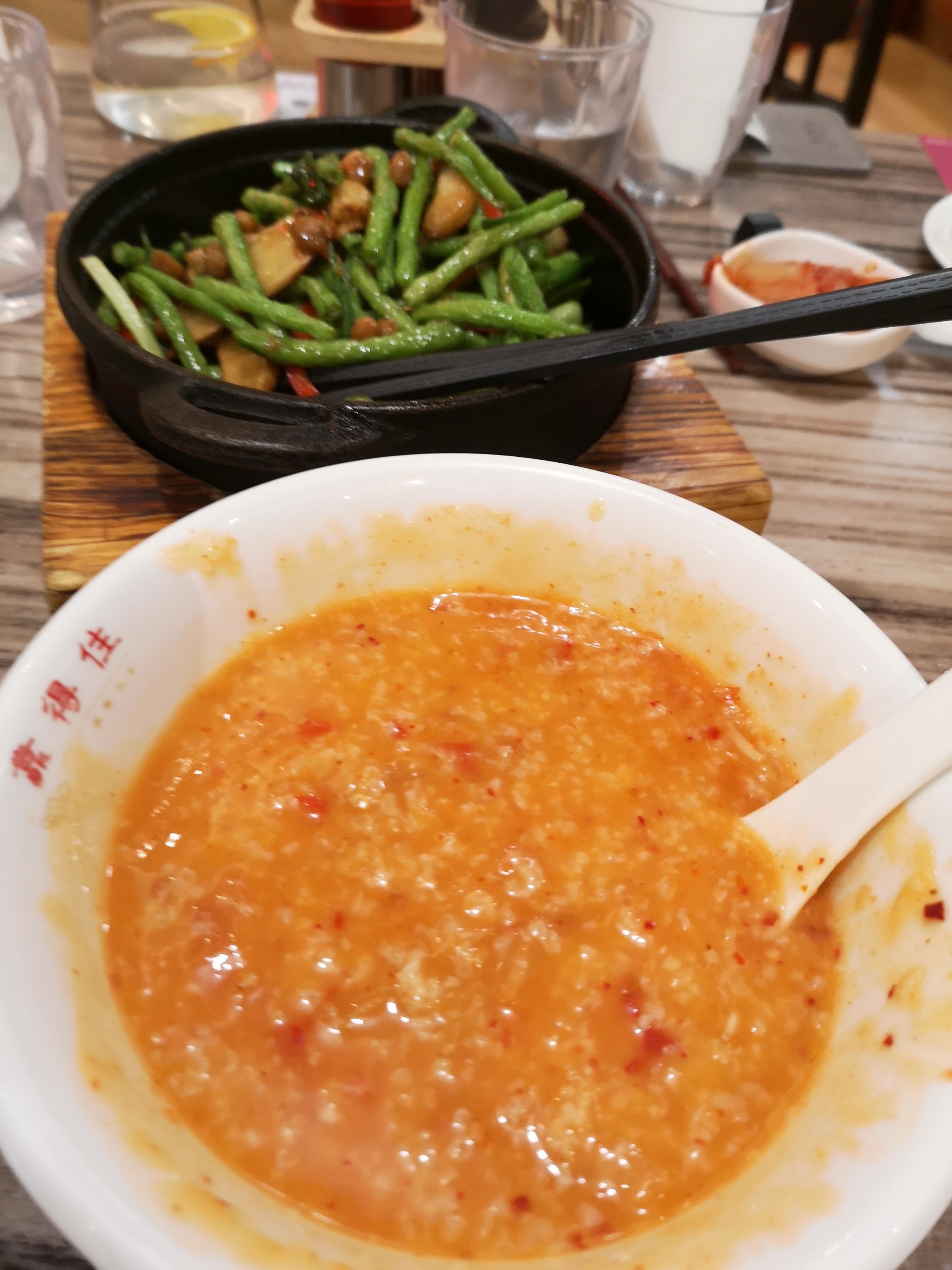 We ate at a Chinese restaurant before hand. I had a Calamari and shrimp congee. It is like a rice porridge and amazingly tasty. The beans are the best vegetable dish I have had here so far.