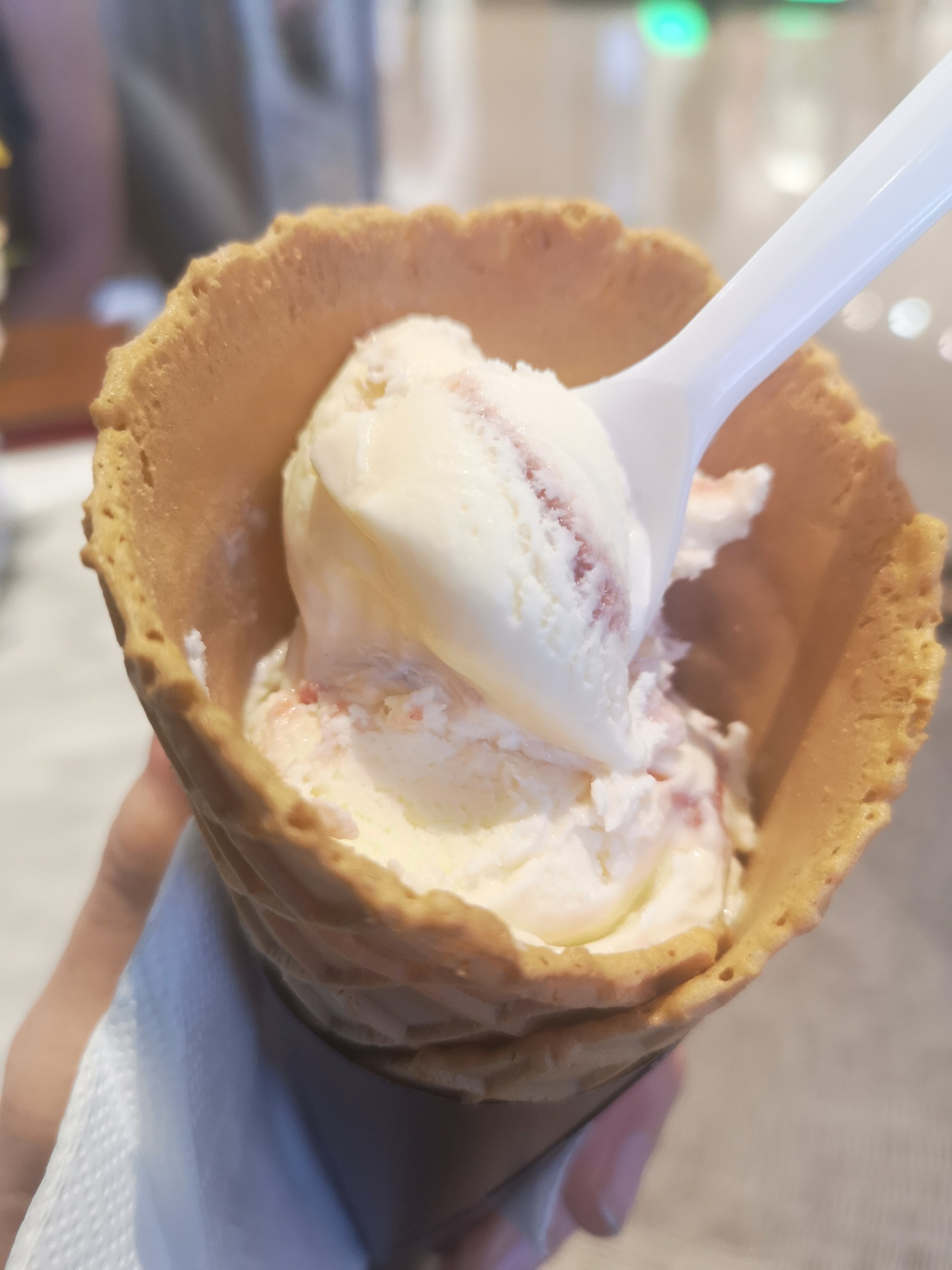 Of course, why not have ice cream after the movie. We went to HΓ€agen-Dazs and I ordered a Jasmine raspberry pomegranate scoop of ice cream in a cone. Very Yummy.