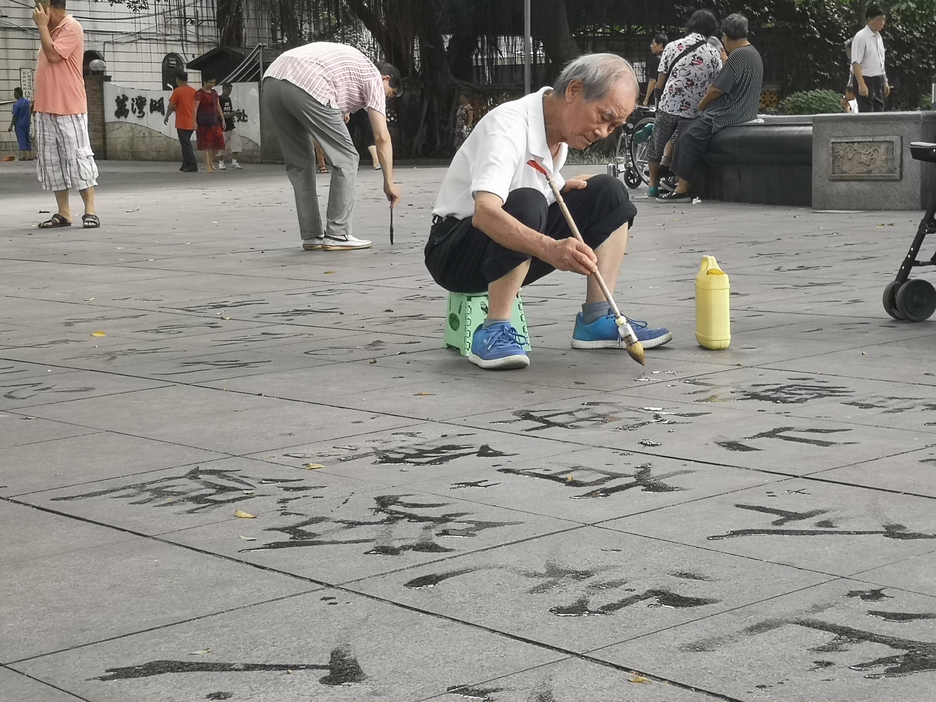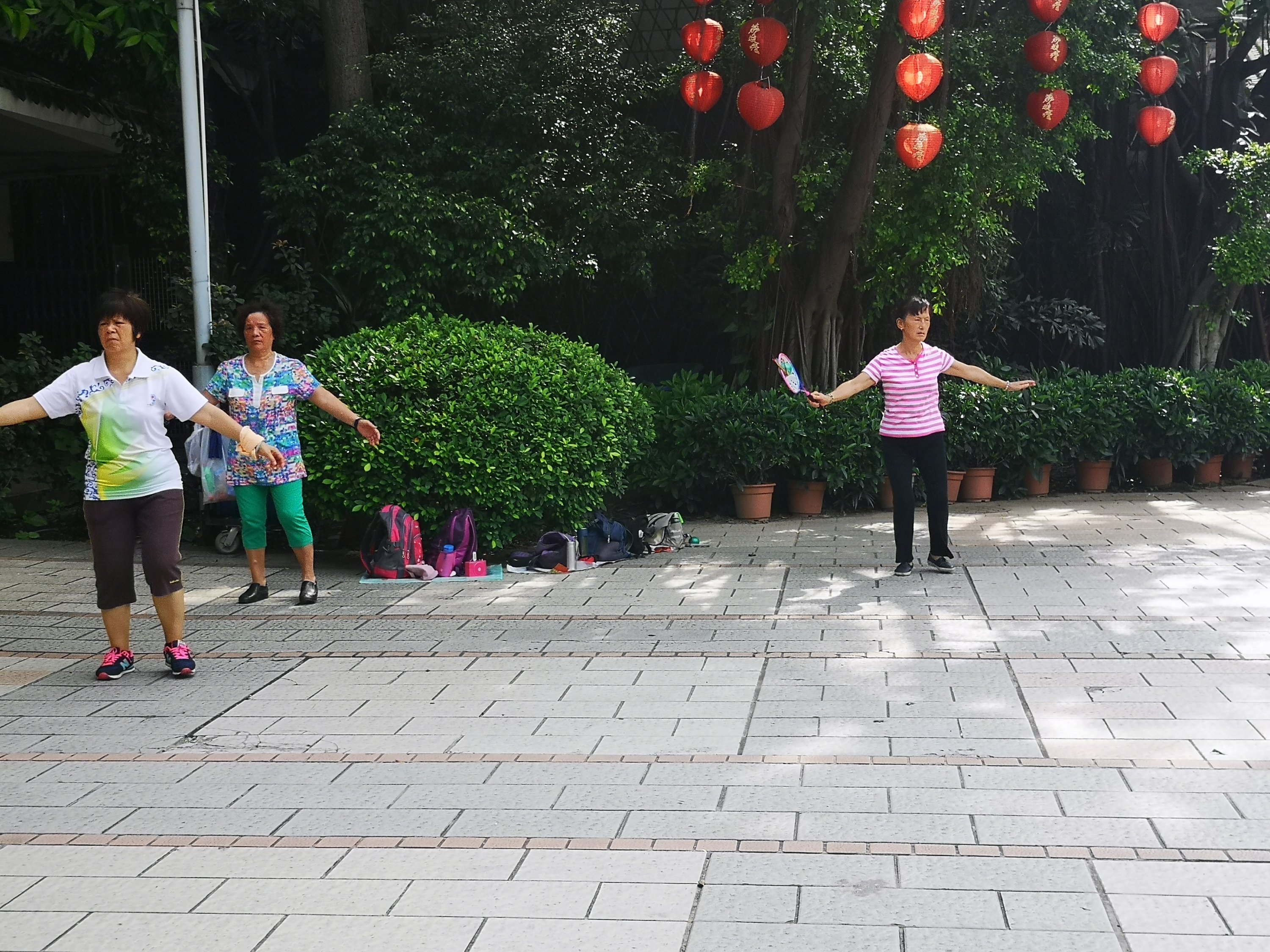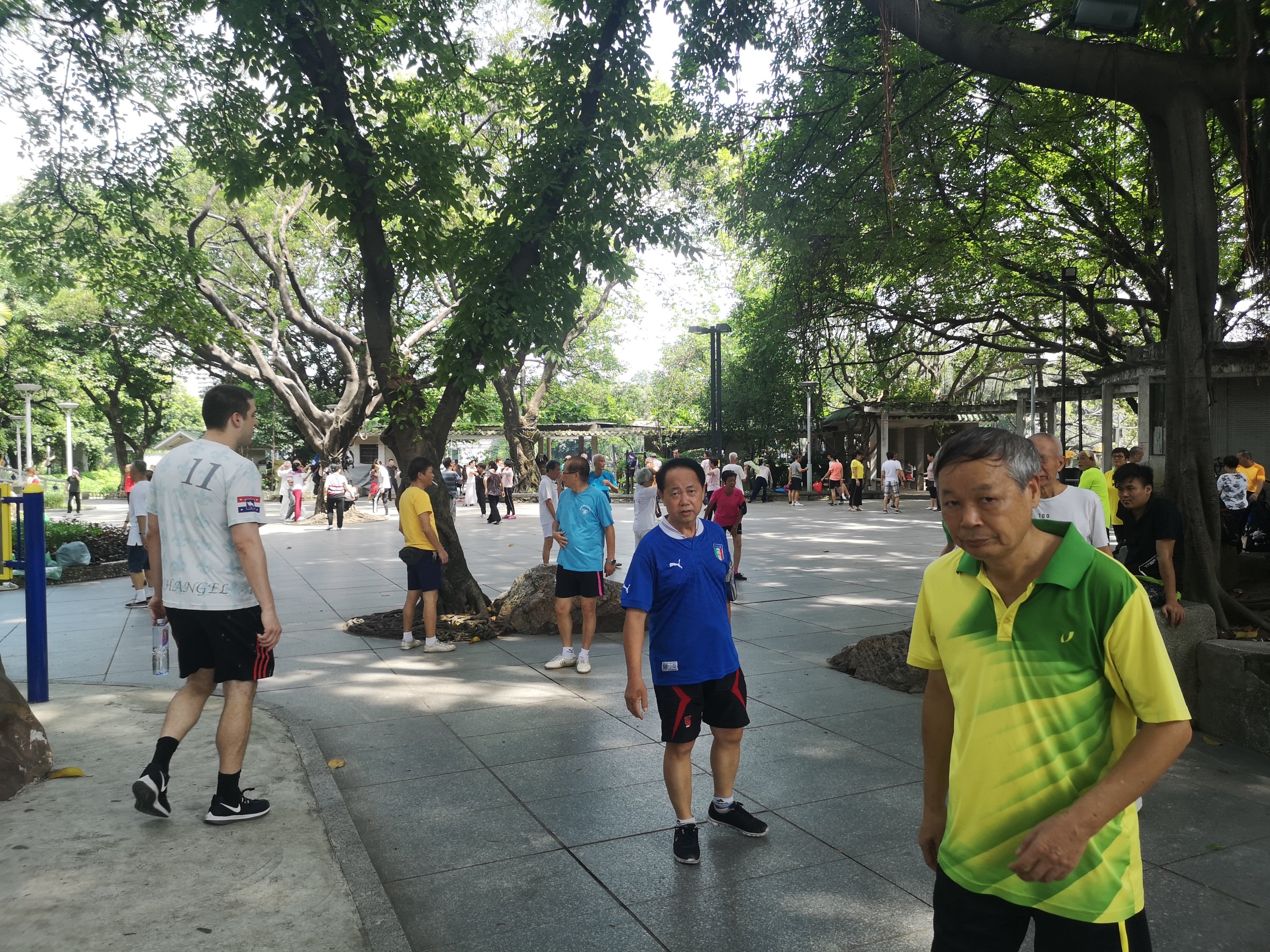 There are many groups exercising. What would seem odd to us in the US, allows older people here to be free from many cardiovascular and joint related diseases. They perform activities that use natural body movements. It may look like they are clapping hands in weird ways or swimming through the air, but it works for them.