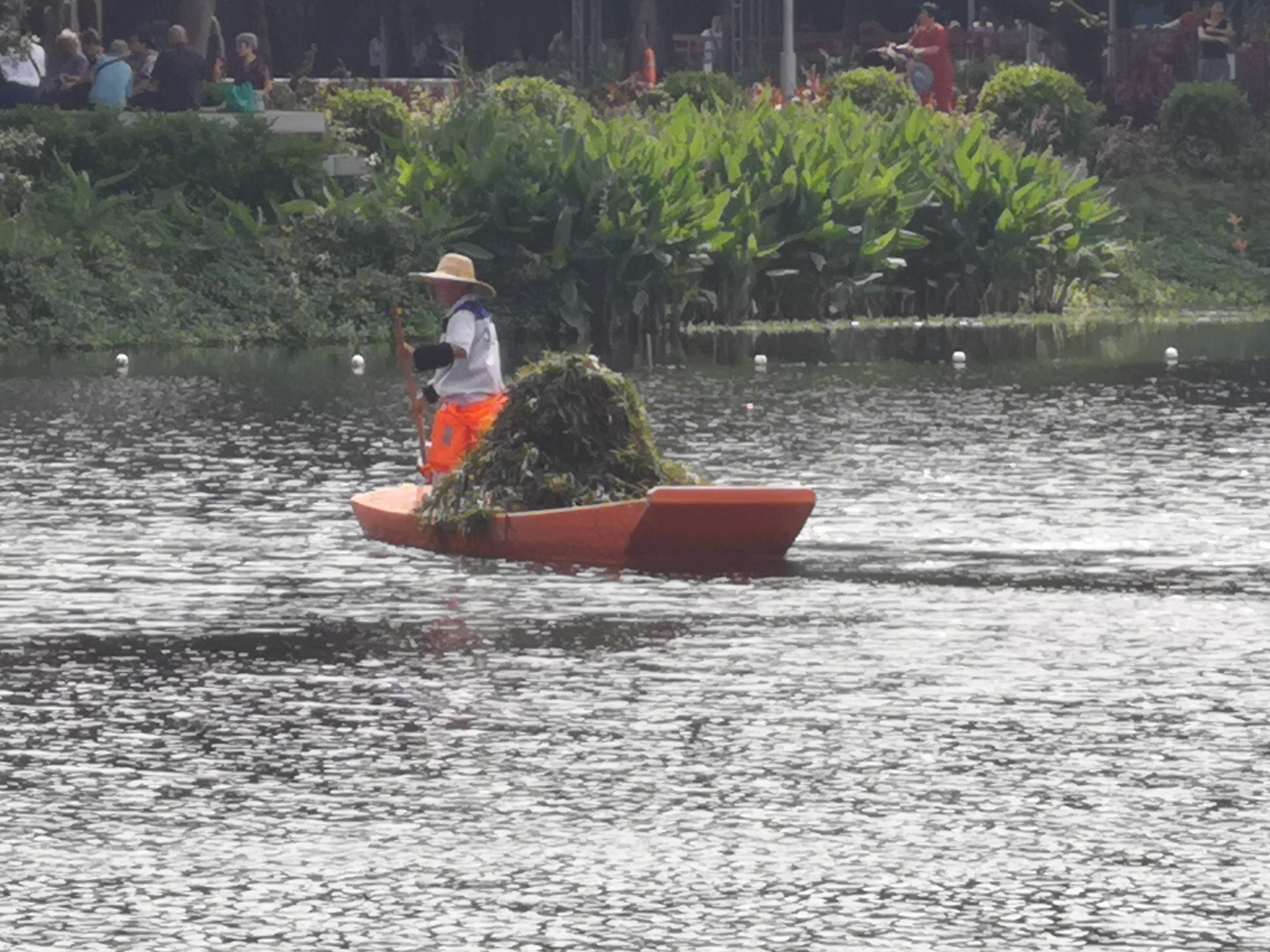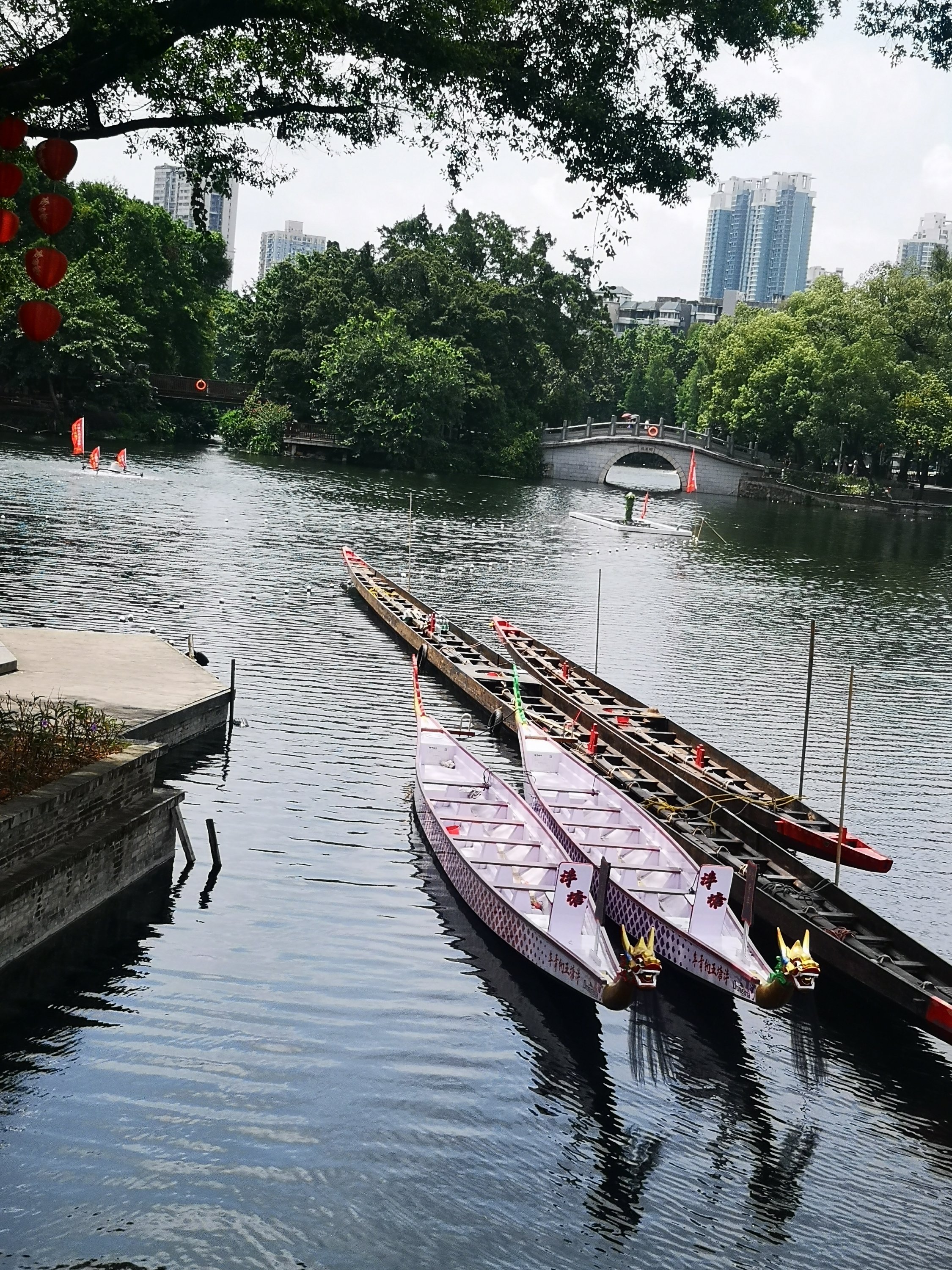 Wr also saw boats and dragon boats on the lake.