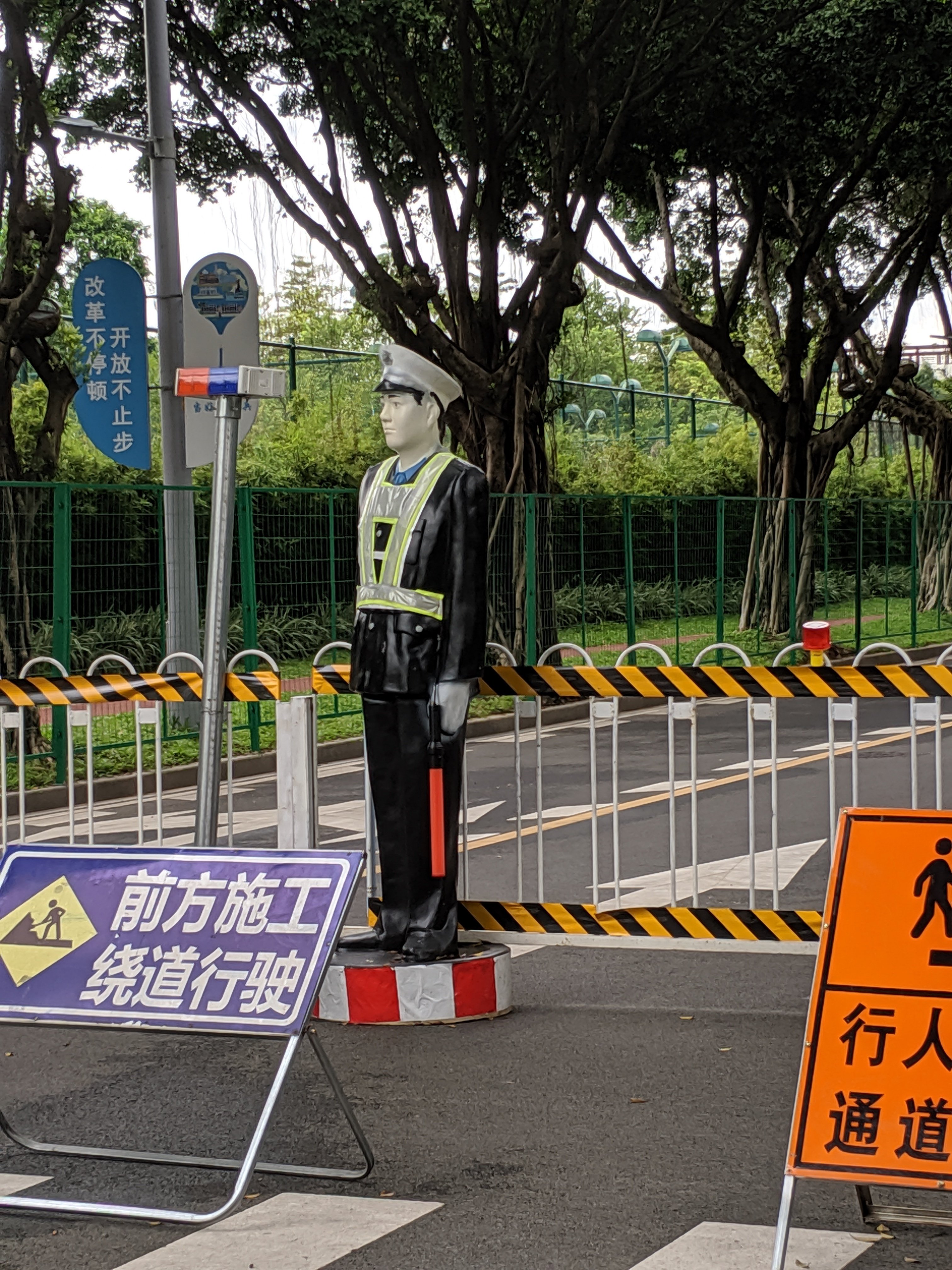 I also upgraded my bike to a trek a friend was selling. On the way there to get the bike I saw my old friend the statue policeman. It is so funny.