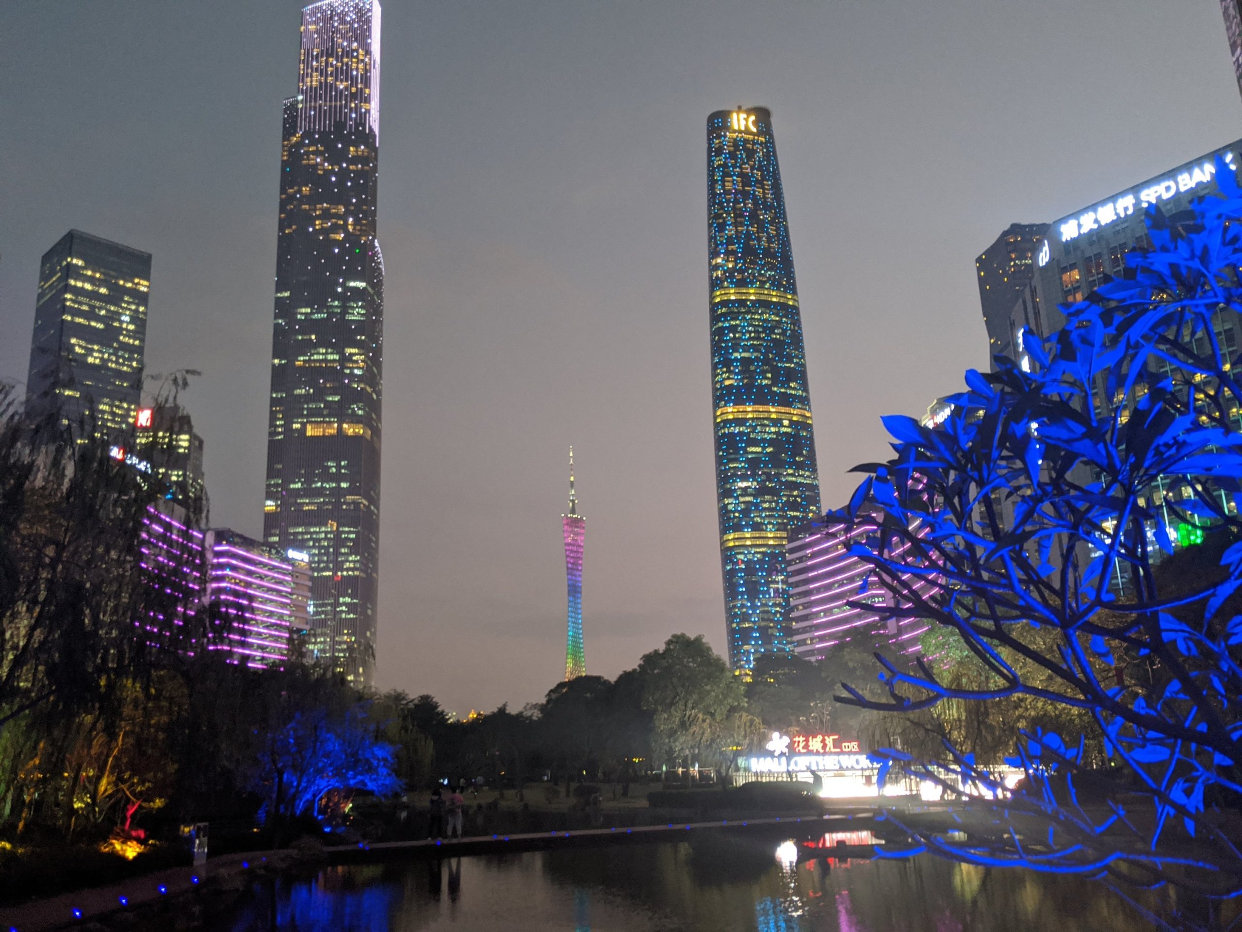 The Canton Tower at dusk.