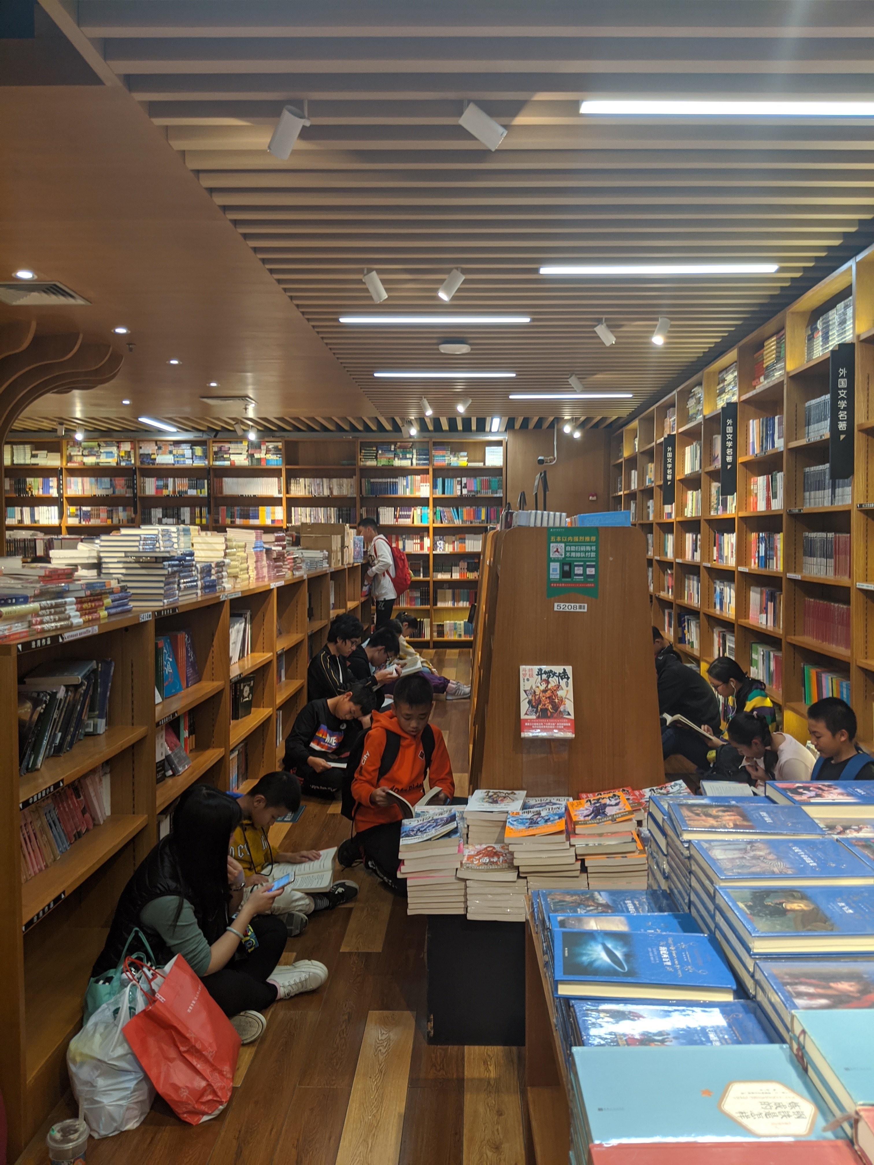THE bookstore in Tianhe. 6 floors of books and other items and you can find people reading in the aisles…. You will not see this in America.