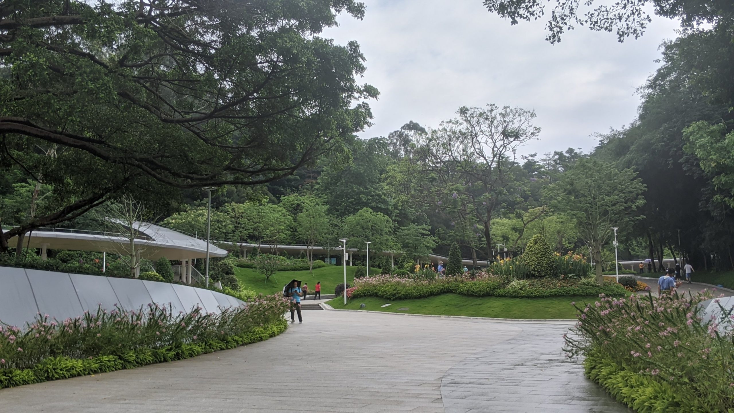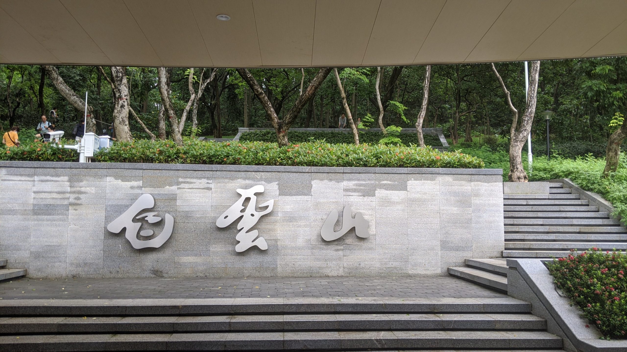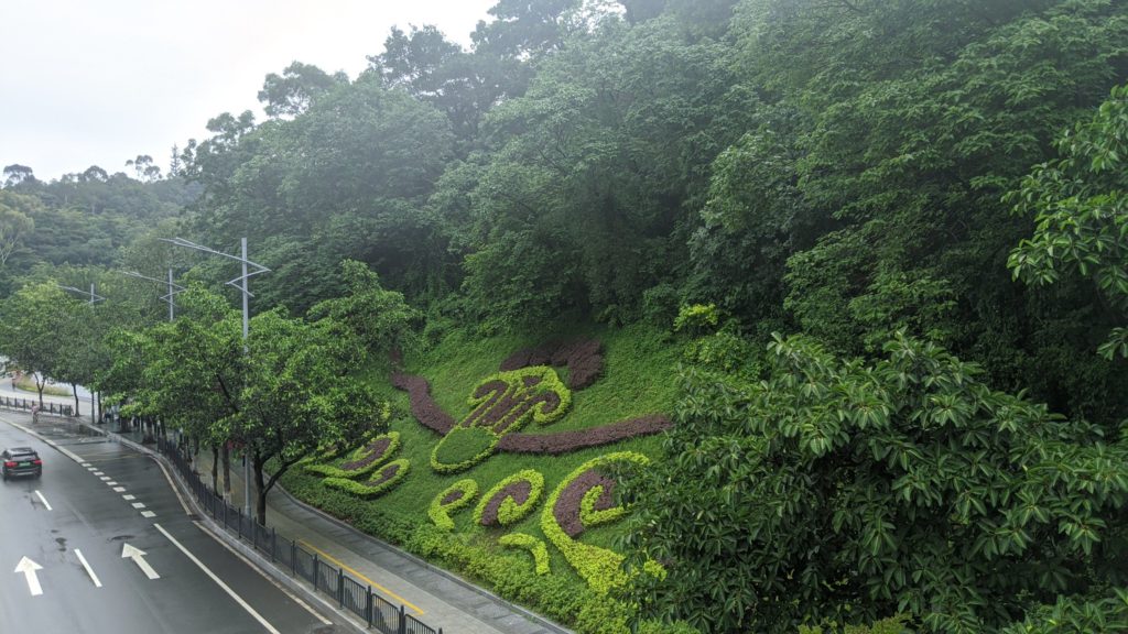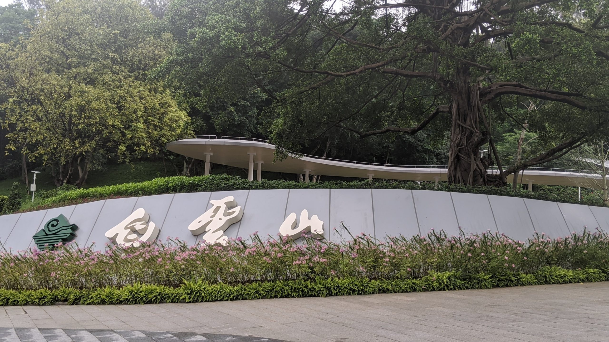 Claire and I were up for some city hiking. I ran half way there and then made the rest of the way to the entrance. That part of the entrance was closed. We are used to many entrances being blocked in parks and malls, etc. to temperature scan and control the amount of people. We went to this entrance so that we can take the skybridge which is an elevated 8 km walk way that goes above ground from here to Baiyun mountain. Unfortunately it was closed due to impending bad weather.