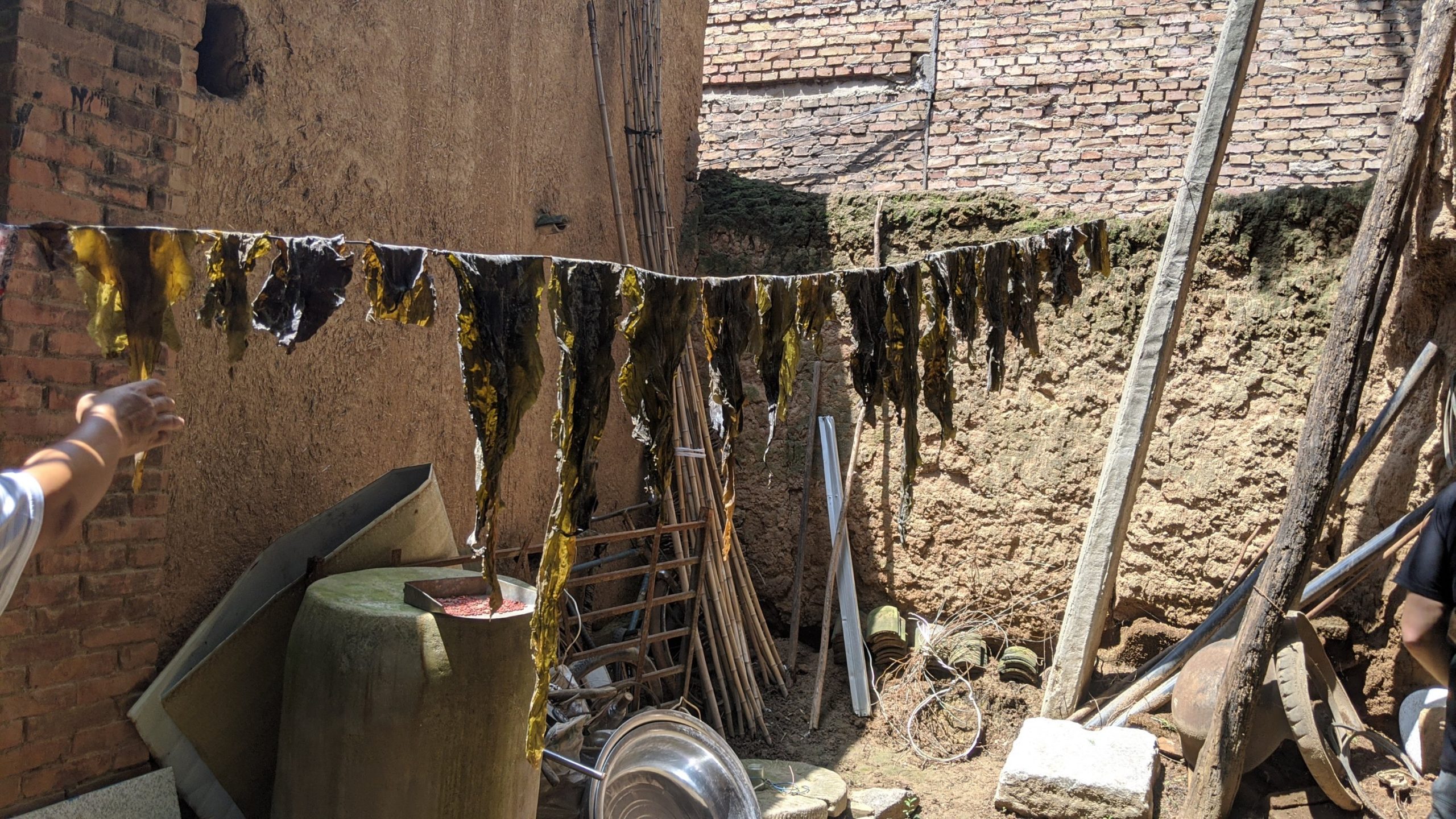 Drying seaweed.