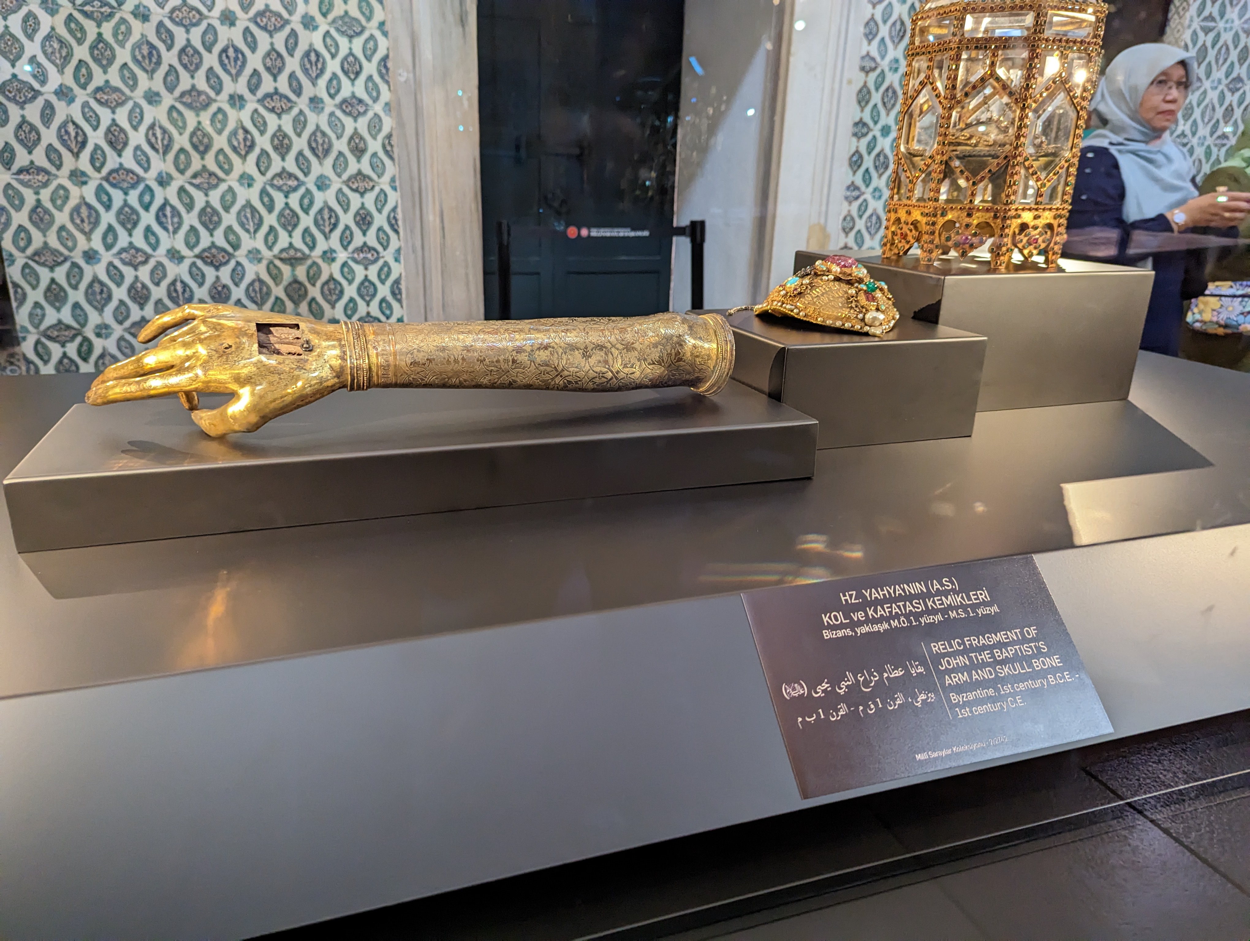 The relic fragment of John the Baptists arm and skull bone from the 1st century