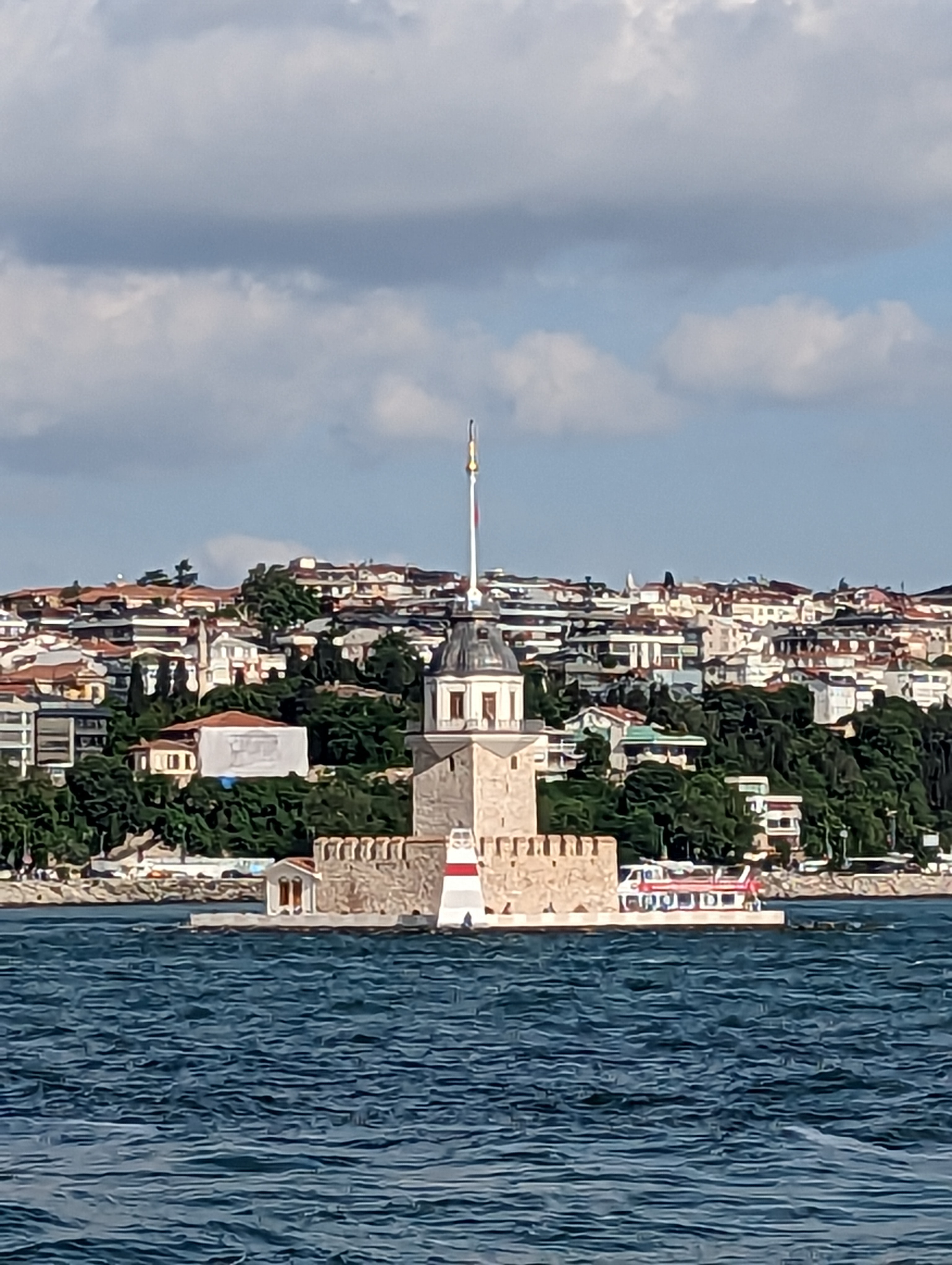 The Maidens Tower has been present since 1000 AD though past tiers have been destroyed in earthquakes, fires, etc. Some versions also connected to walls which are still visible in parts under water.