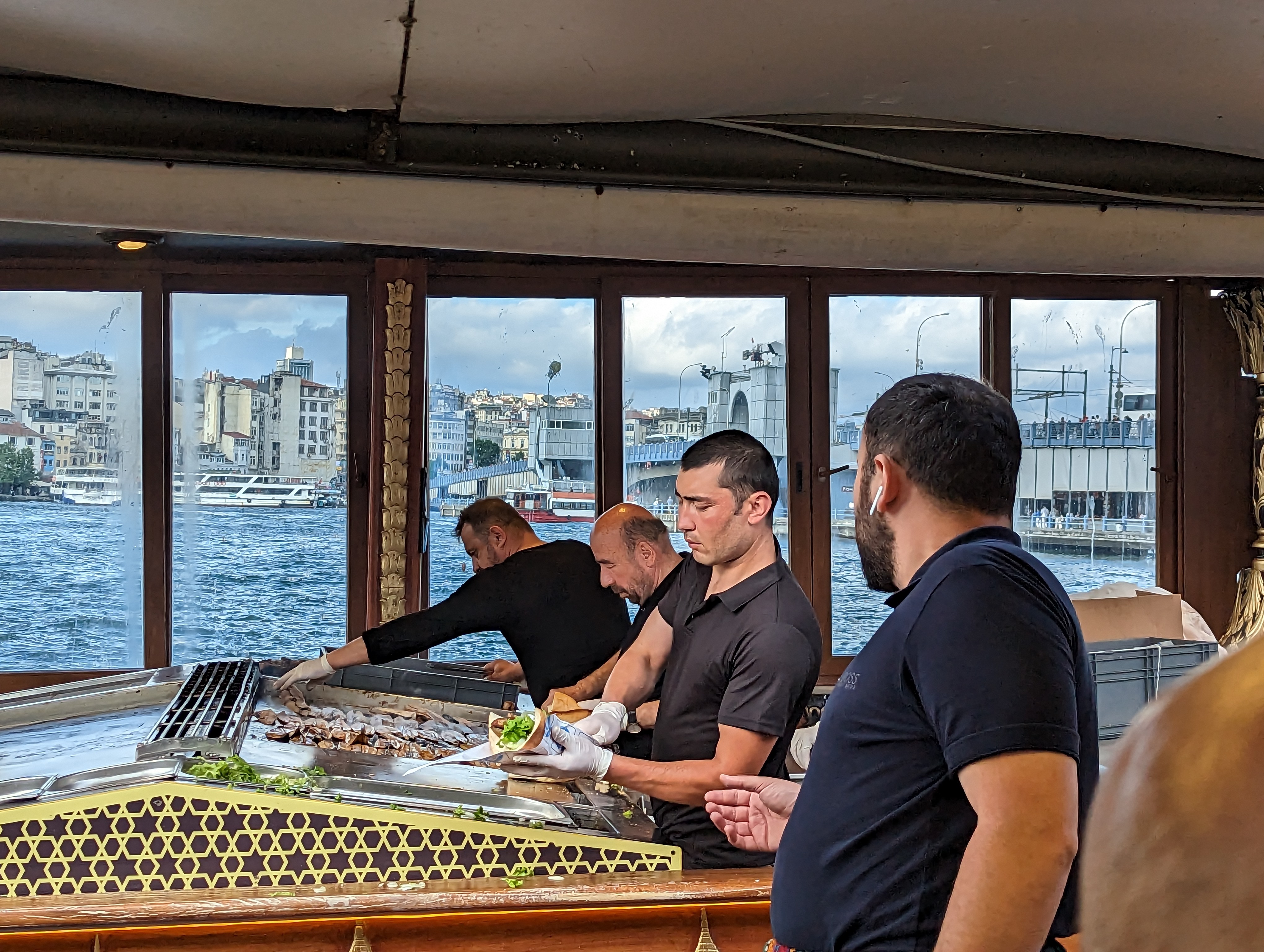The cruise went from a port near the bazaars, further up the Bosphorus, then  down to the sea of Mármara through an area known as the Golden Horn, before returning.