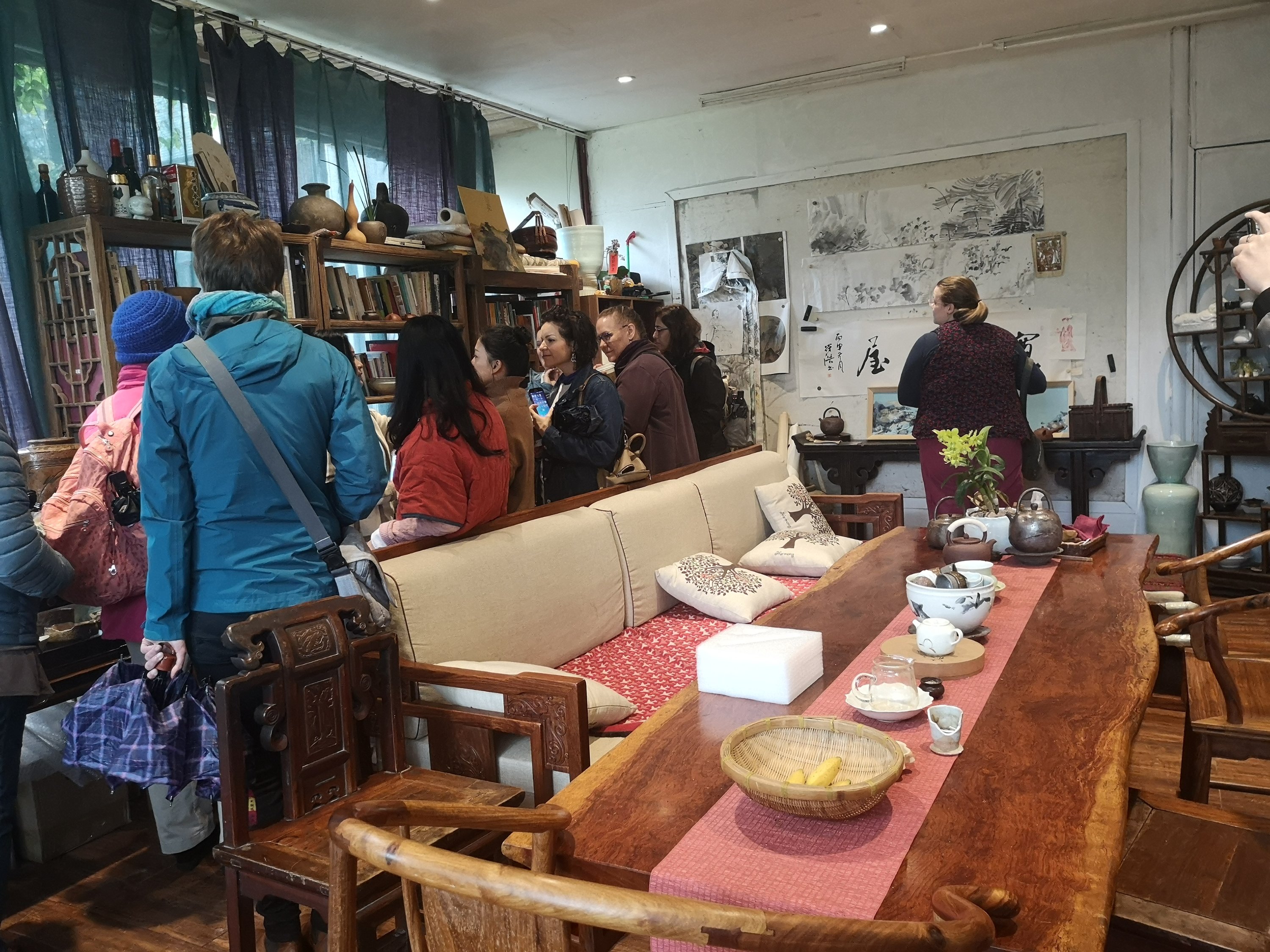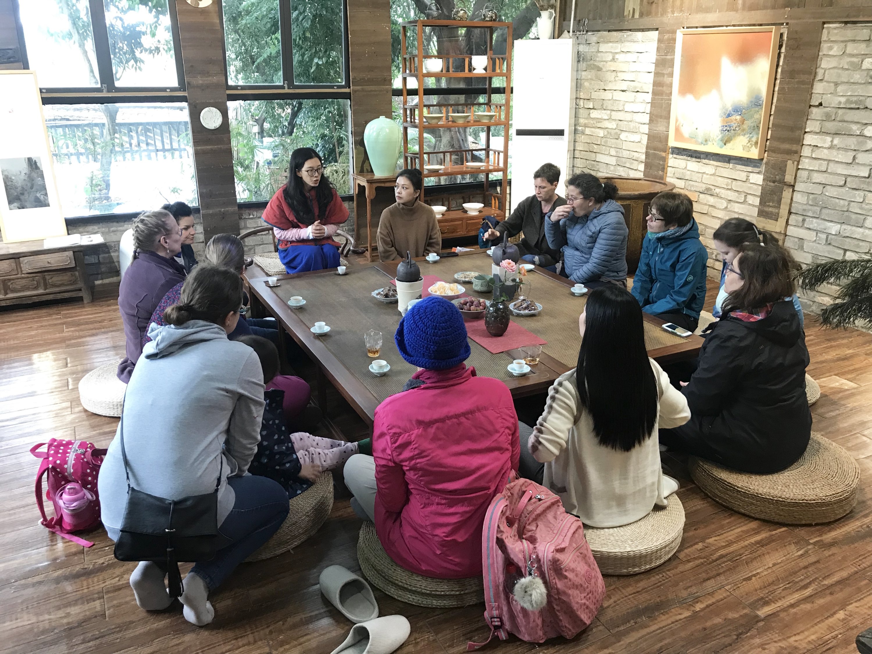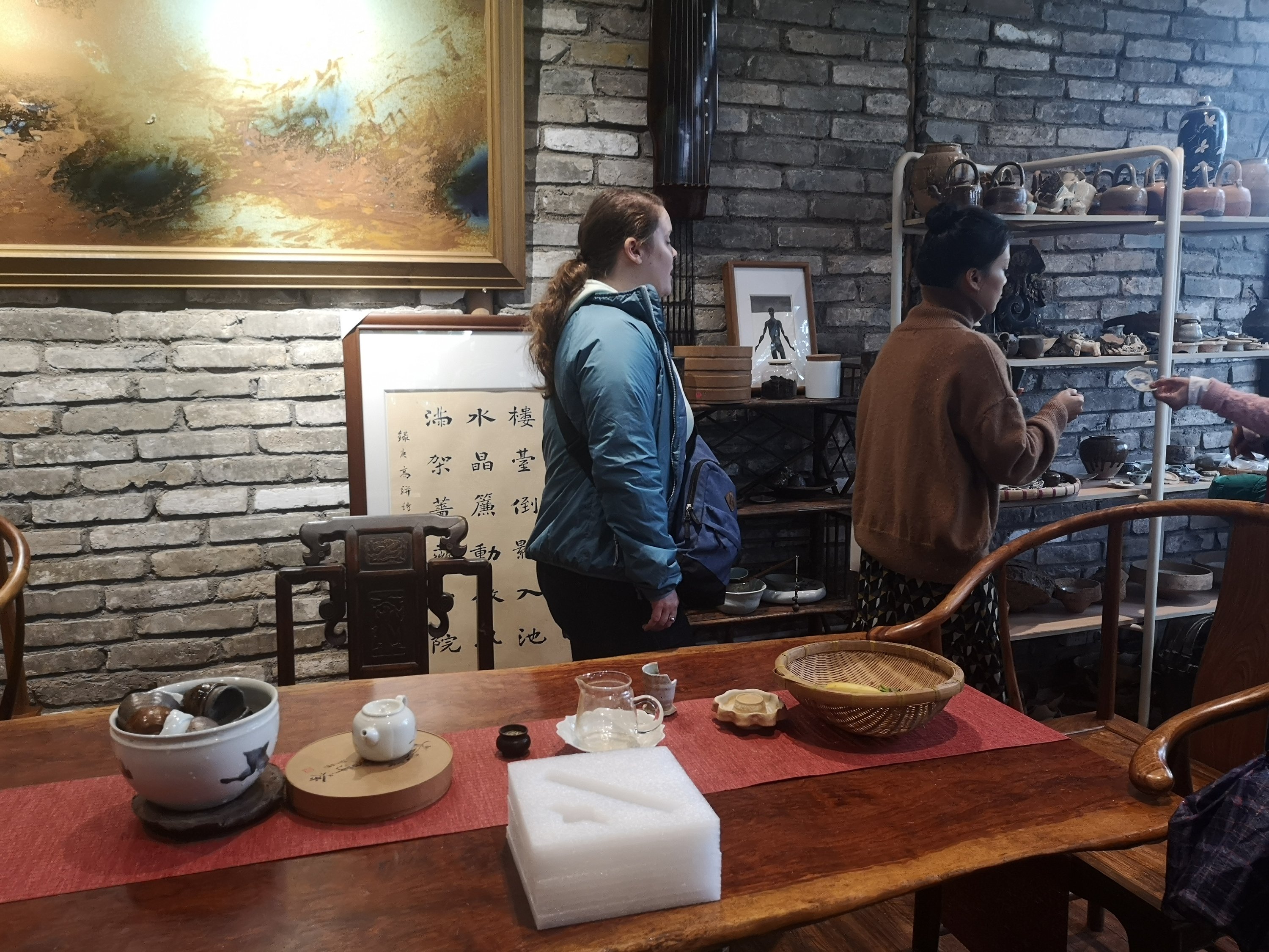 The place seems like it’s far away. It is in the far reaches of the city and the hustle and bustle feels much farther away. The tour included transportation, 2 Chinese tea with snacks, healthy lunch, 2 pottery classes, calligraphy class, and one item that we made (they fire and glaze the pieces). We also had the opportunity to buy extra pieces we made for 50 rmb each (7,44 USD). They glaze and fire those as well.