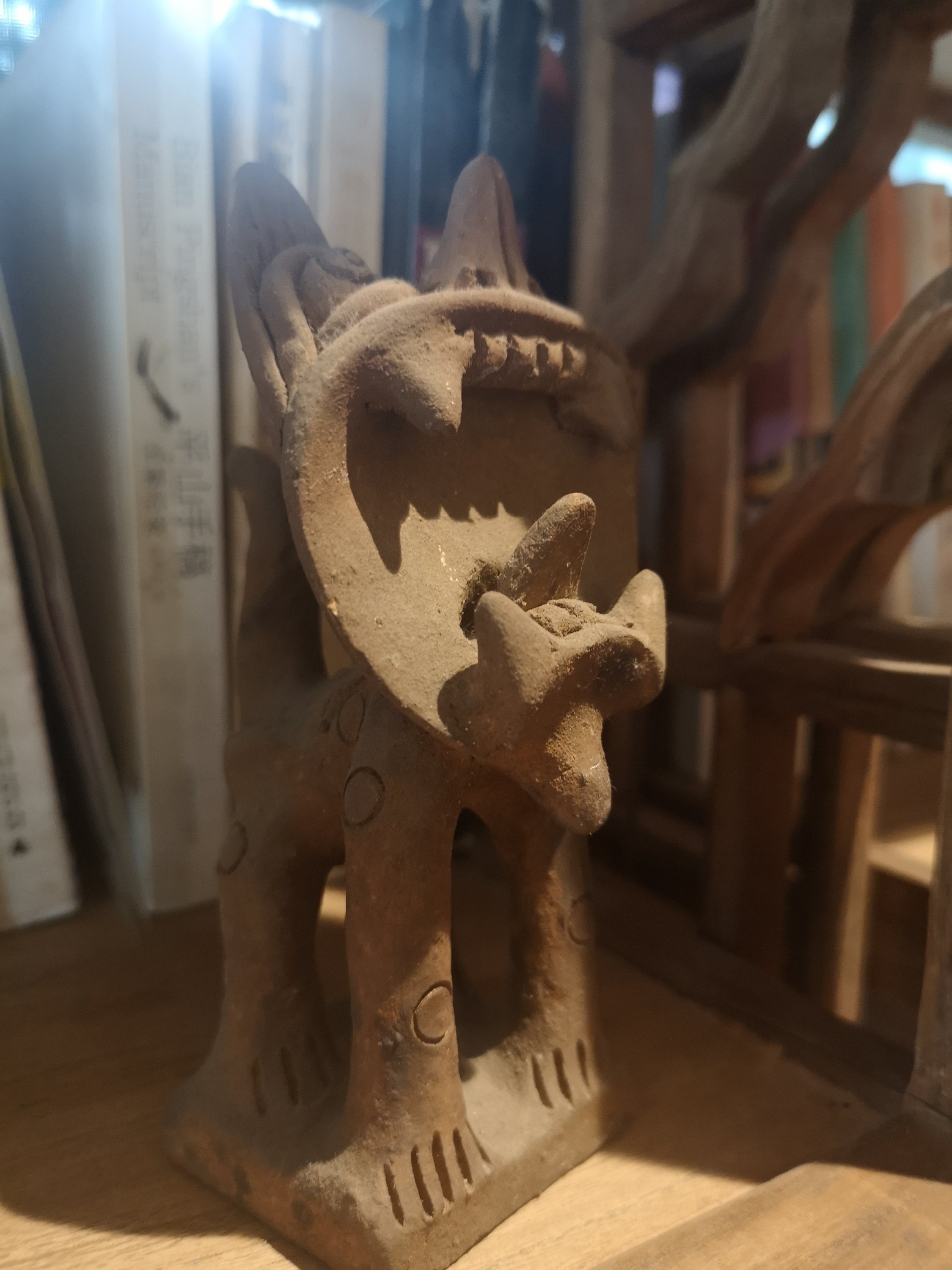 This cat is actually for on top of a roof. If there is a storm coming, the wind will make a whistling sound through the cats mouth.