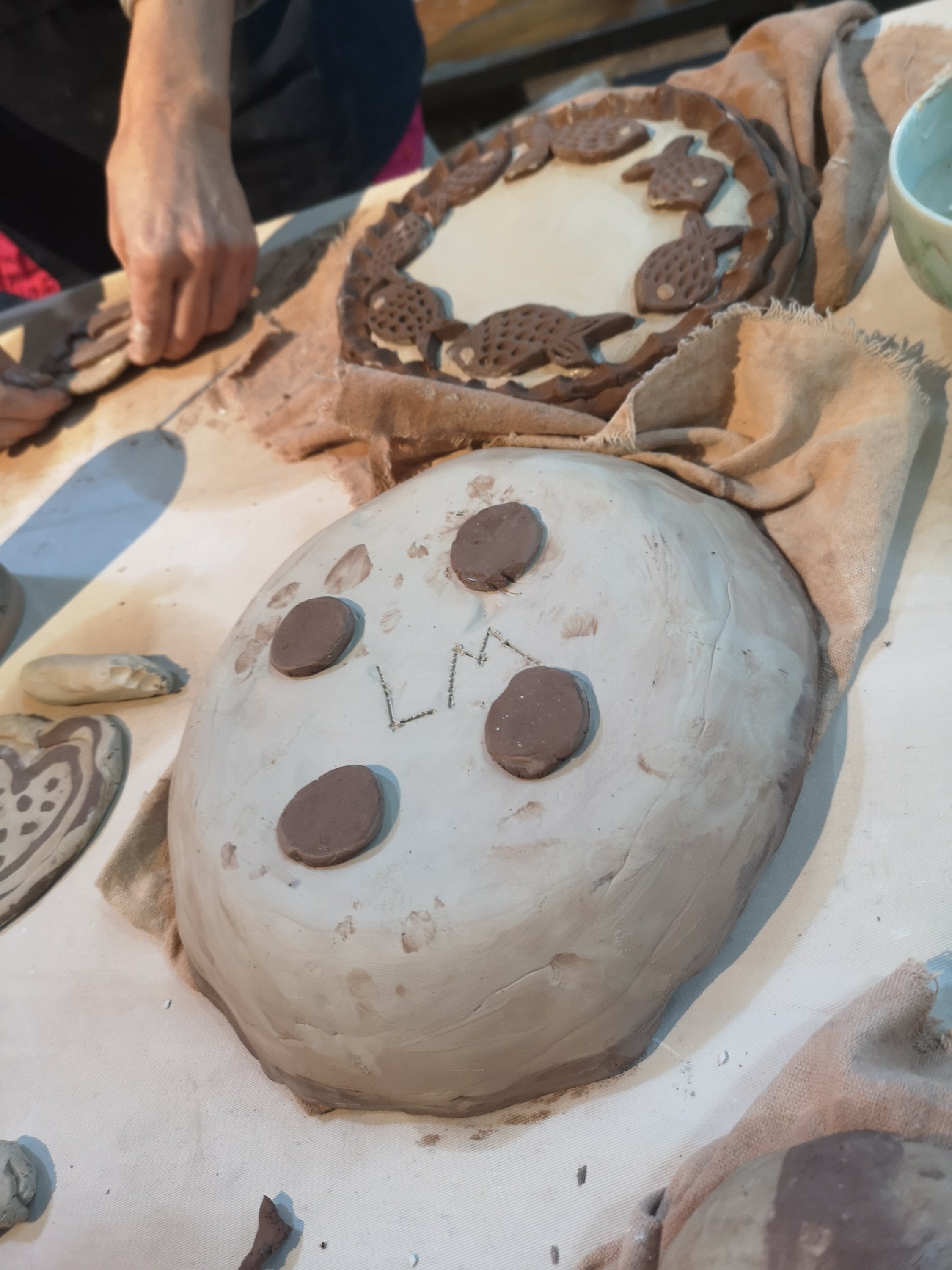 During the first class we learned a few basic techniques for creating plates. We were able to make multiple pieces from which we could choose the one we liked best (we could pay extra for others we made).