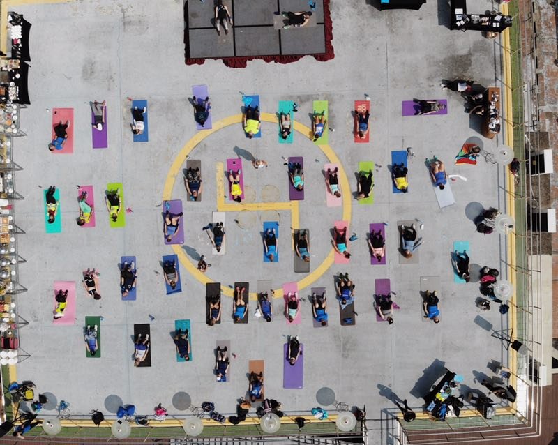 We started out with zumba warm up, some HIIT, squats, push-up drills, then abs. This picture was taken with a drone.