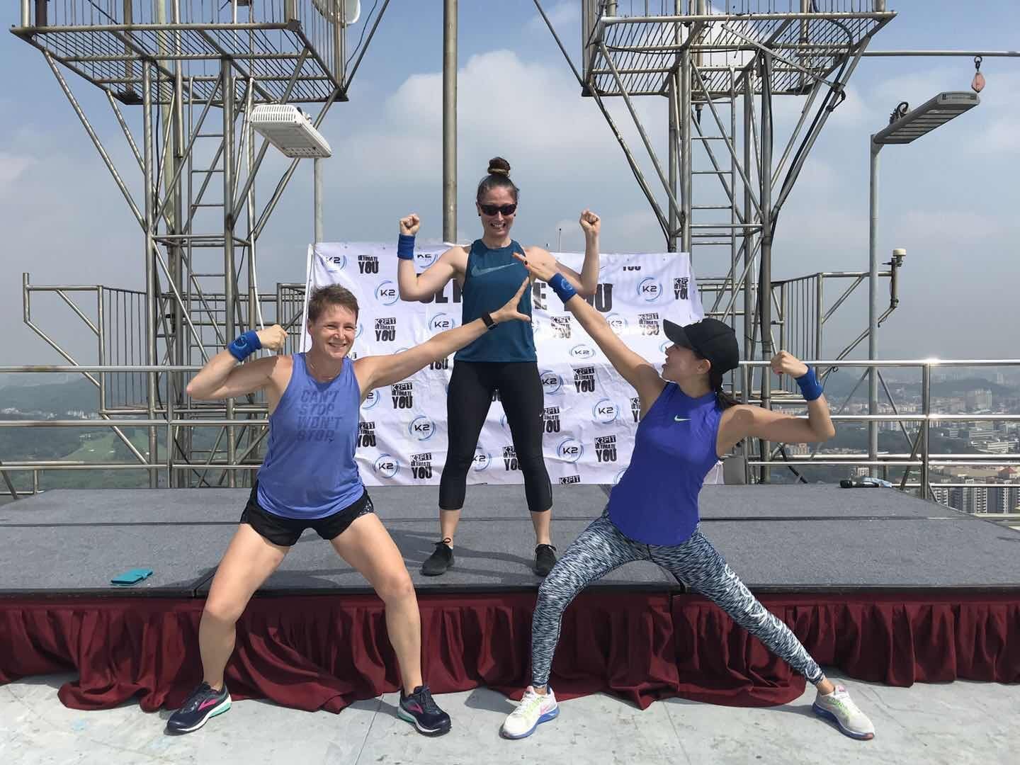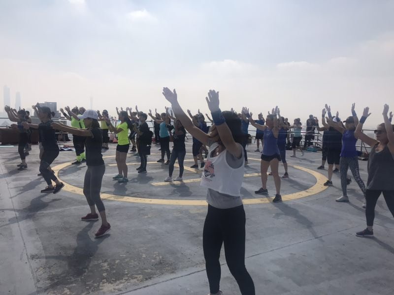 This Sunday they hosted an event at the crowne plaza hotel several metro stops away for a childhood cancer foundation. For 300 rmb (43.34 us), they held a workout on the roof on the helipad. I went with my friend Nicole and also met another teacher at the elementary school.