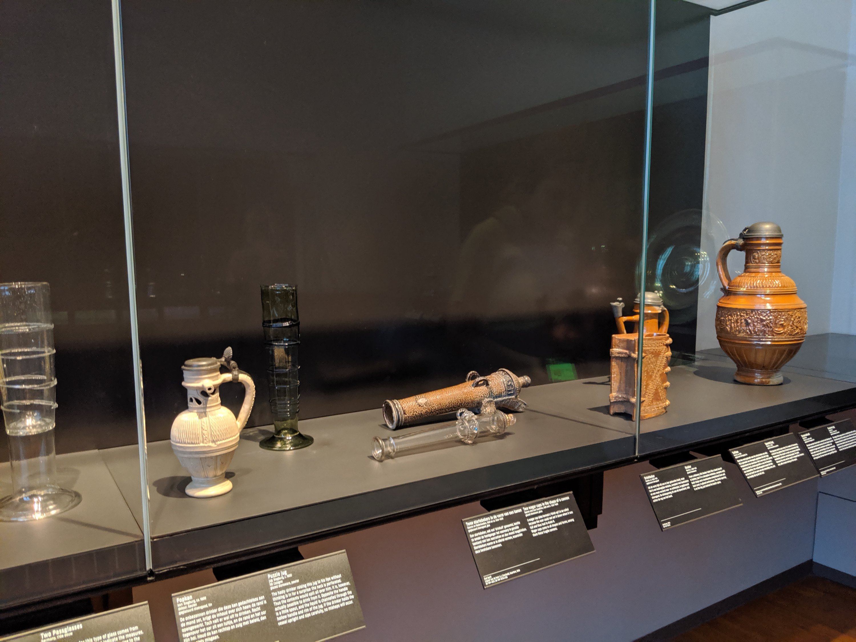 Originally Belgium and Netherlands were one land. When unrest let to a split, artists fled North to what is now Netherlands. It was always known that Belgium was known as a land of heavy drinkers and drinking games and ornate vessels for drinking games. The second from the right is a vessel that looks like a book.