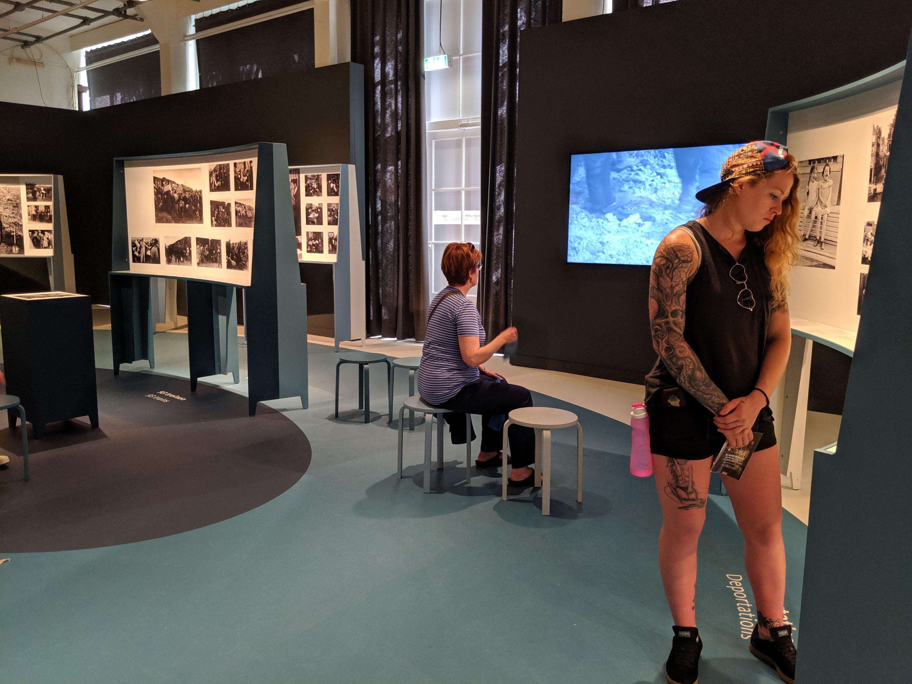 Next we took the ferry across and walked to the Amsterdam dungeon. I don’t like haunted houses but this was fun. I didn’t take pictures, they were not allowed but actors talked about Dutch history with a few scary spots throughout. They used people in their acts recreating sentencing people for witchcraft, etc. Lots of funny but that were pretty entertaining and a few scary parts that were well done. Best part: we were out if the heat.