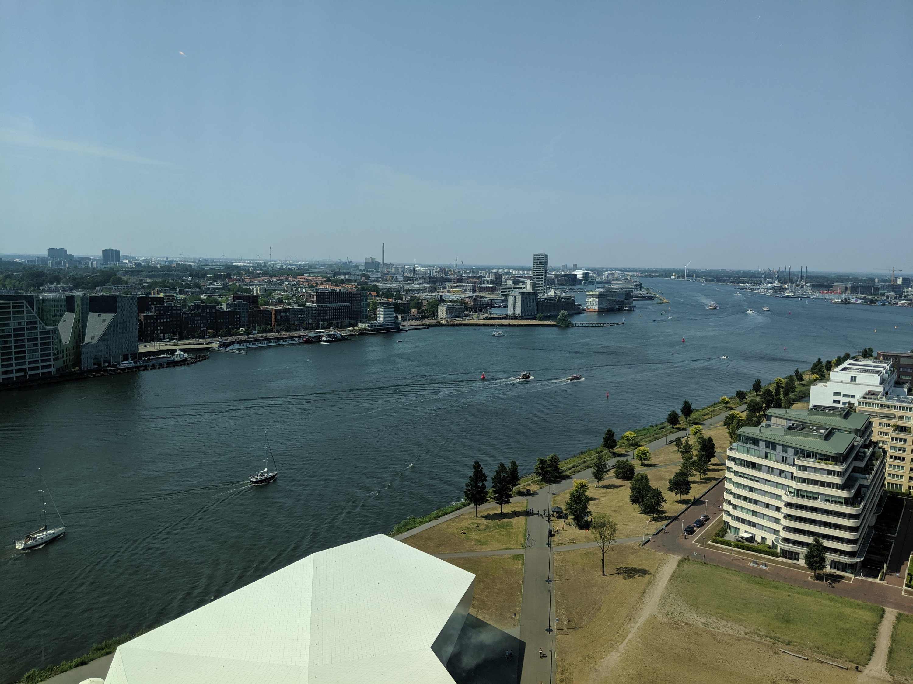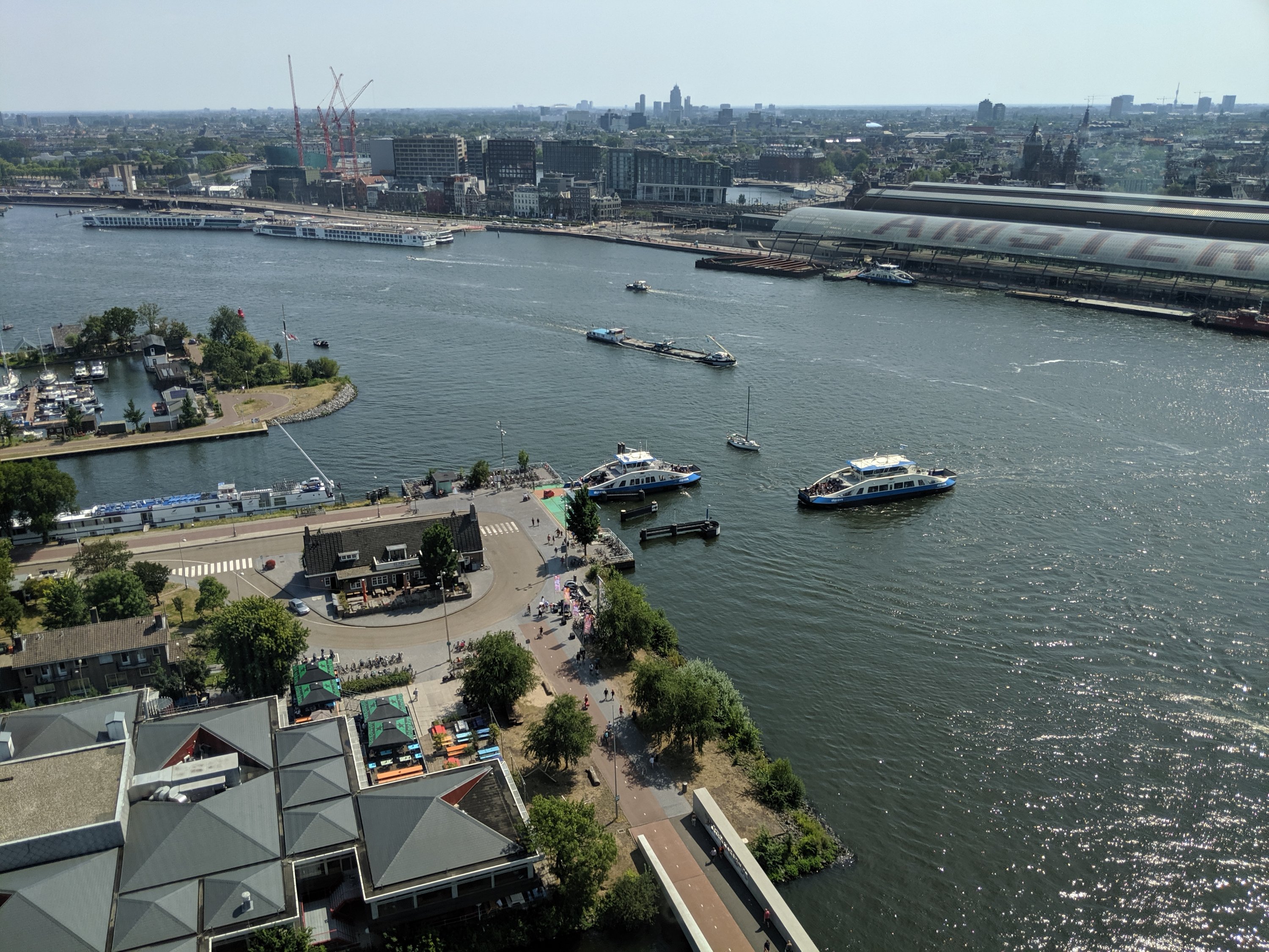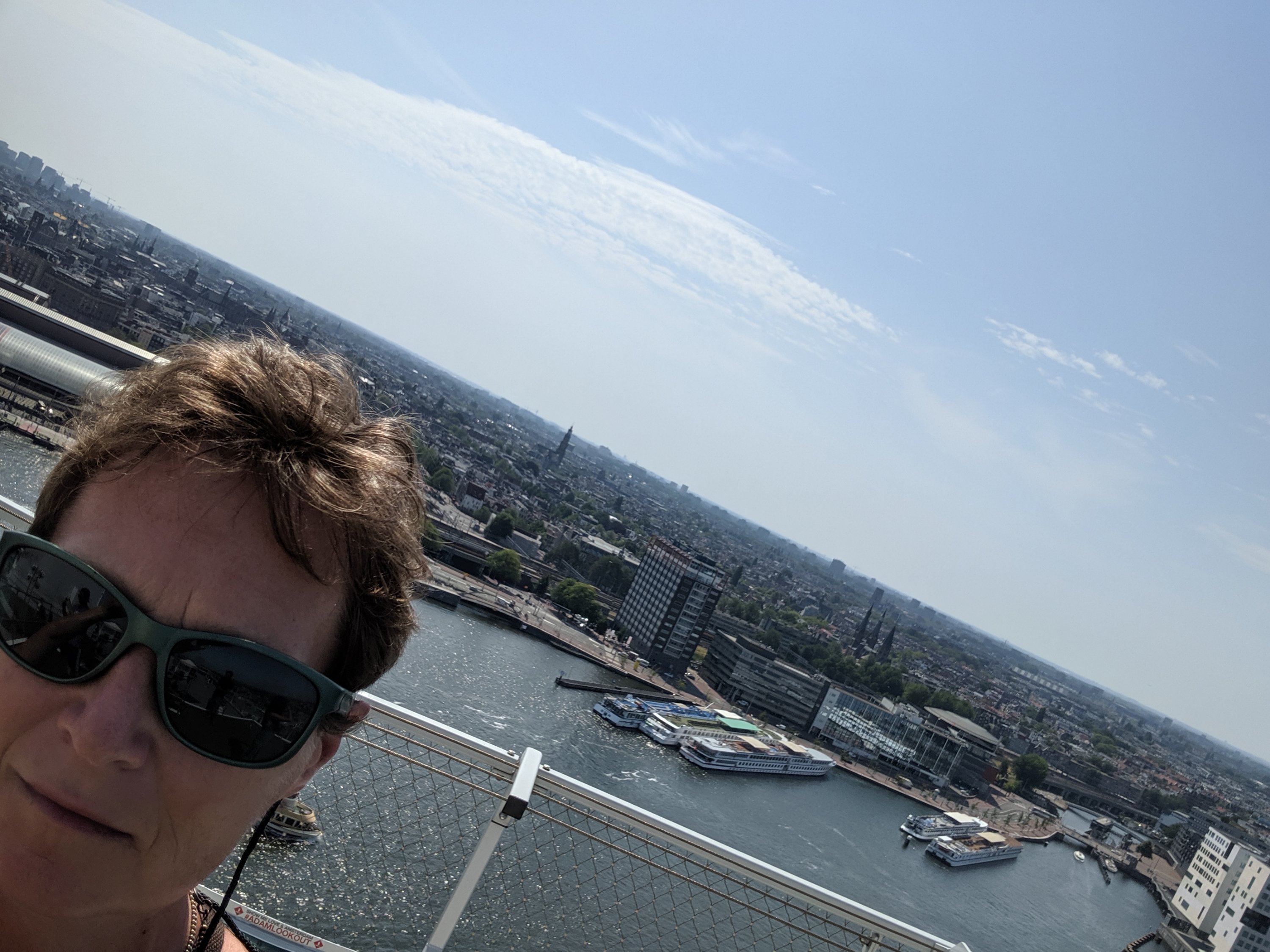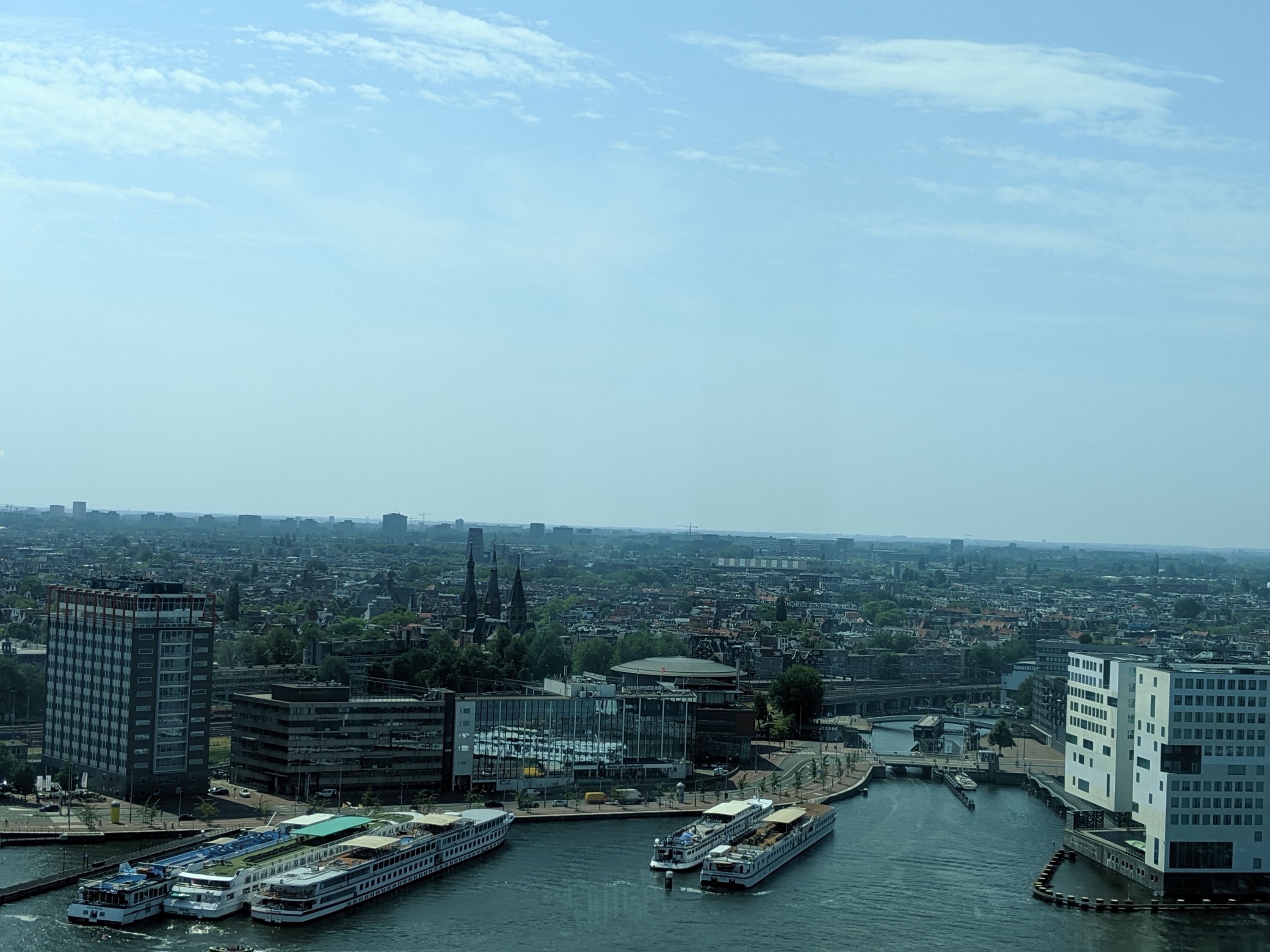 We went from the tour to the A’dam lookout, the tallest point in Amsterdam. It is also a great hang out spot, just too hot today (105 degrees F). Definitely the best view of the city.