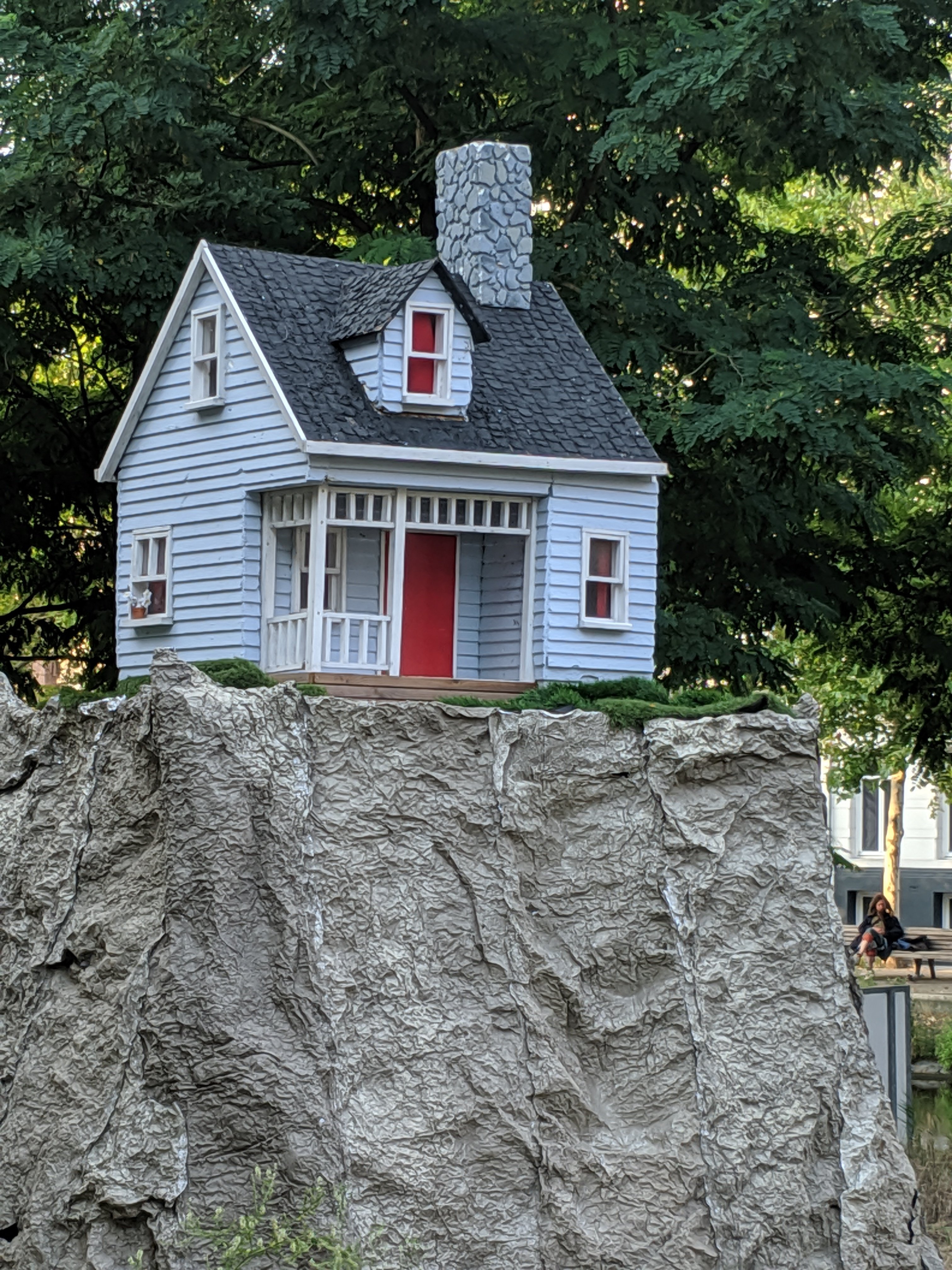A little apartment building like a doll house on display.