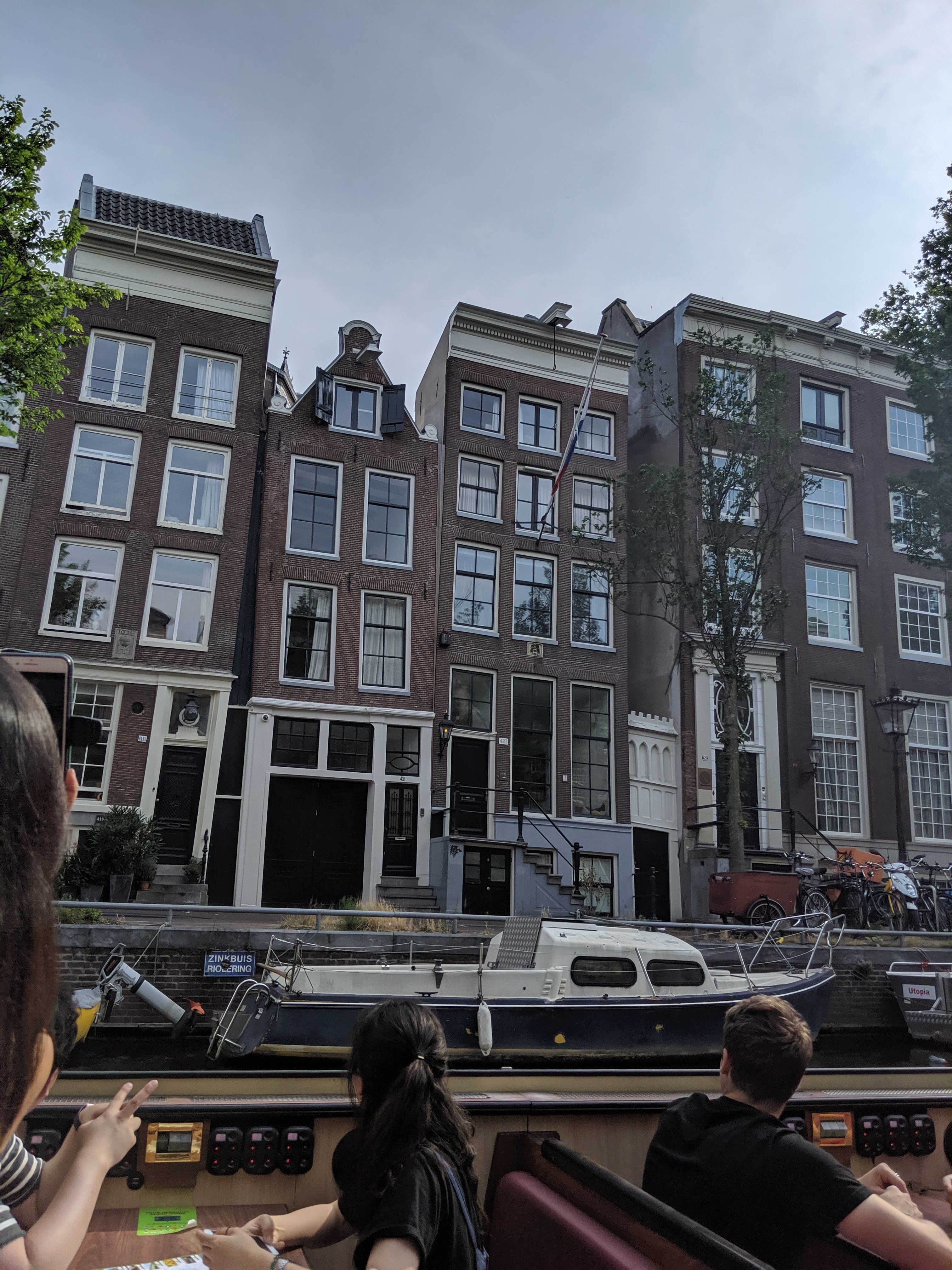 First on the agenda was the hop on hop off boat tour. We didn’t hop off anywhere but took the whole route around. Afterwards Becca went to the pride parade and I went on an open boat canal tour. Some sights were the same but the stories were different.These stones in the buildings would be how you identified where people lived before there were addresses. They would have symbols of their profession.