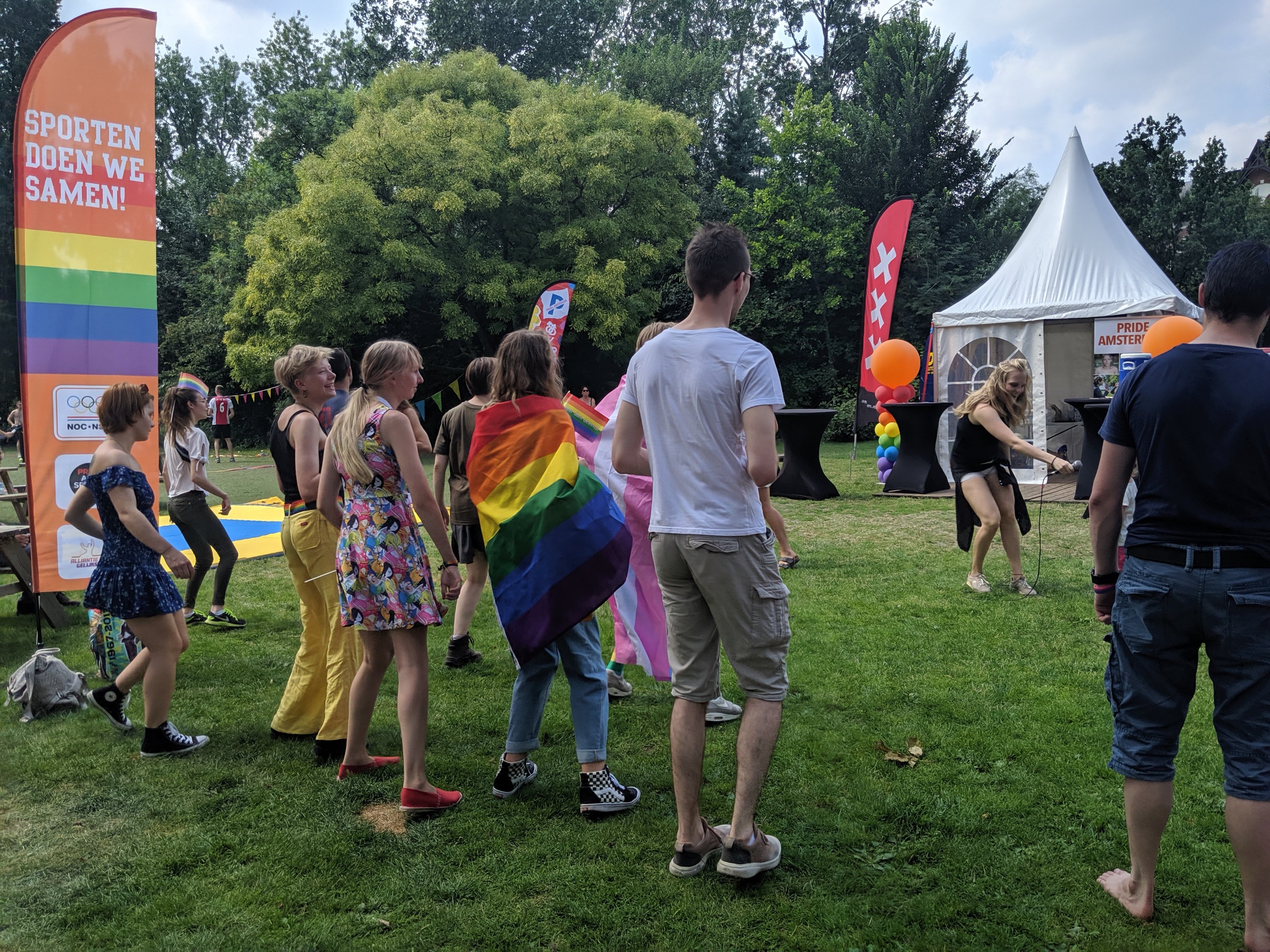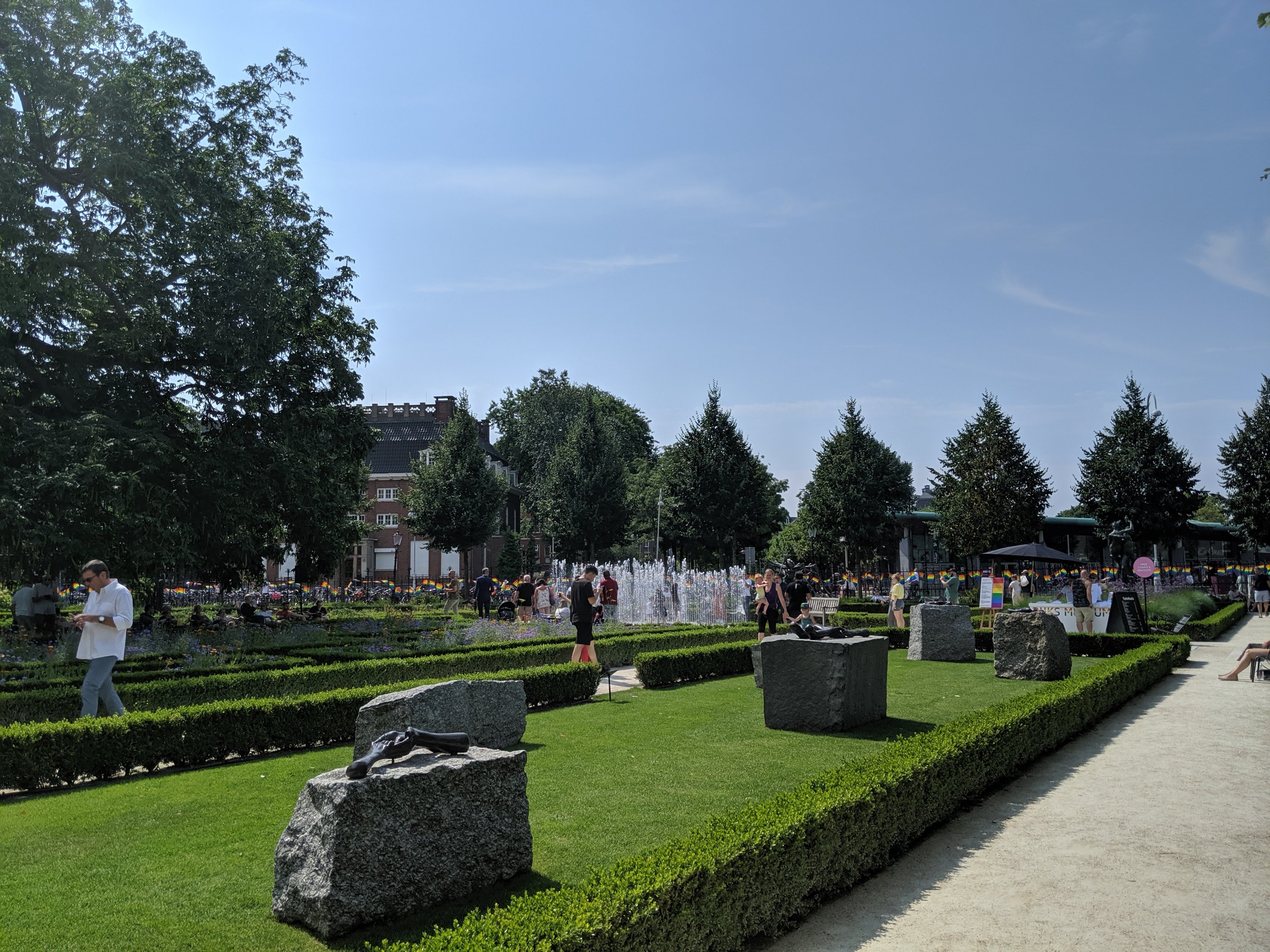 I walked to Vondel park, the most popular park in Amsterdam. As I walked through I realized the end of the pride parade was here. They had great family games, dancing, information, and empowering everyone. It was fun and peaceful.