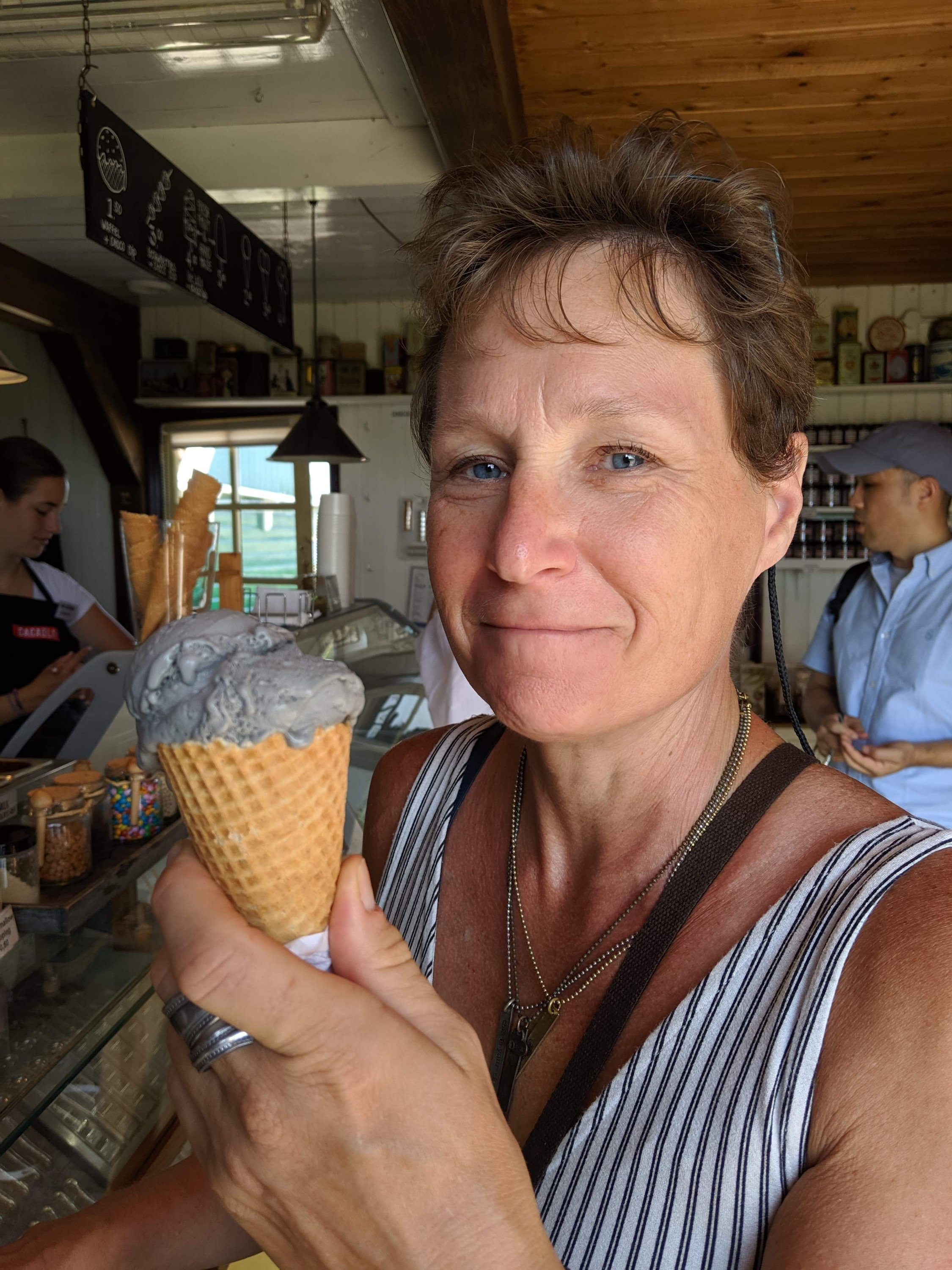 Licorice ice cream. Very tasty. The ice cream had a hint of licorice and only the pieces of licorice mixed in provided enough taste. I loved it. I always look for a unique ice cream or potato chip wherever I go to try.