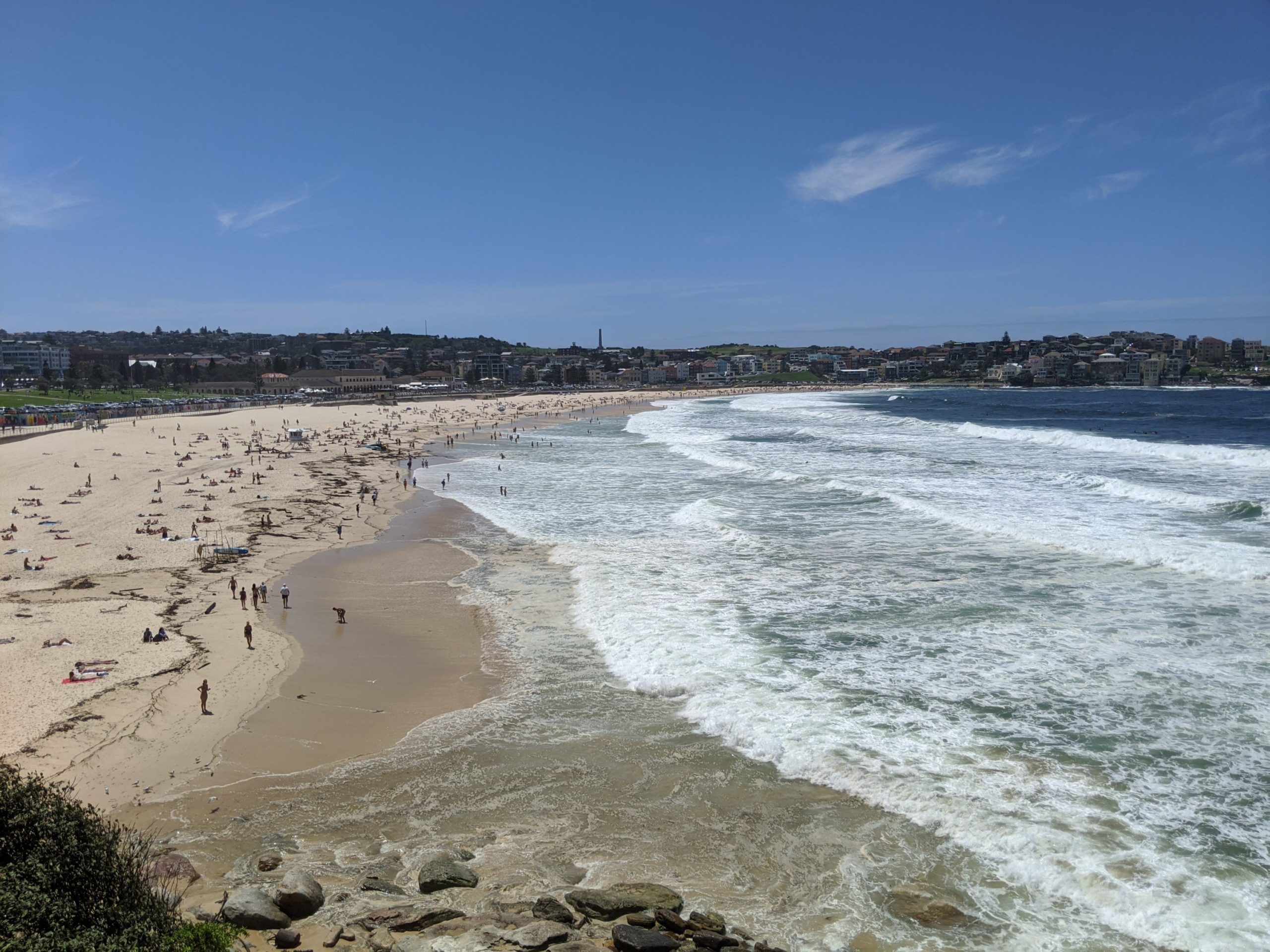 I took a train to Bondi junction and then the 333 bus to the beach. They packed as many people on the bus as they could including squished in the aisles – it is a popular place to go. It could be like a bus in some countries except no fast turns on curves overlooking cliffs or live chickens on board!