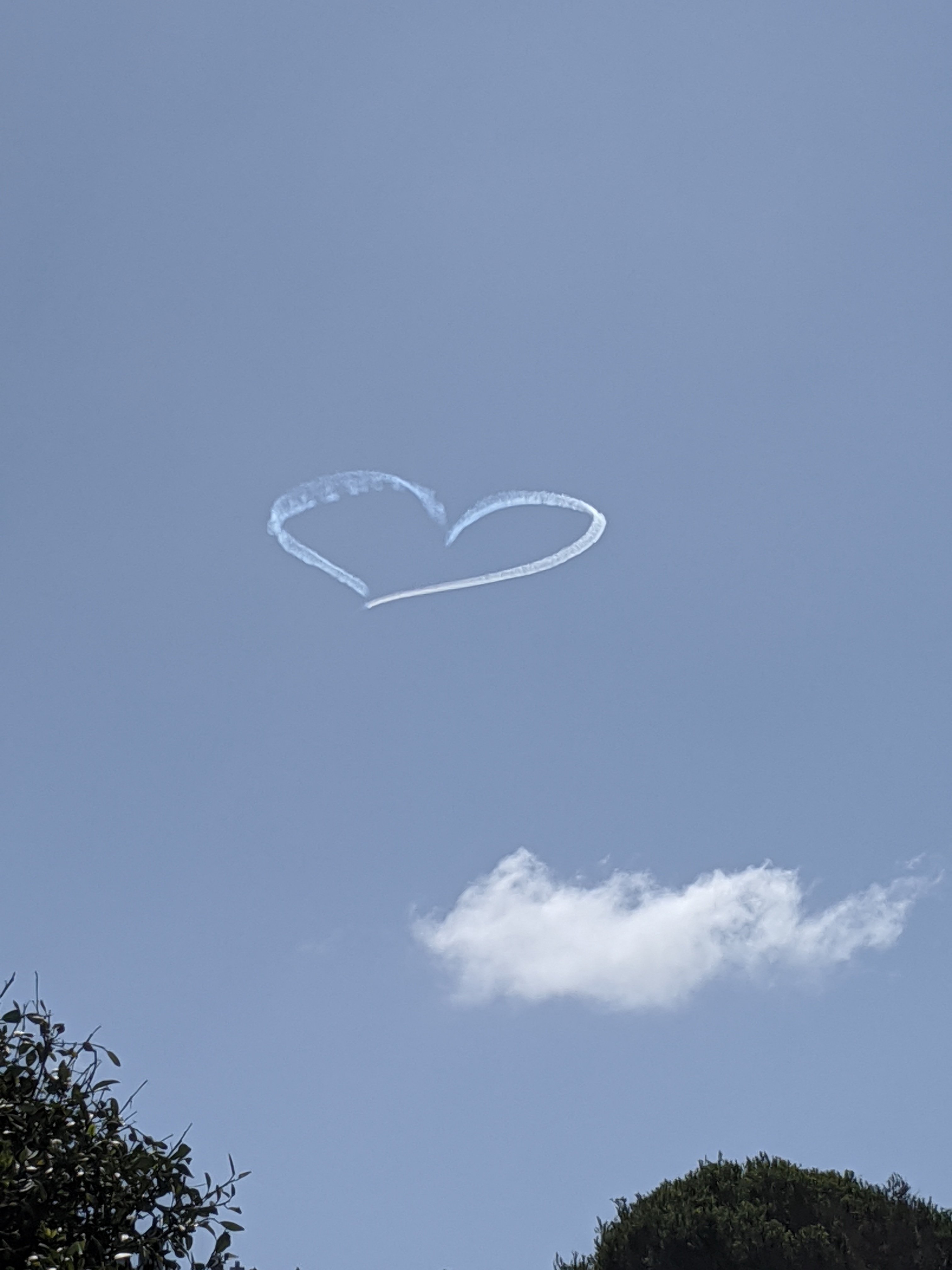 A skywriter made this heart in the air. I thought it was for Valentine’s Day (which is today) but it had a web address after so must have been a stunt. It did get a lot of attention.