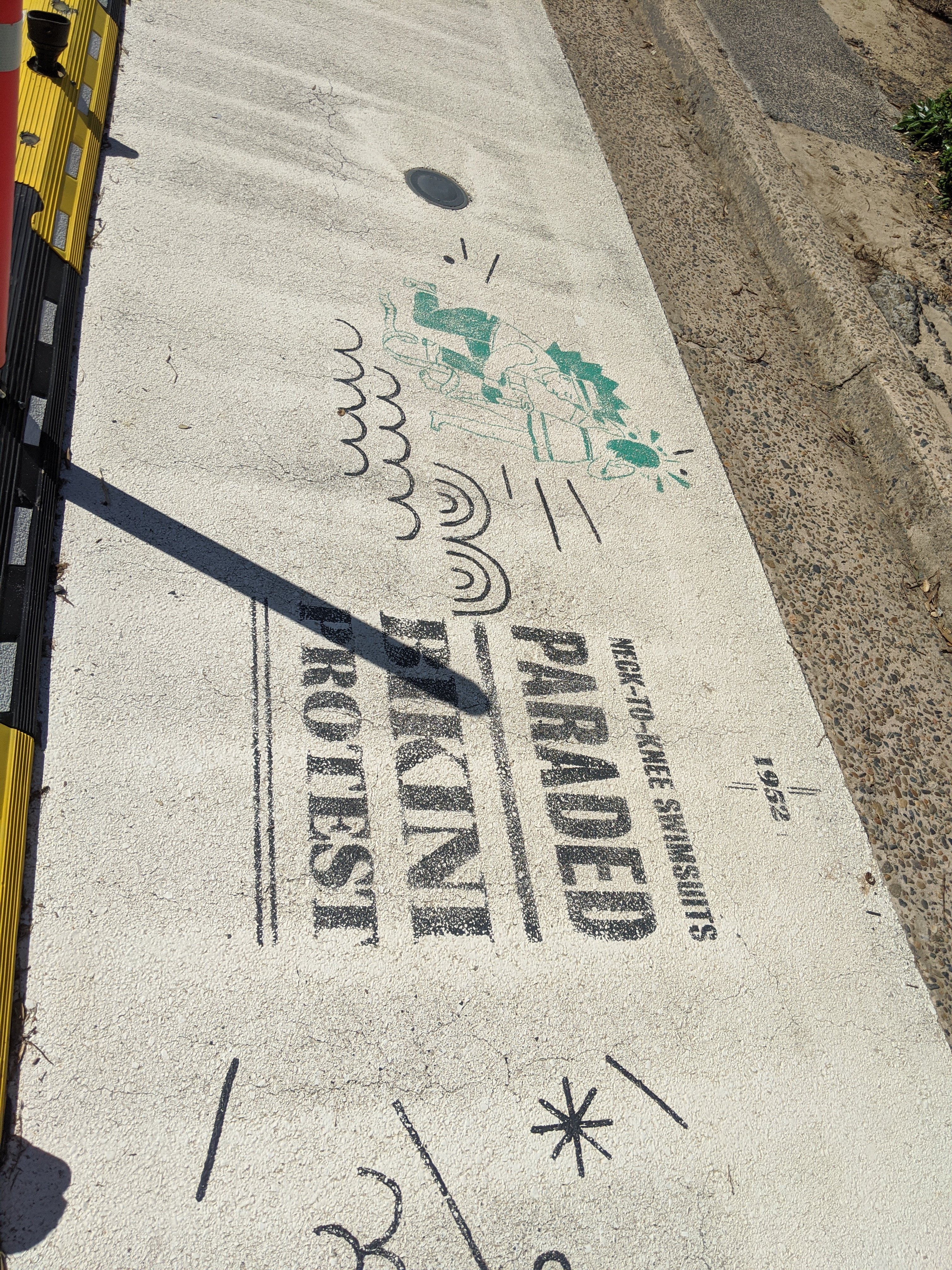 In the path up the hill, headlines from past newspapers were painted on the sidewalk. They were very interesting and included the year it appeared.