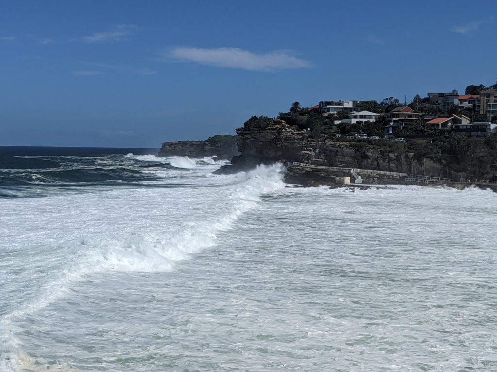 After a morning of work for online learning, I headed to Bondi beach. It is a train/bus ride to the outskirts of Sydney. I finally linked my cards to Google pay ( a luddite I know but we don’t use cards in China). This allowed me to pay directly on the bus or train.