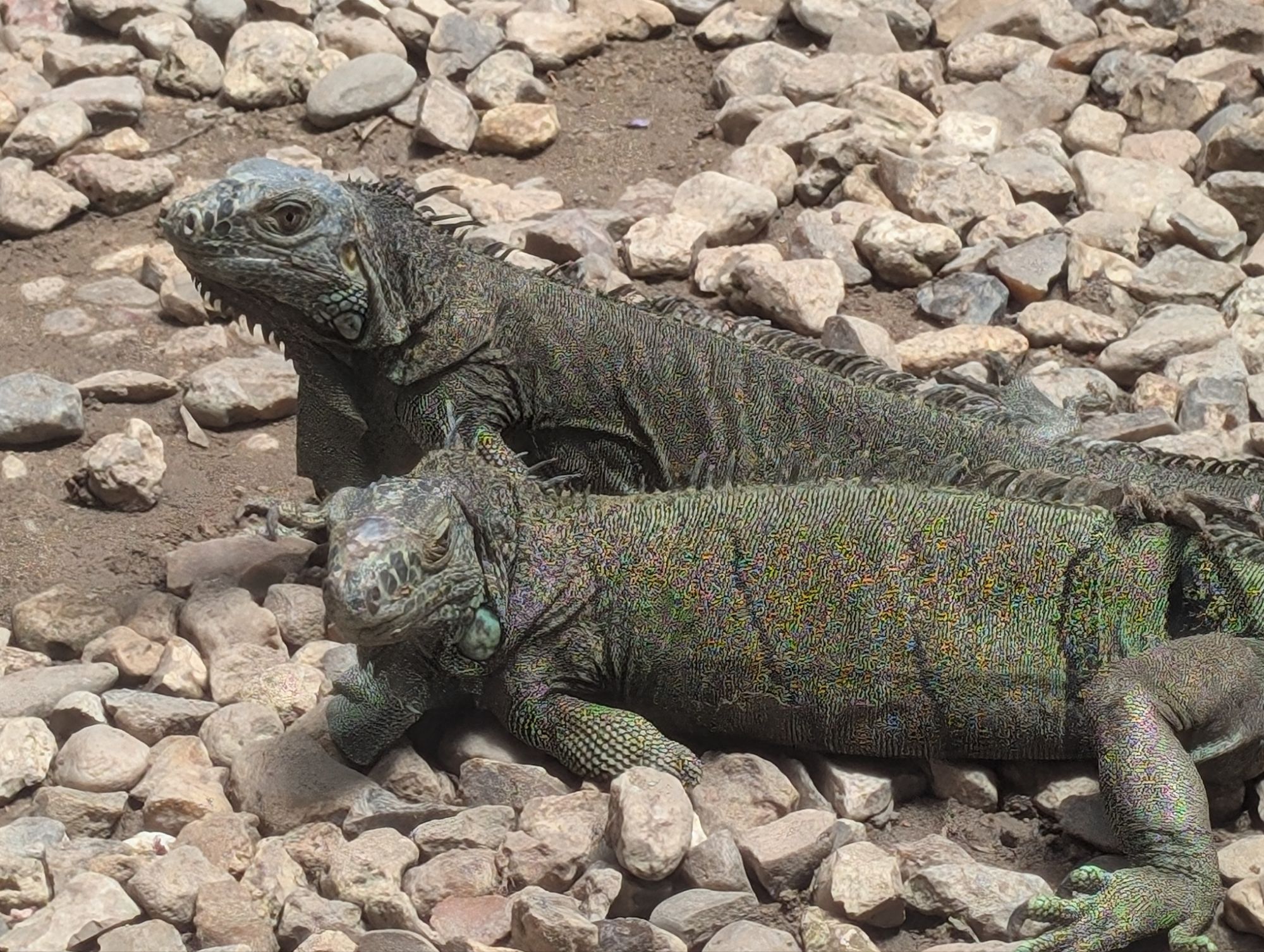 This is the male and so gentle.Two femalesThis guy is a spinetail iguanaYoung yearlingsOnly one of the yearlings is calm enough to do this. Fun. Of the adults, this male was the calmest and doesn’t mind being held.