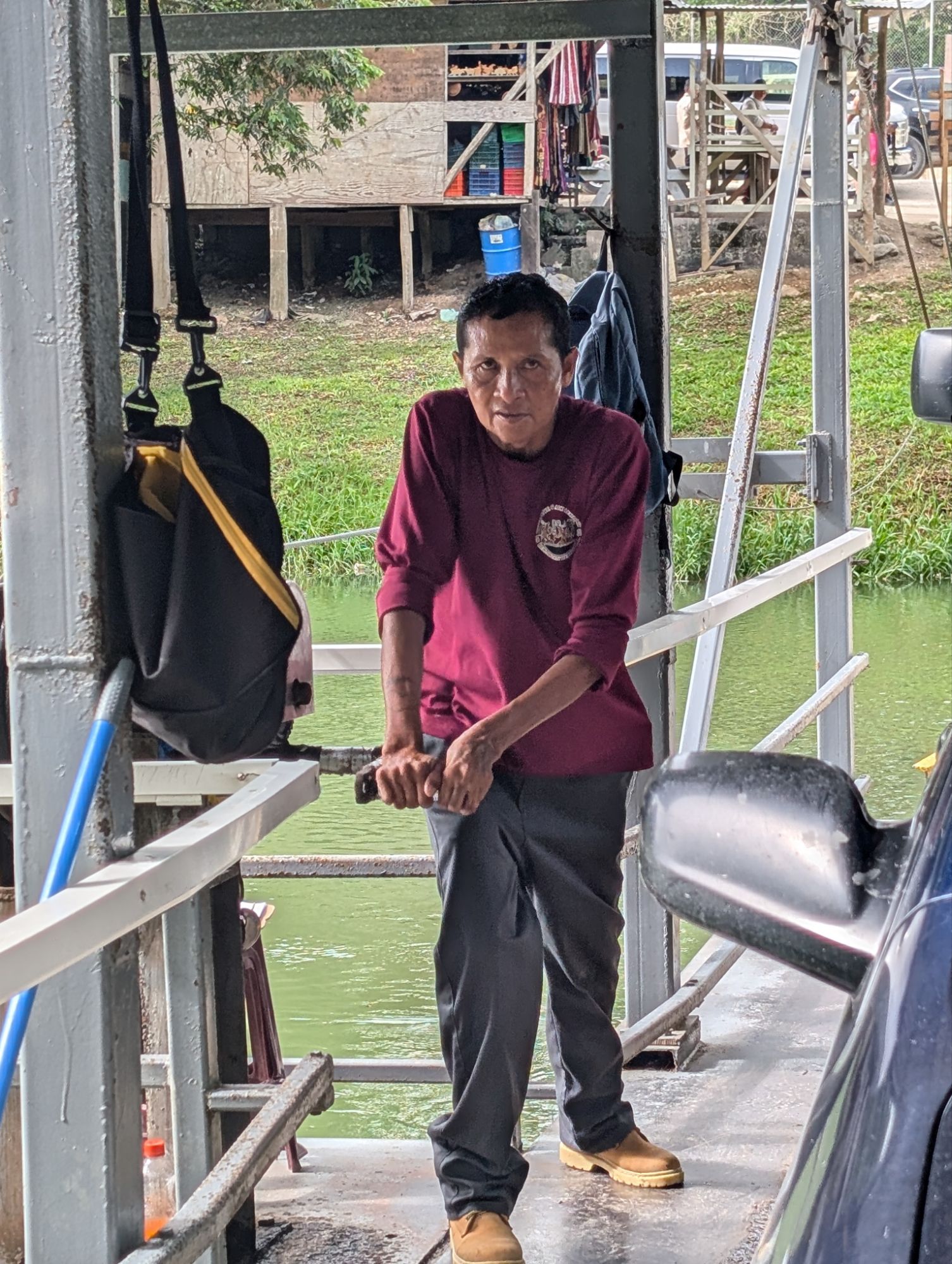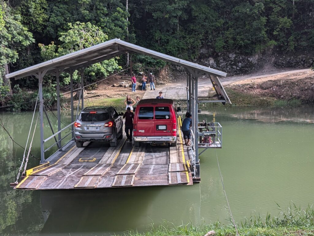 I took a tour to this other ruin close to San Ignacio. After the short drive, you get on the small ferry across the nature section of the Mopan river. This ferry is hand cranked.