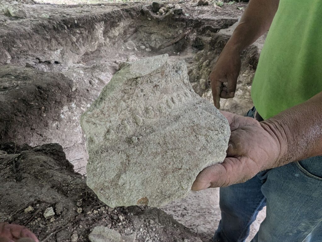 They uncovered stairs and foundationsA shard of potteryThe chiseling is the stamp of the architect