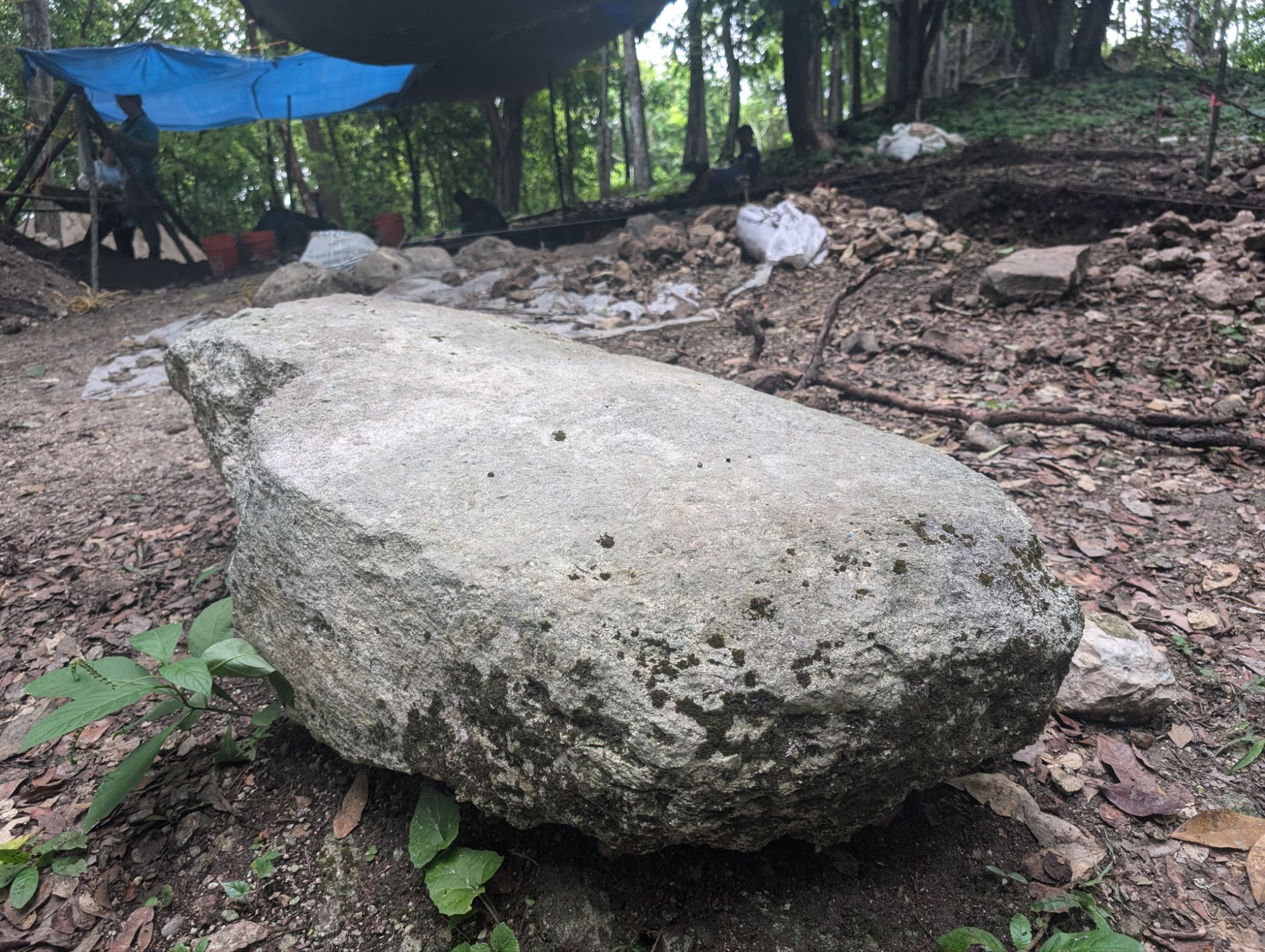 They know that this is a foundation and they are looking for evidence of the doorThis sutre was a quarry, not for stones for building but instead for sculpture stonesThis has not been inscribedThis was an ancient ball court. The sloped sides had the stone hoops and the balls were made of hard rubber made from the sap of a tree and hit by elbows and knees