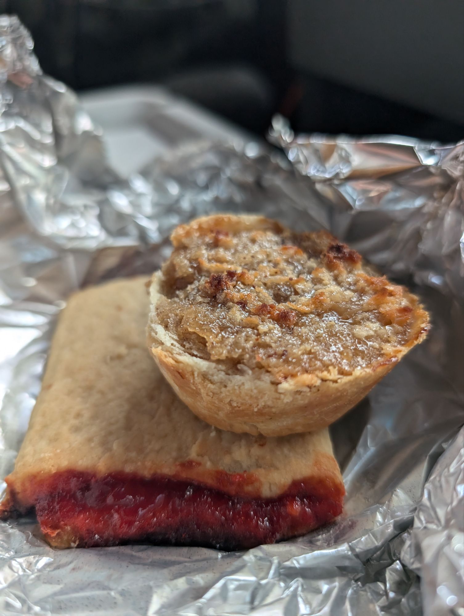 Belizean treats which is a jam tart and a coconut tart.