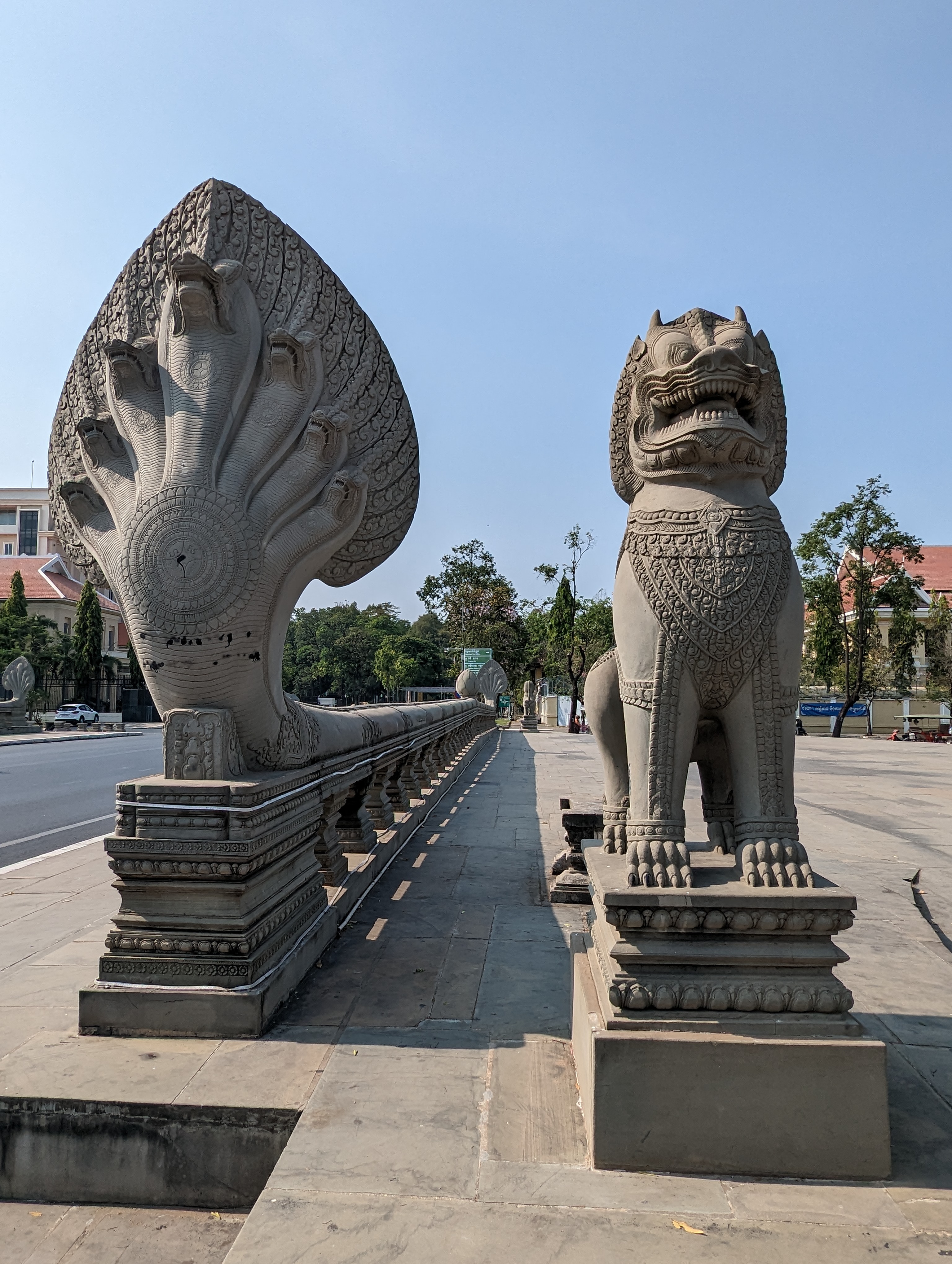 I did see a few monks as it is a holy day.A sculpture of a dancer.Most of the scenes are from Hinduism that depicts good reigning over evil.Most of the statues of Buddha are the body but without a head. During invasions, armies would take everything of value but the statues were too heavy. Instead they took the heads off. The heads of most of the statues have not been found.This depicts the prince and demons holding Naga.The head of Naga rises alongside the stairs. The railings along the walkway in the courtyard are the body of the 7 headed snake.Leaving the complex you pass by the reflection pool.