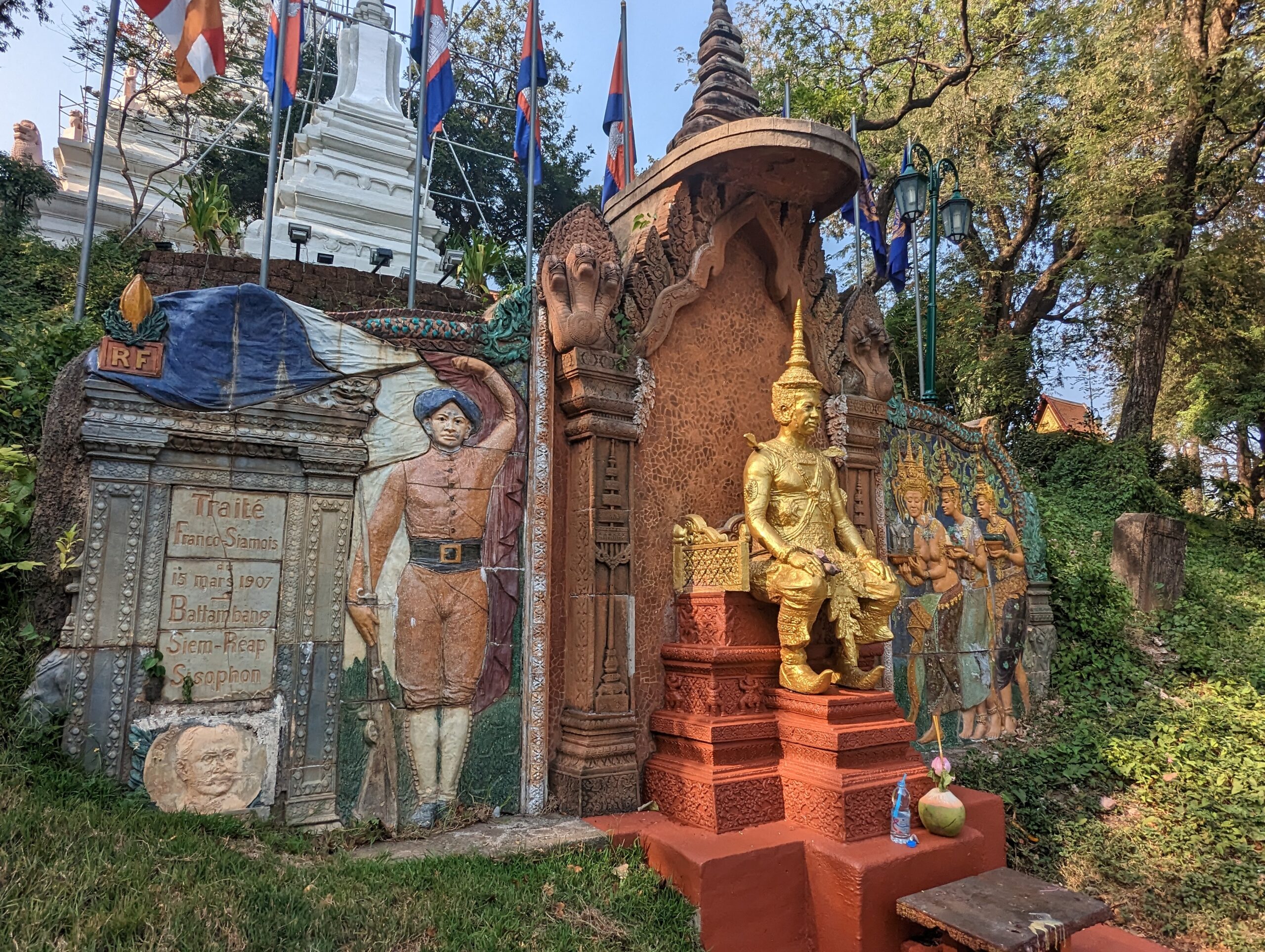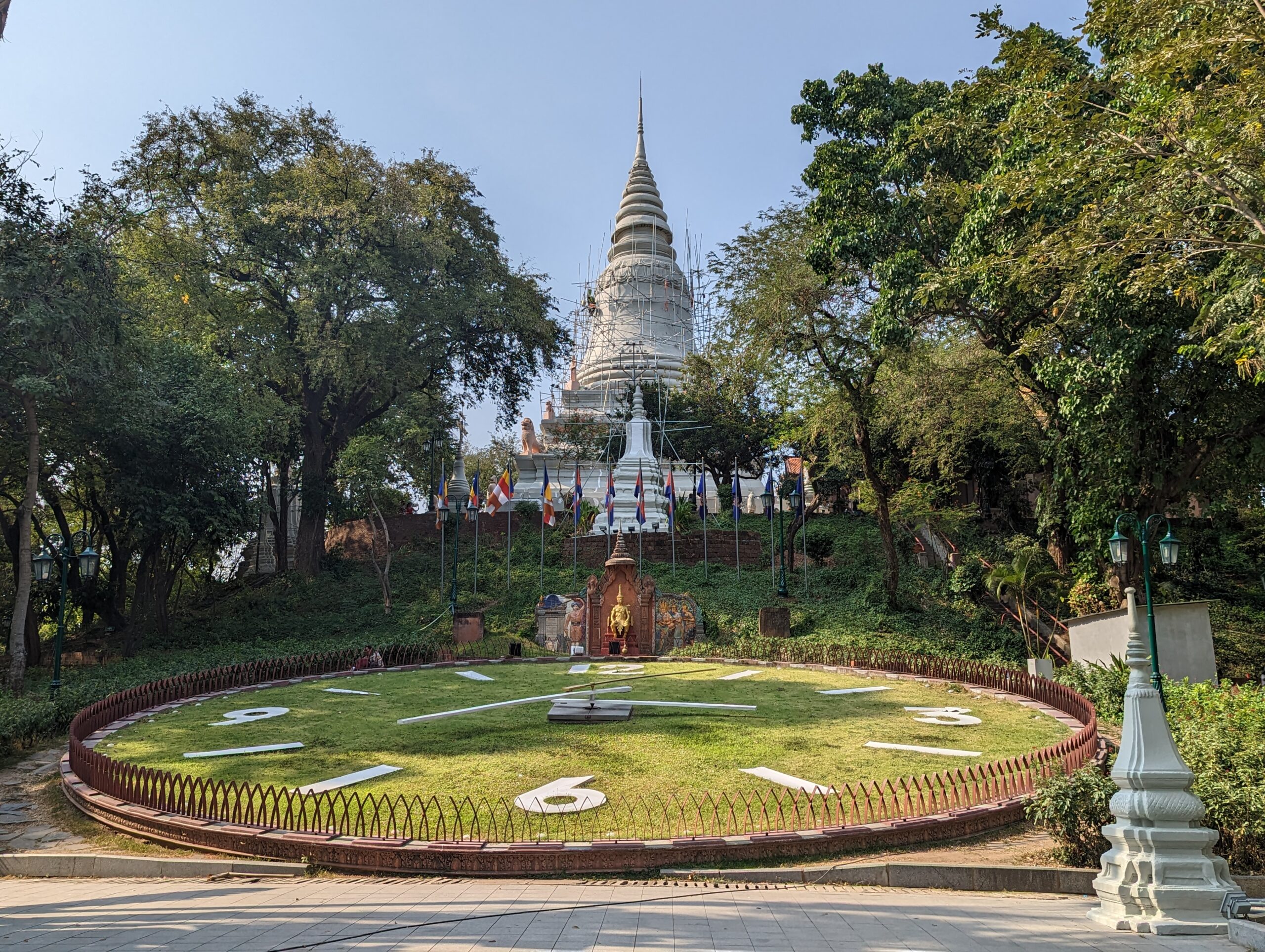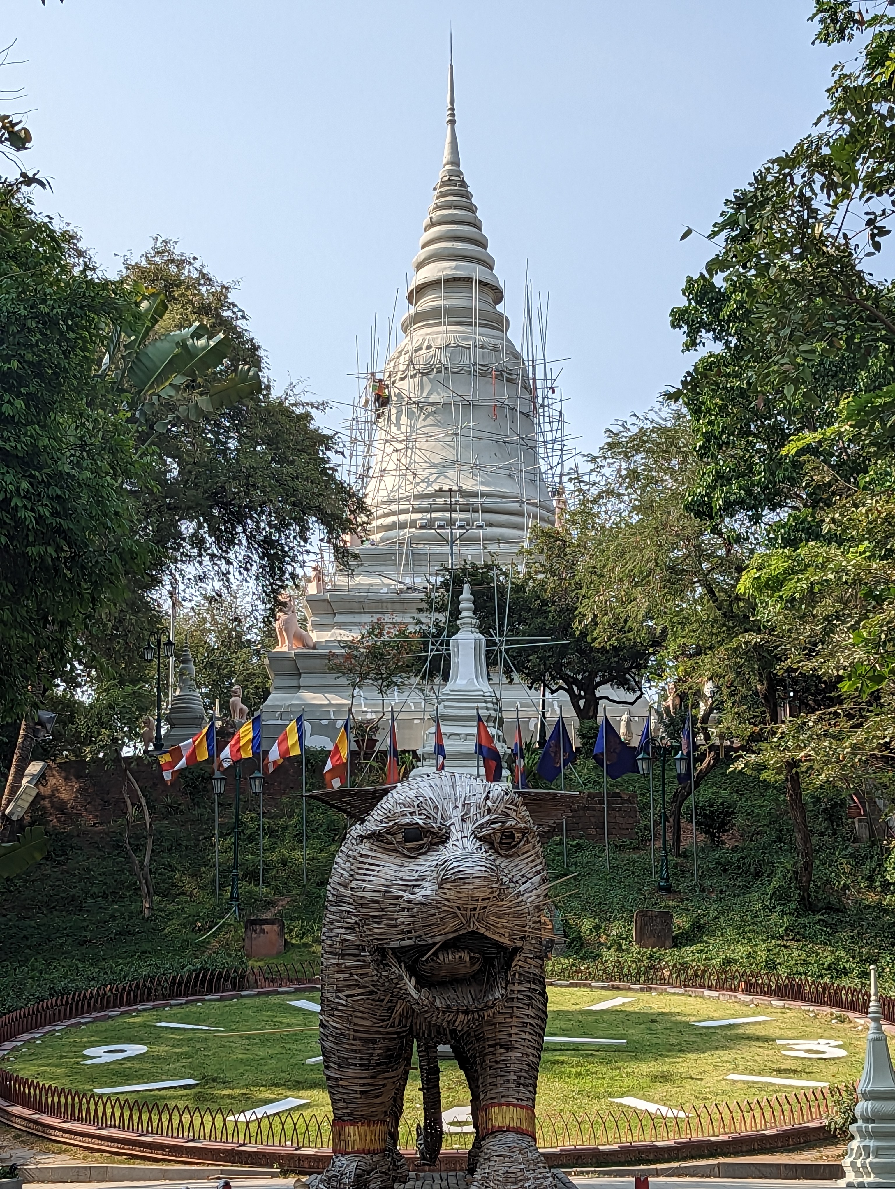 The temple was built in 1372 by a woman named Penh who found four Buddha statues floating in the Mekong River. She built a small shrine to house the statues on the hill, and over time the shrine grew into a temple. The temple was closed (stairs are not my thing right now anyway).