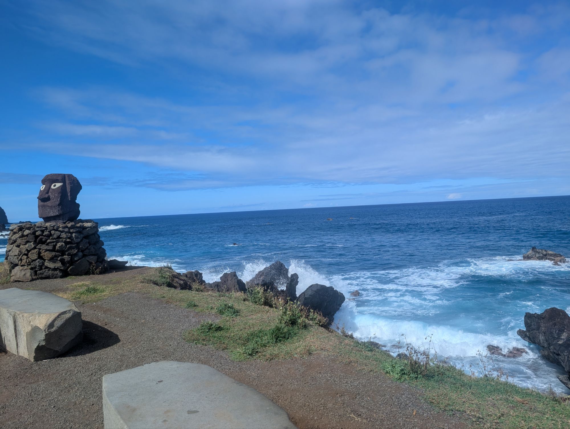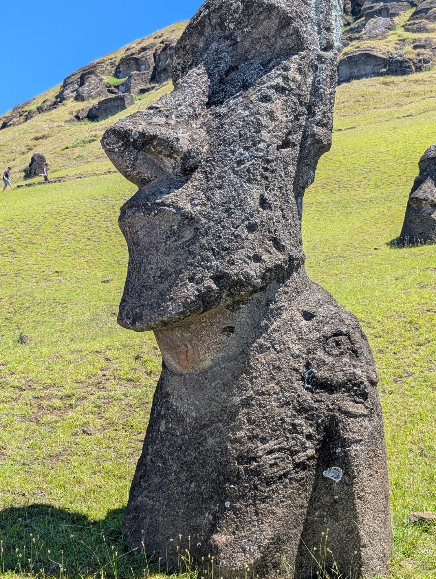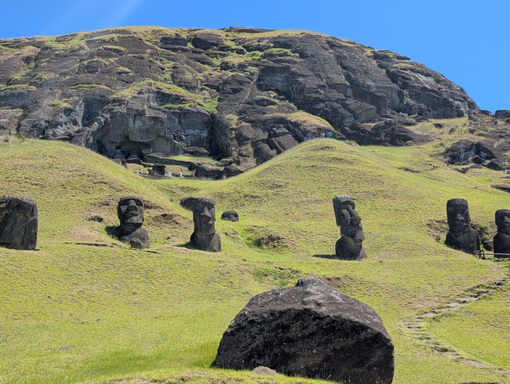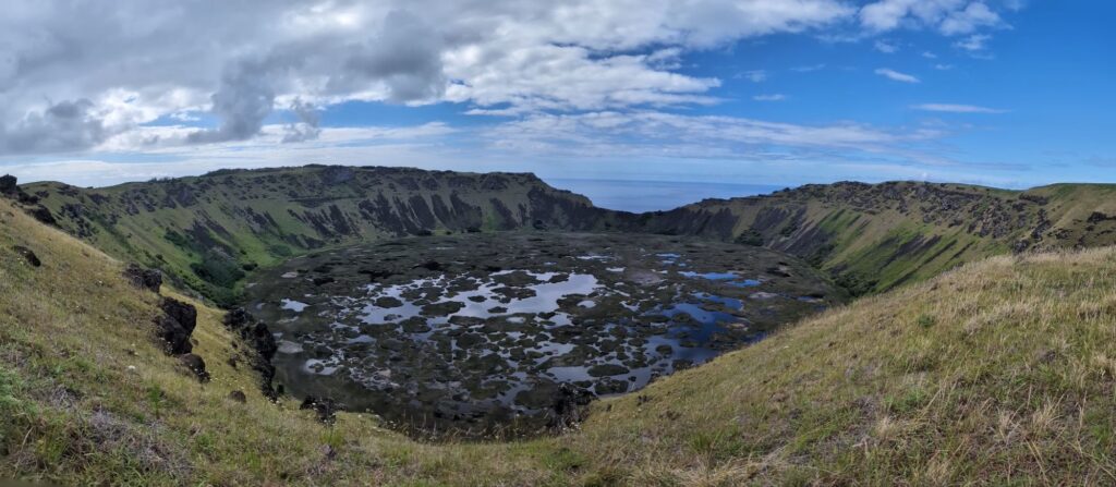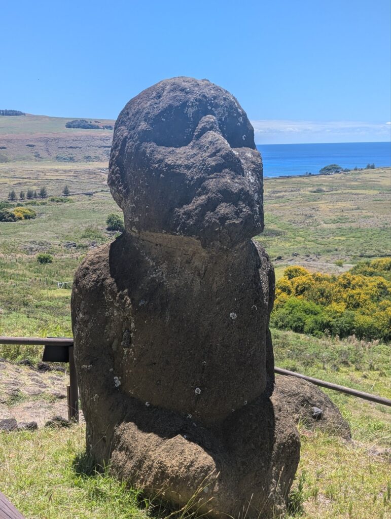 This is on the other side of the volcano Crater. There is remains of Rapa Nui houses from the 1700’s and reconstructed houses to show what they would have looked like. Here the birdman competition would happen. A representative(s) from each klan would go to the island on a log like surfing to retrieve the egg of the sooty tern.