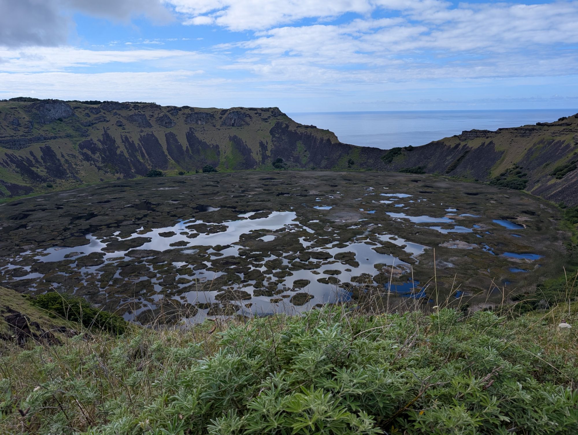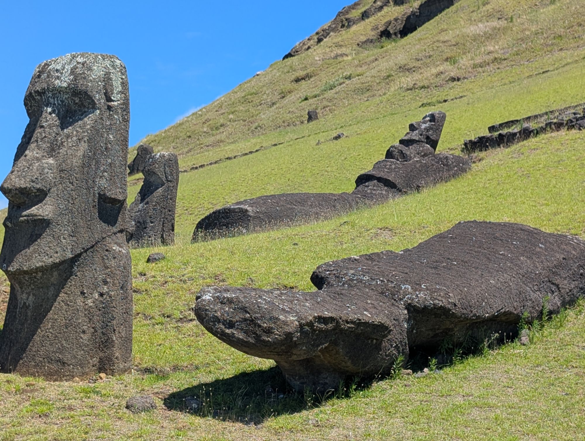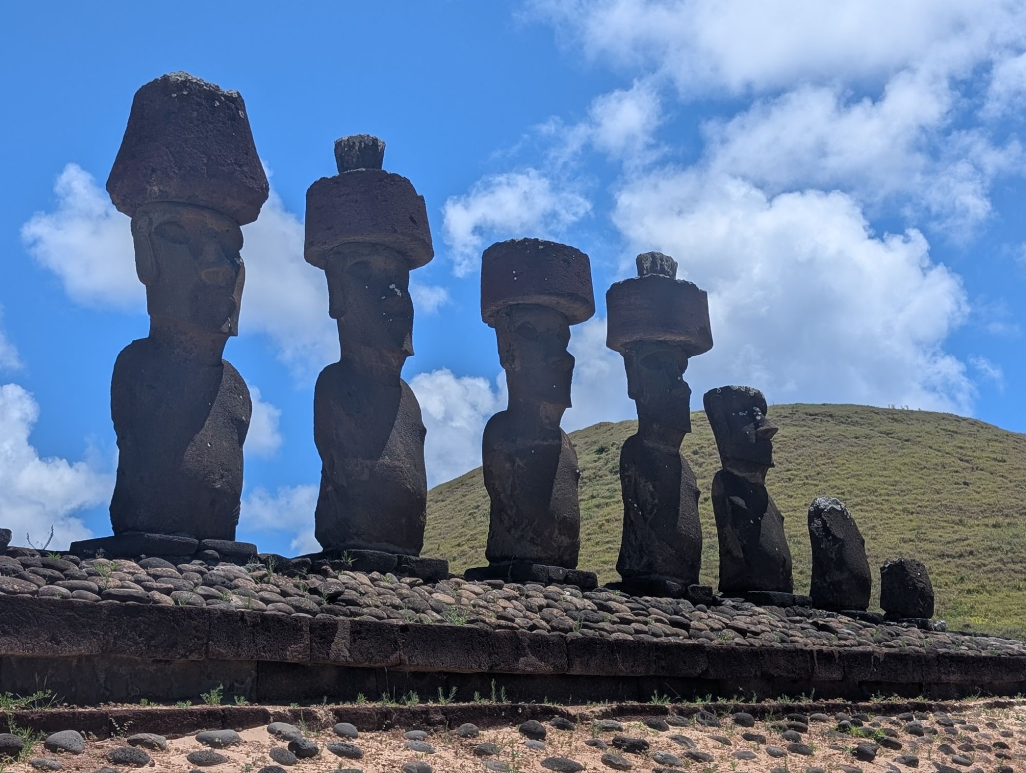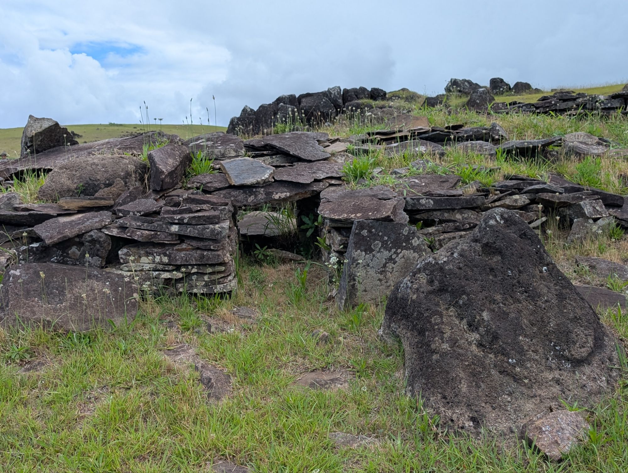 This is on the other side of the volcano Crater. There is remains of Rapa Nui houses from the 1700’s and reconstructed houses to show what they would have looked like. Here the birdman competition would happen. A representative(s) from each klan would go to the island on a log like surfing to retrieve the egg of the sooty tern.