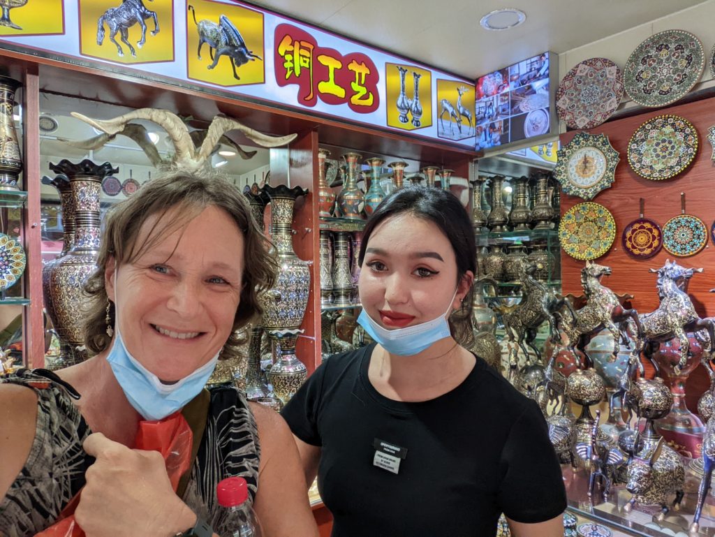 We met as a group to go to the cultural emporium to look at Muslim food and other goods. Despite letting others through with the same specific travel code, it looked like they were not going to let us. There were some arguments and eventually they relented. It is unfortunate that there is more anti-foreign sentiment going around again…. Checkpoints were everywhere.