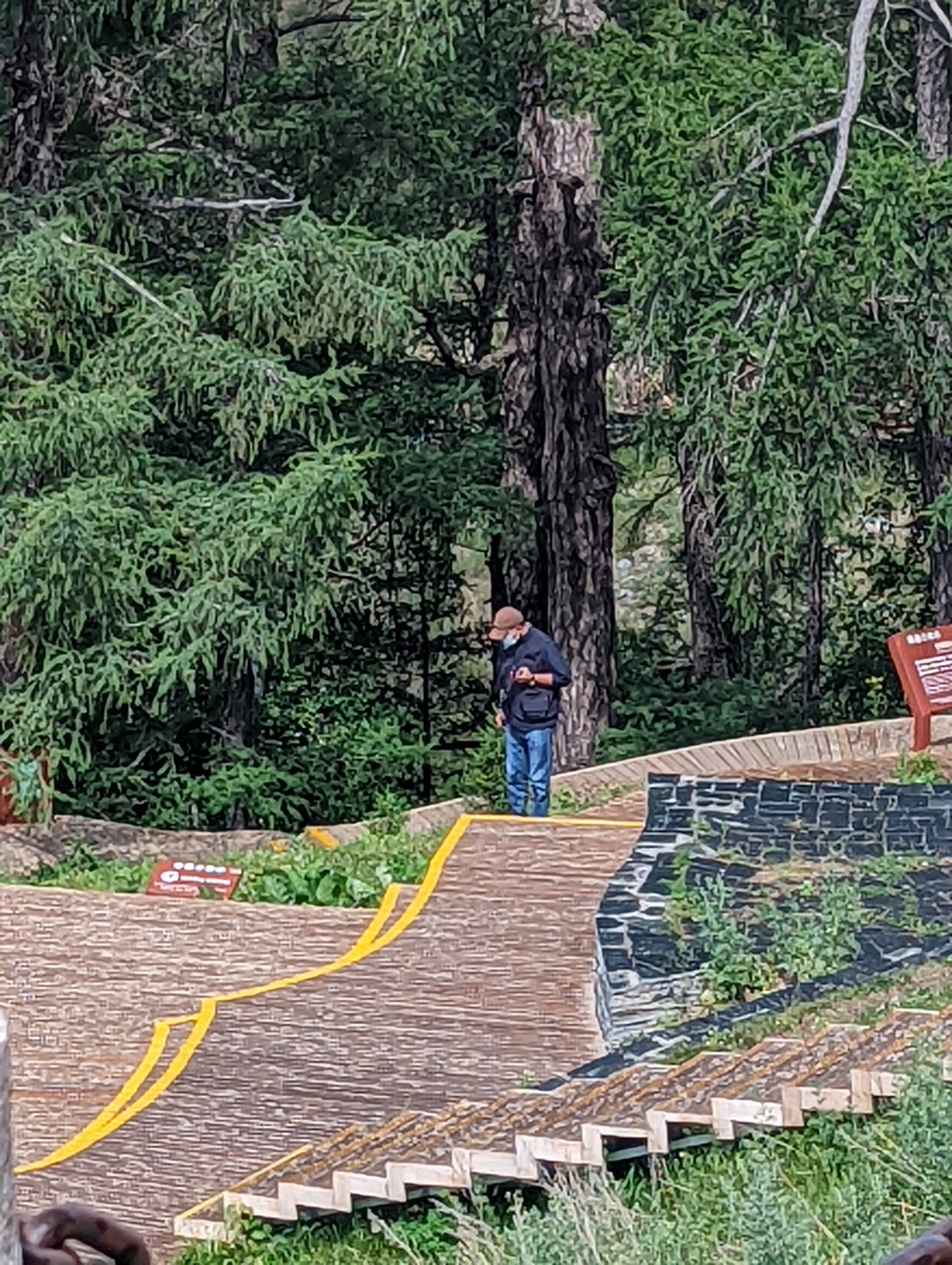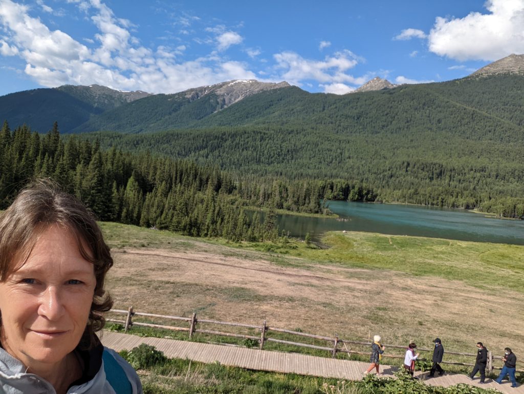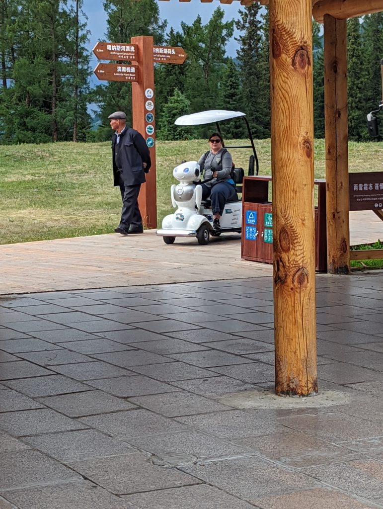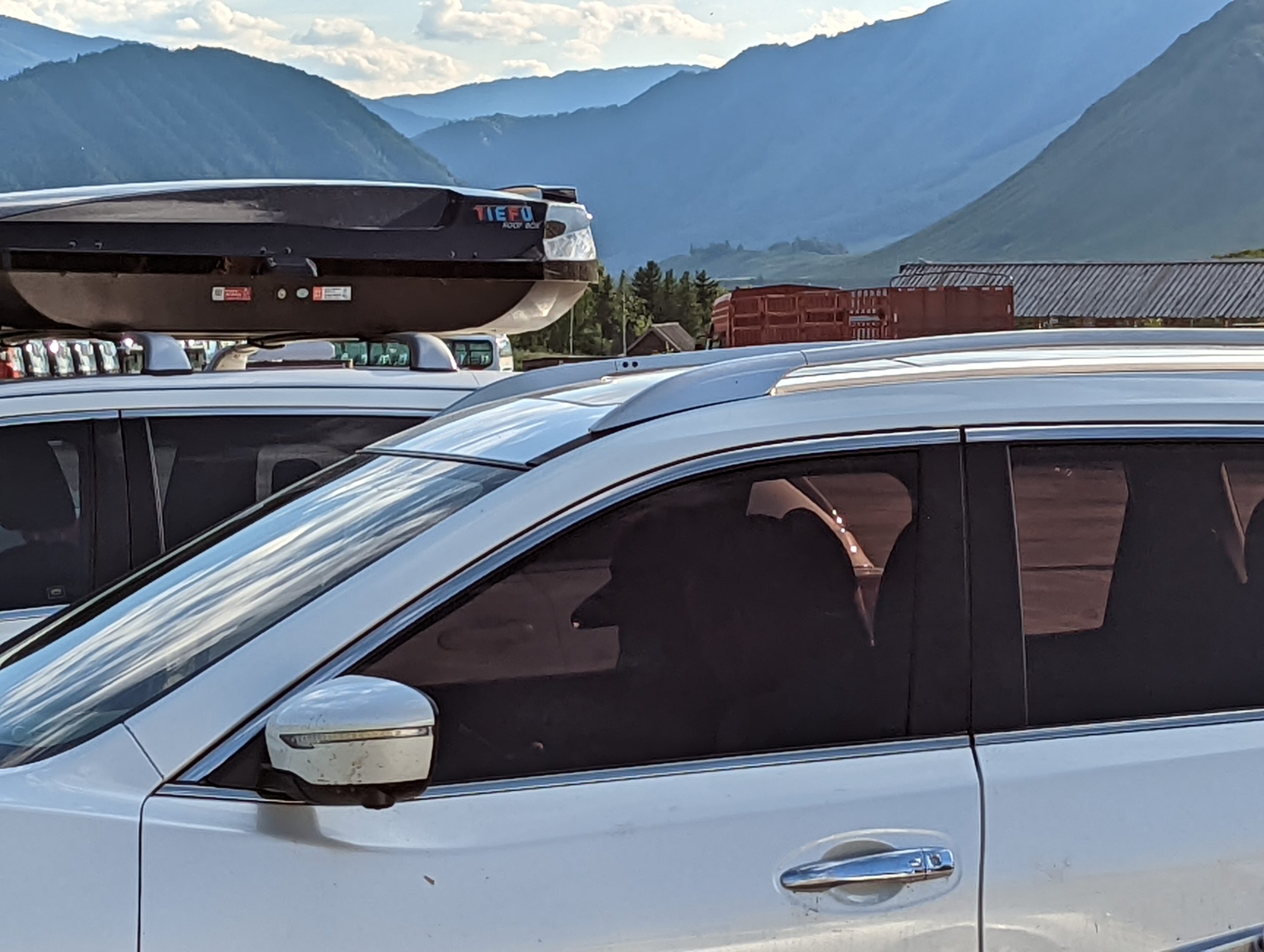 Today we went to Kanas Nature preserve to view the bays below the lake. You have to transfer to a bus that takes you to the hub of the preserve. From there, you take a bus that goes into a specific direction. Before we left the hotel, we noticed the car. We were really hoping we were wrong, but we weren’t. I positioned myself in the back of the bus to take selfies. It is the black car.