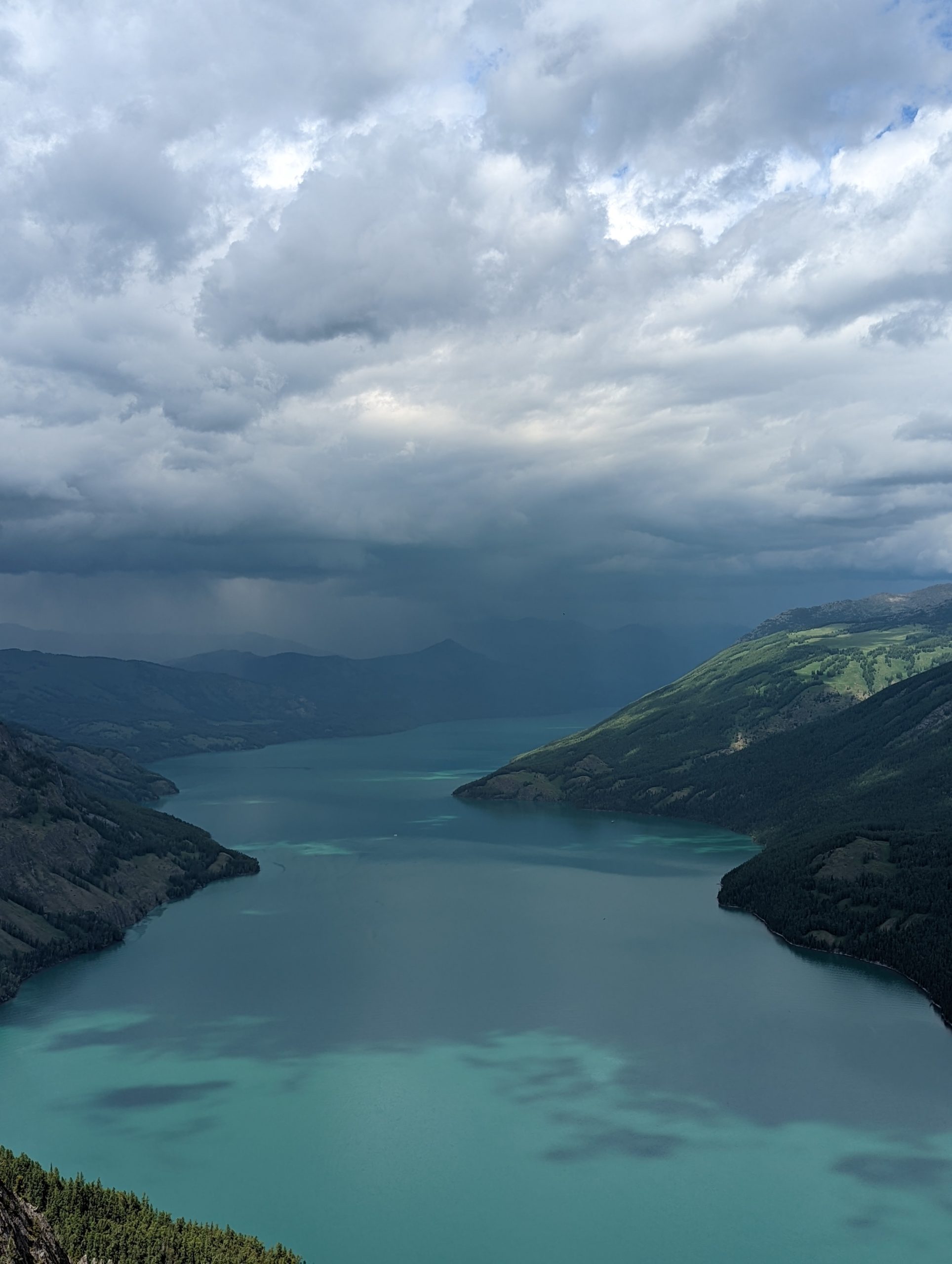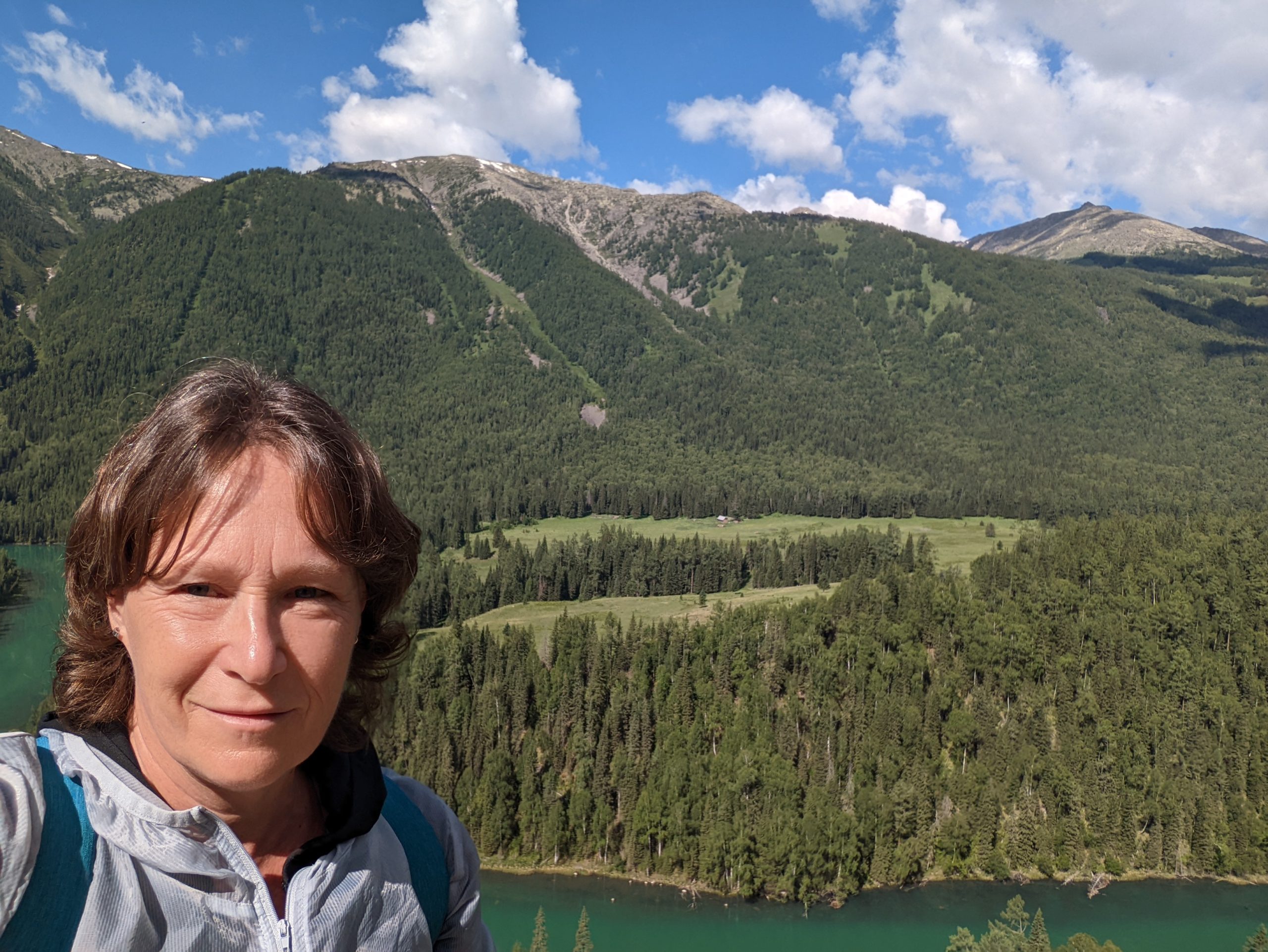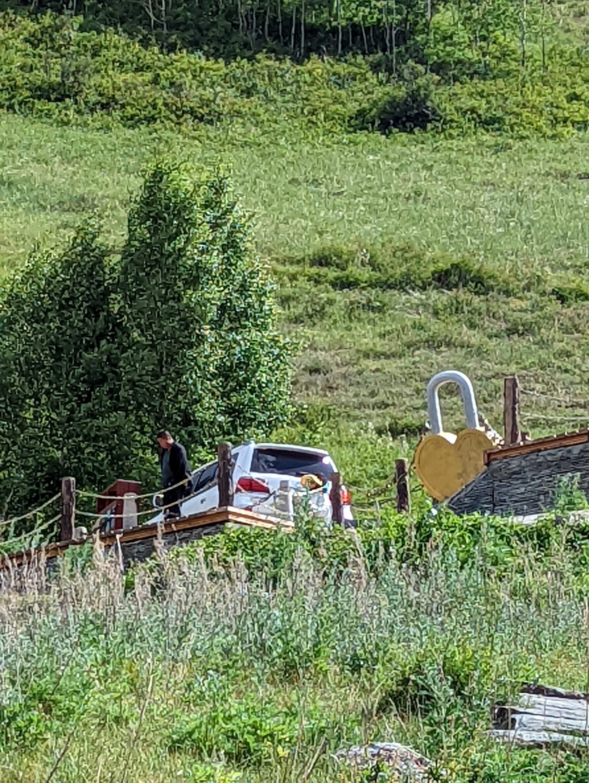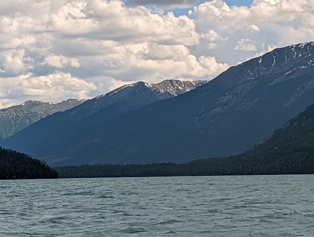 Today we went to Kanas Nature preserve to view the bays below the lake. You have to transfer to a bus that takes you to the hub of the preserve. From there, you take a bus that goes into a specific direction. Before we left the hotel, we noticed the car. We were really hoping we were wrong, but we weren’t. I positioned myself in the back of the bus to take selfies. It is the black car.
