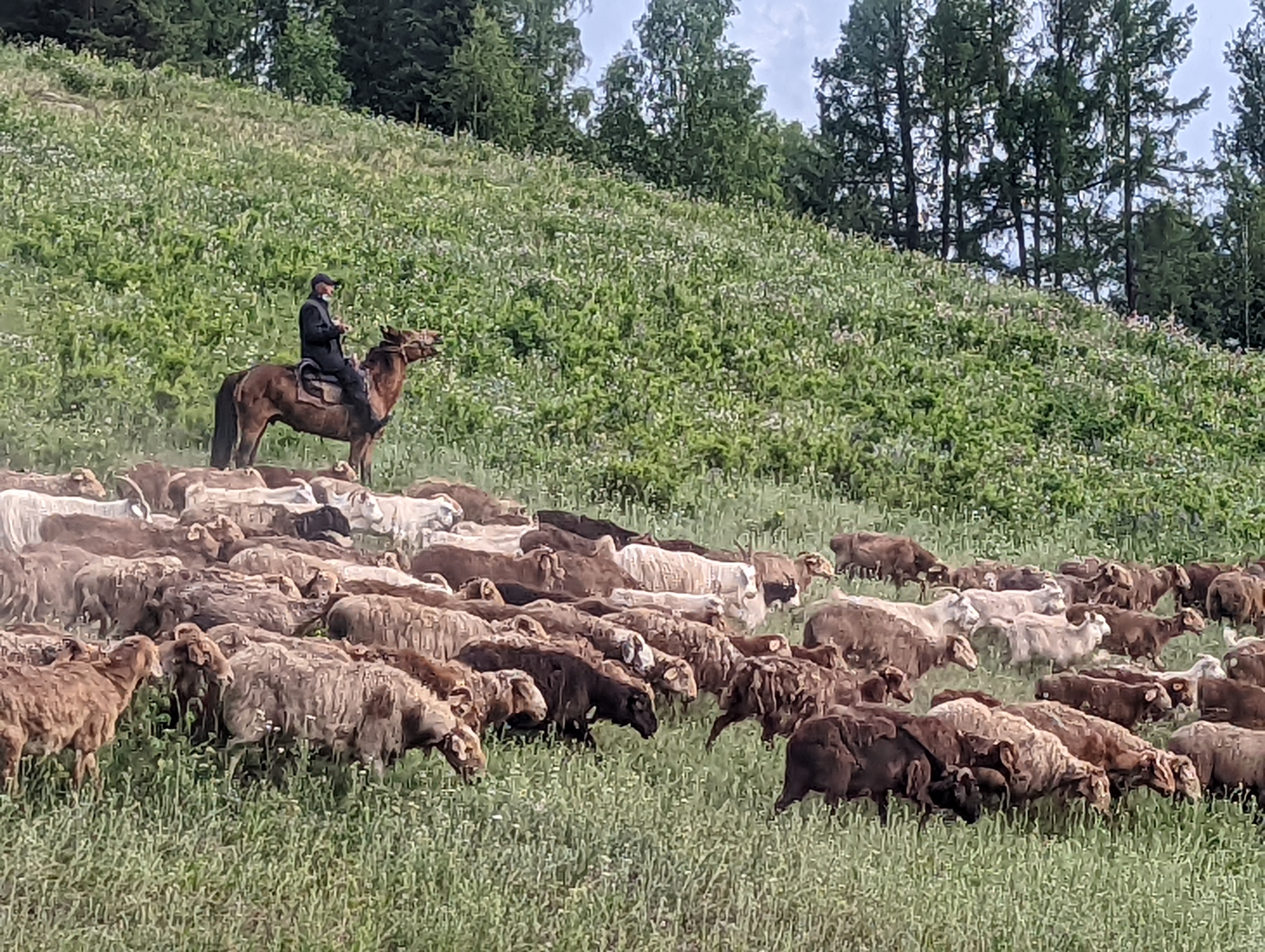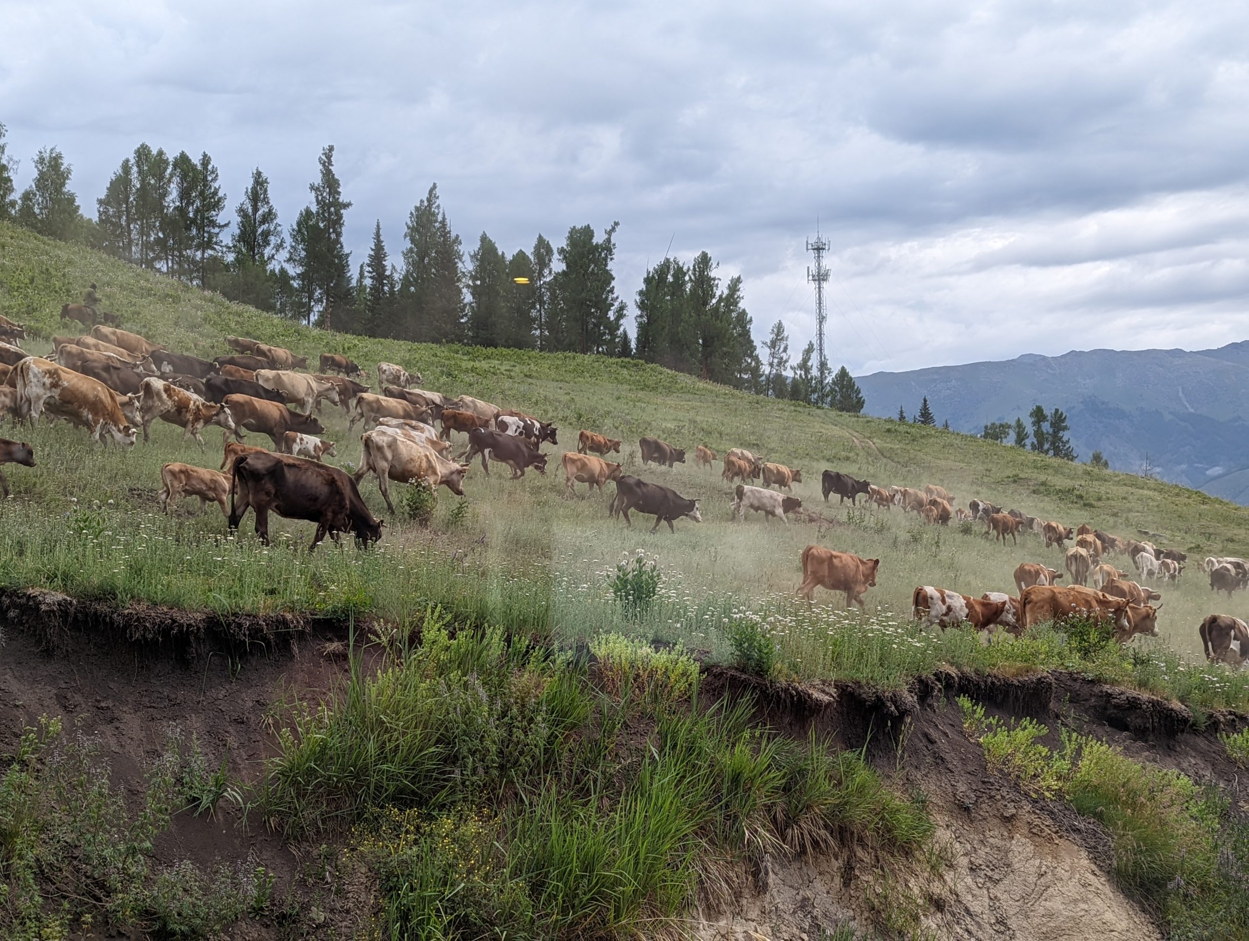 In the morning, I was happy to see herds of cows and sheep moving outside of the window by the Khazak people.