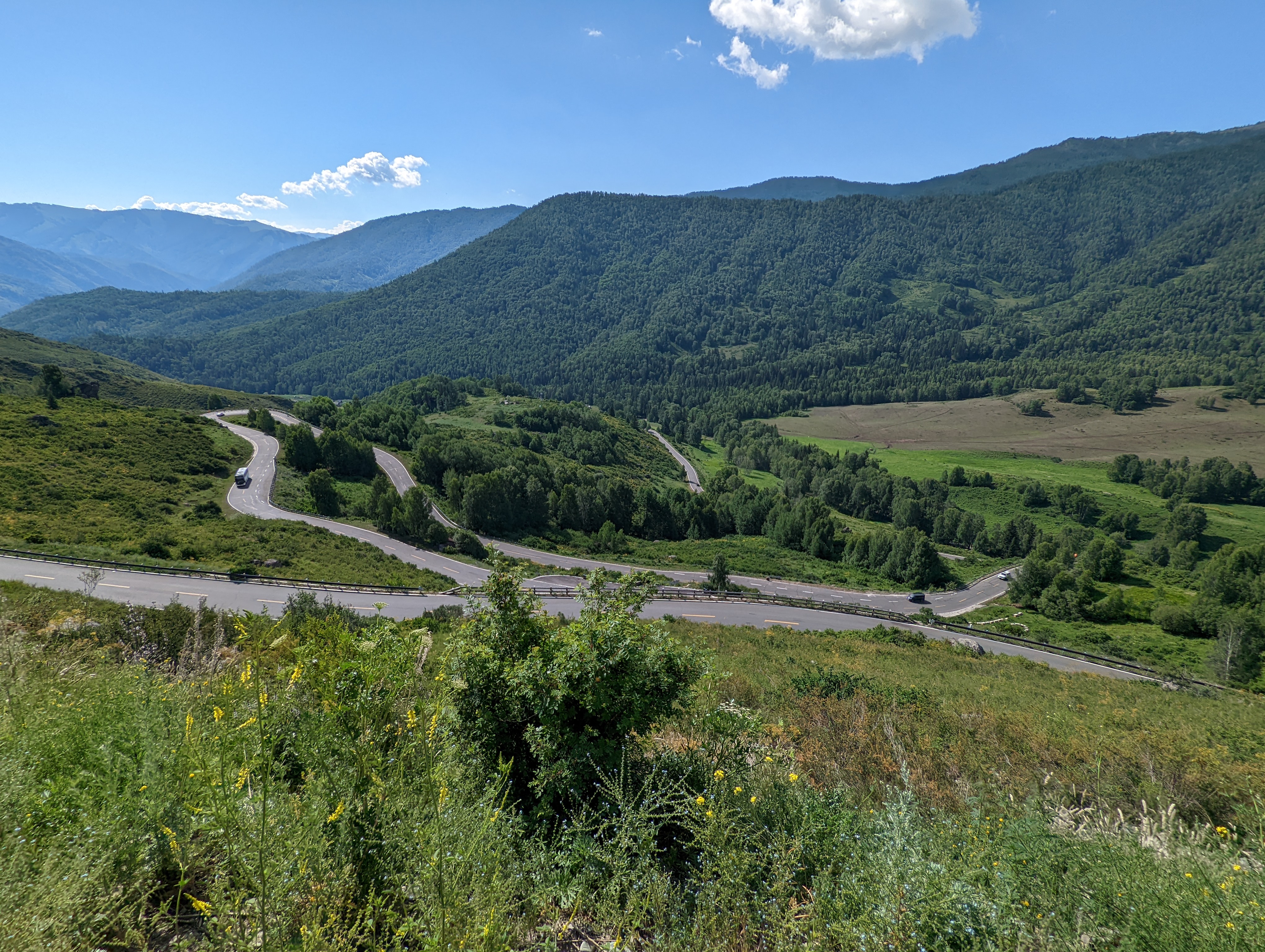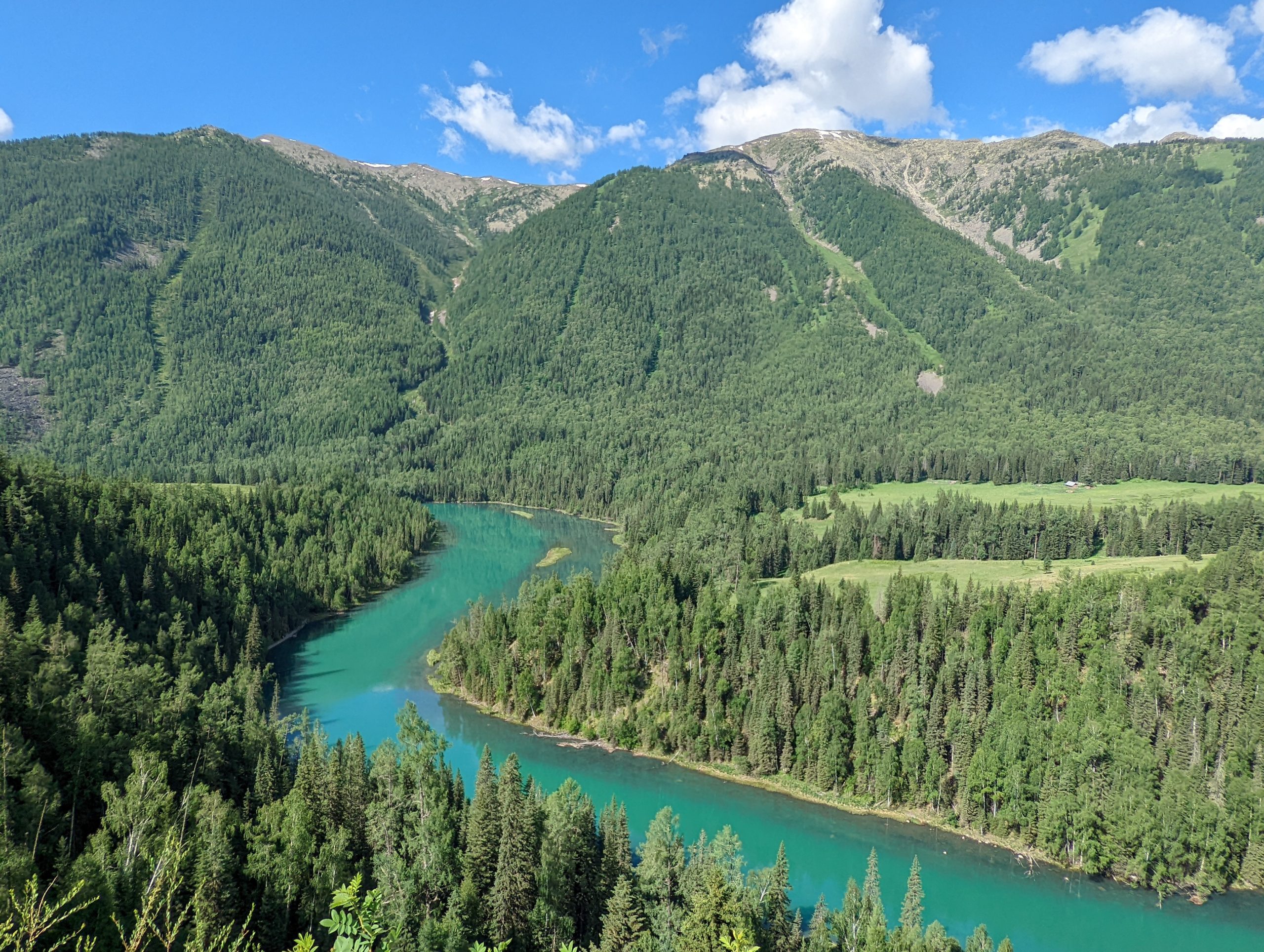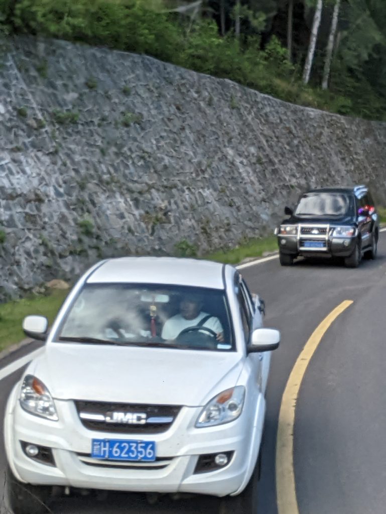And yes, the car still followed us switching back to the black car (I think they switched to the white car because they knew we spotted them as there was a white car at the Hemu police station – I notice a lot of things when I run). When we stopped to take a picture of the winding road and scenery, they pulled off behind us. Of course I let them know we saw them. They followed us until the checkpoint area where we first entered Kanas reserve.