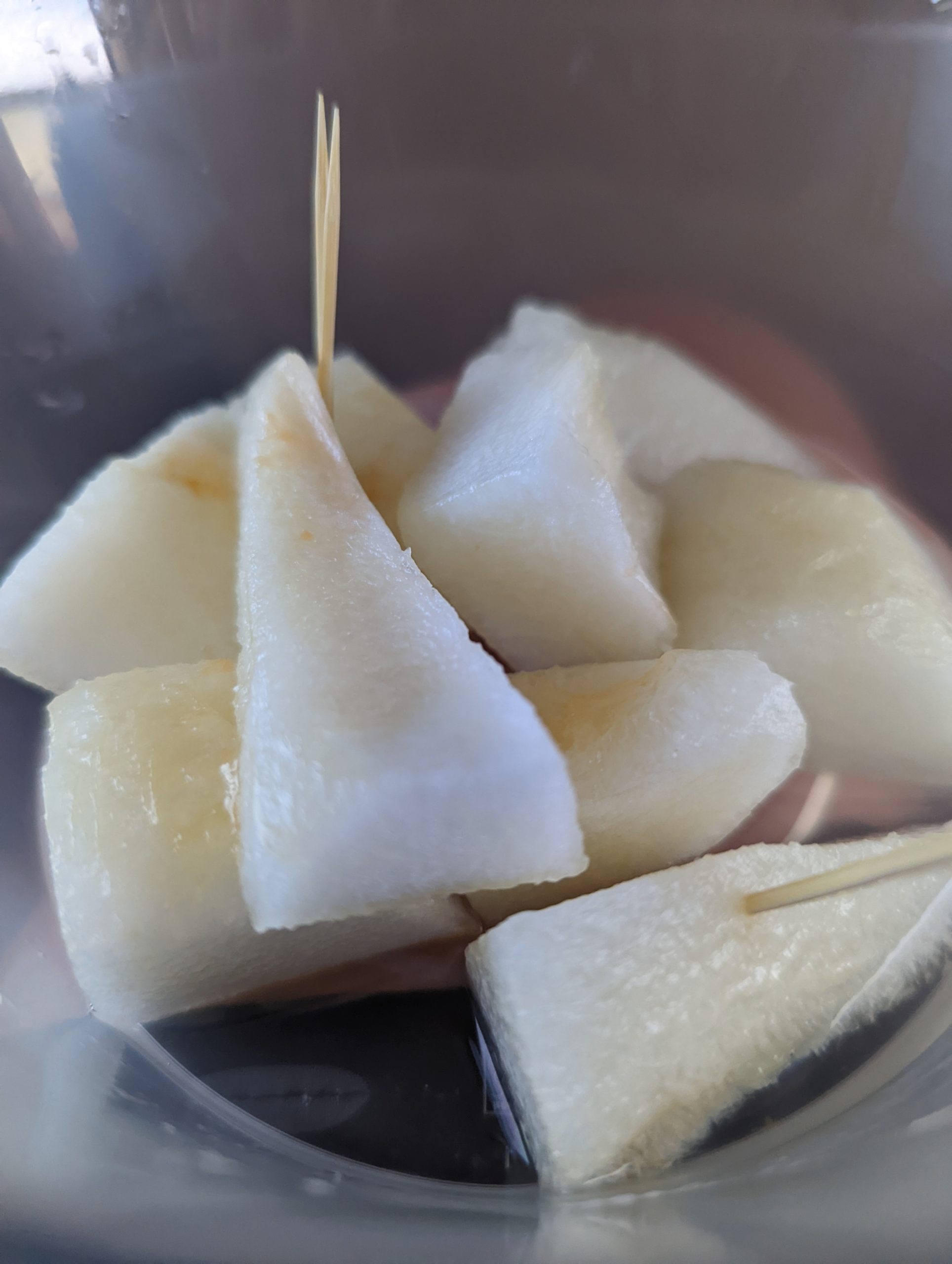 At the rest stop, this guy in the light blue shirt was first to get out of the car and go to the convenience store while we used the bathroom. We bought two containers of melon. We knew there were three guys in the car.
