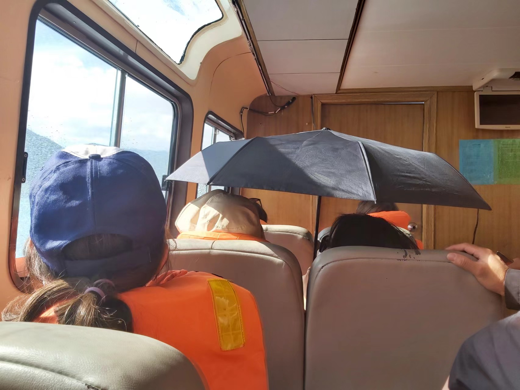 On the boat cruise, it was a little sunny. I think it’s great that Chinese women take care of their skin and use umbrellas.