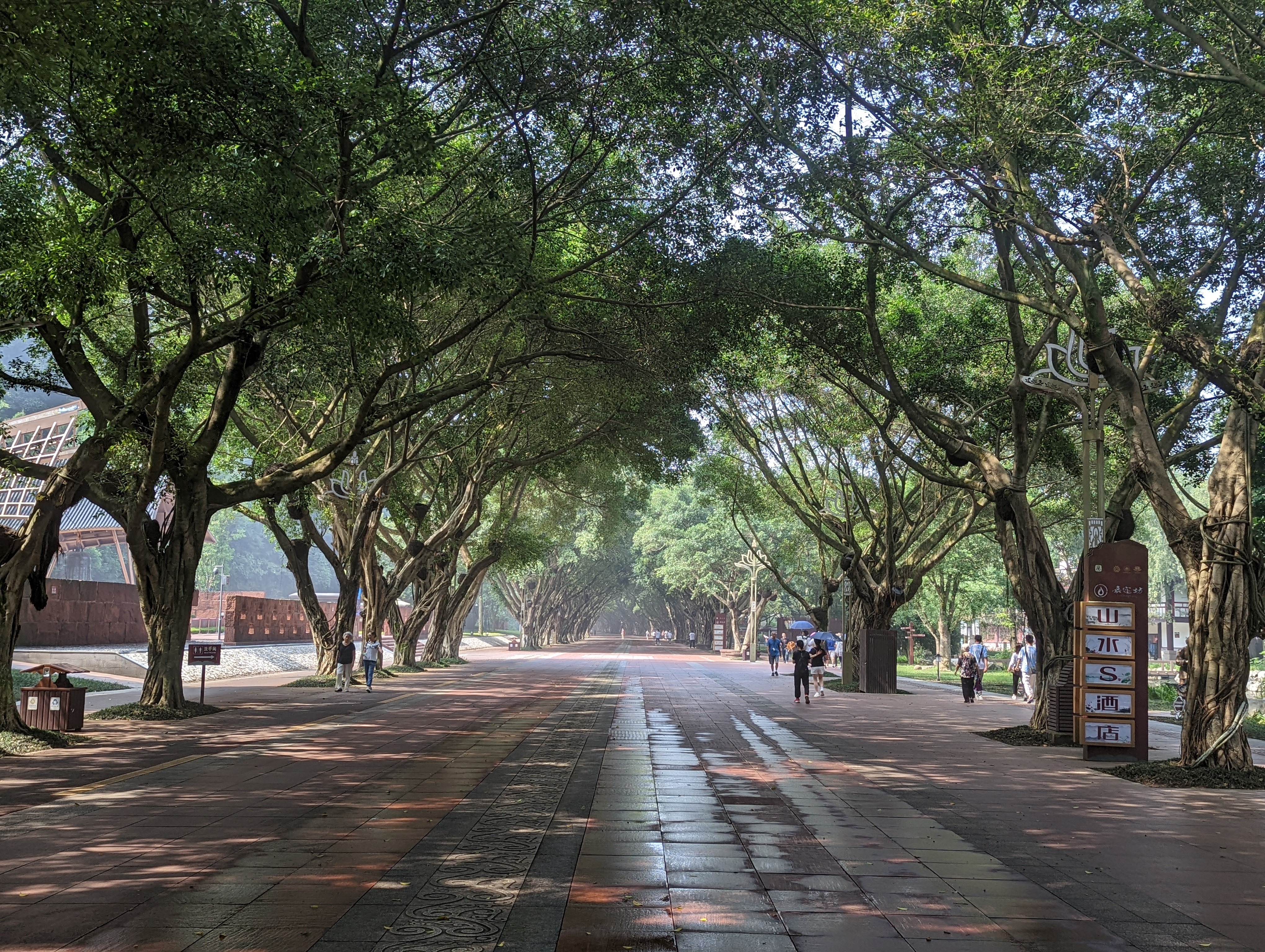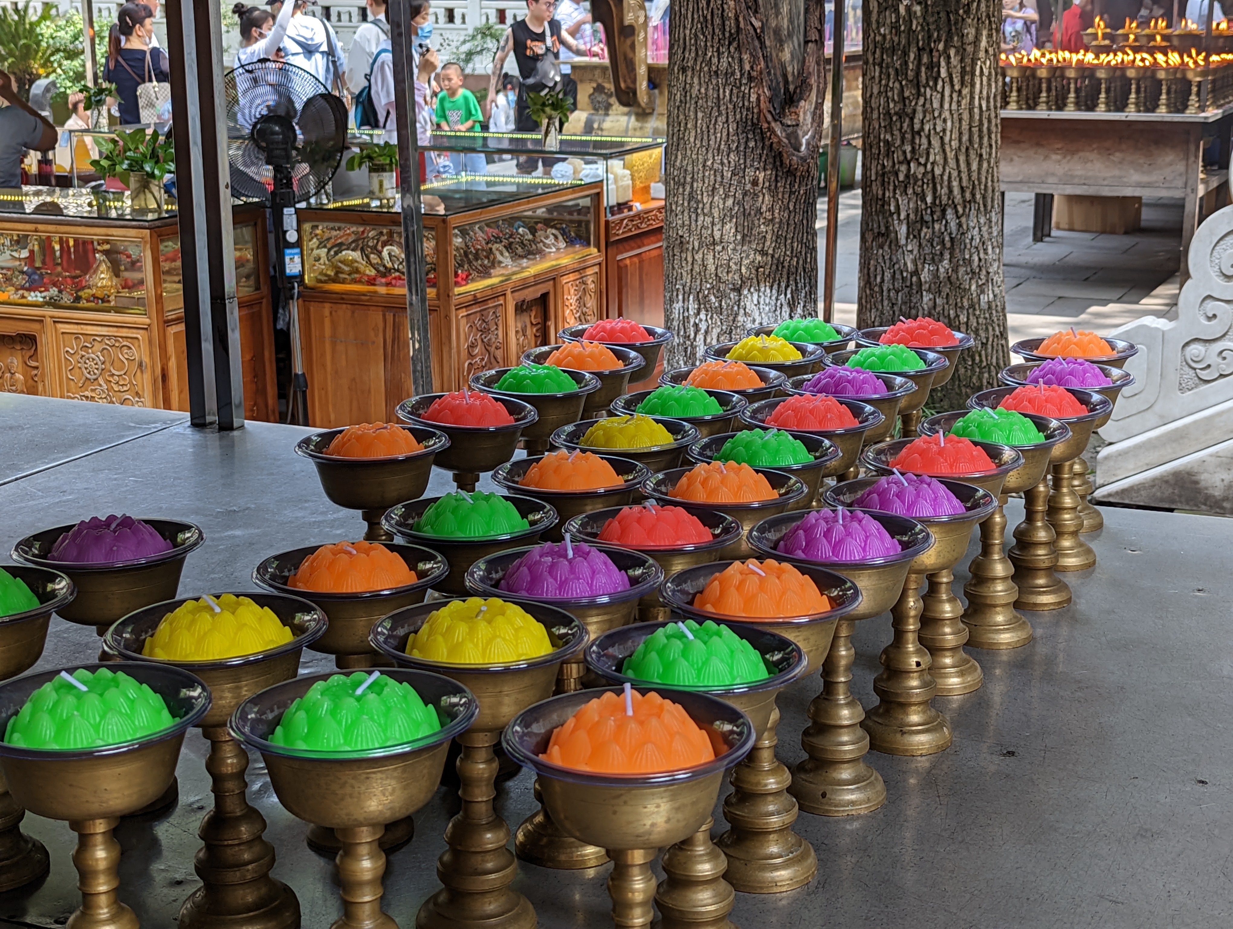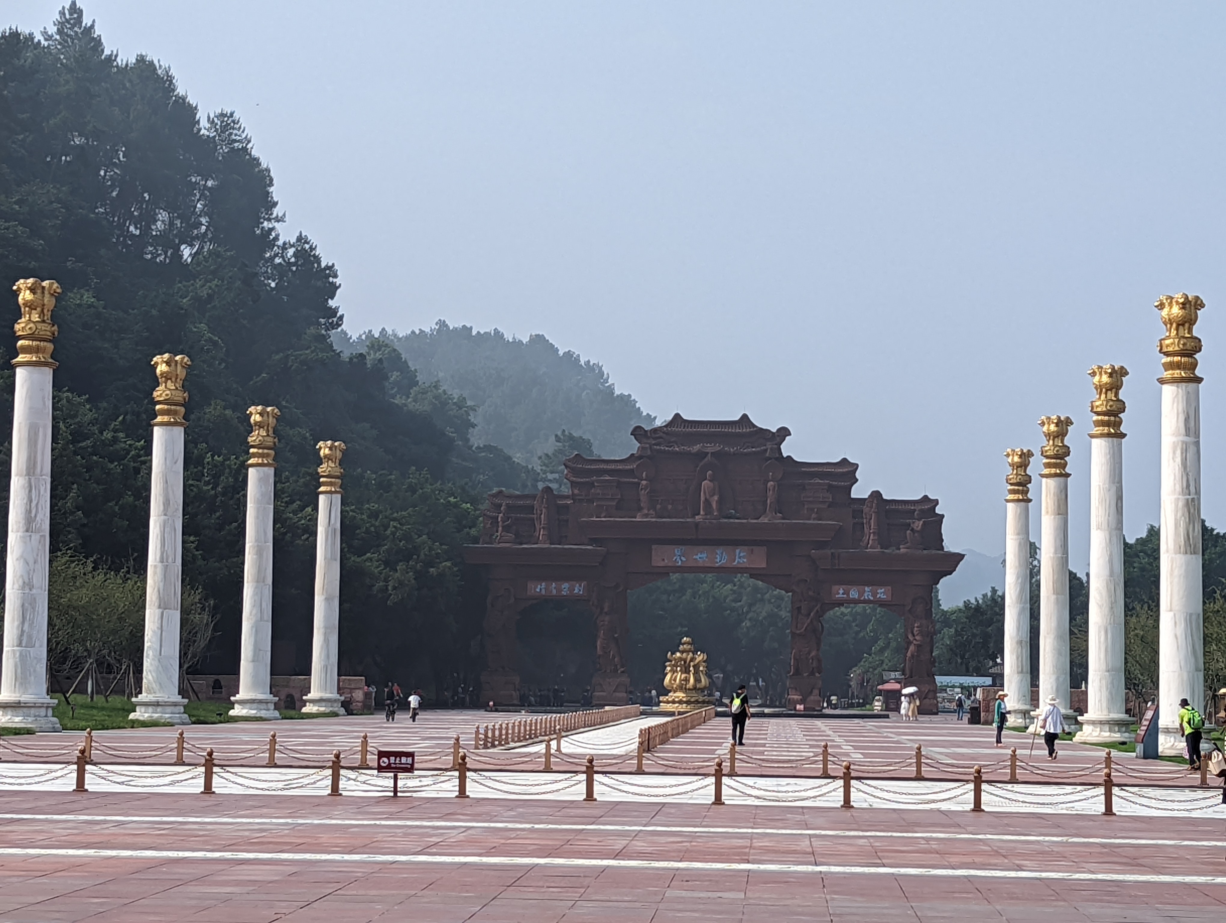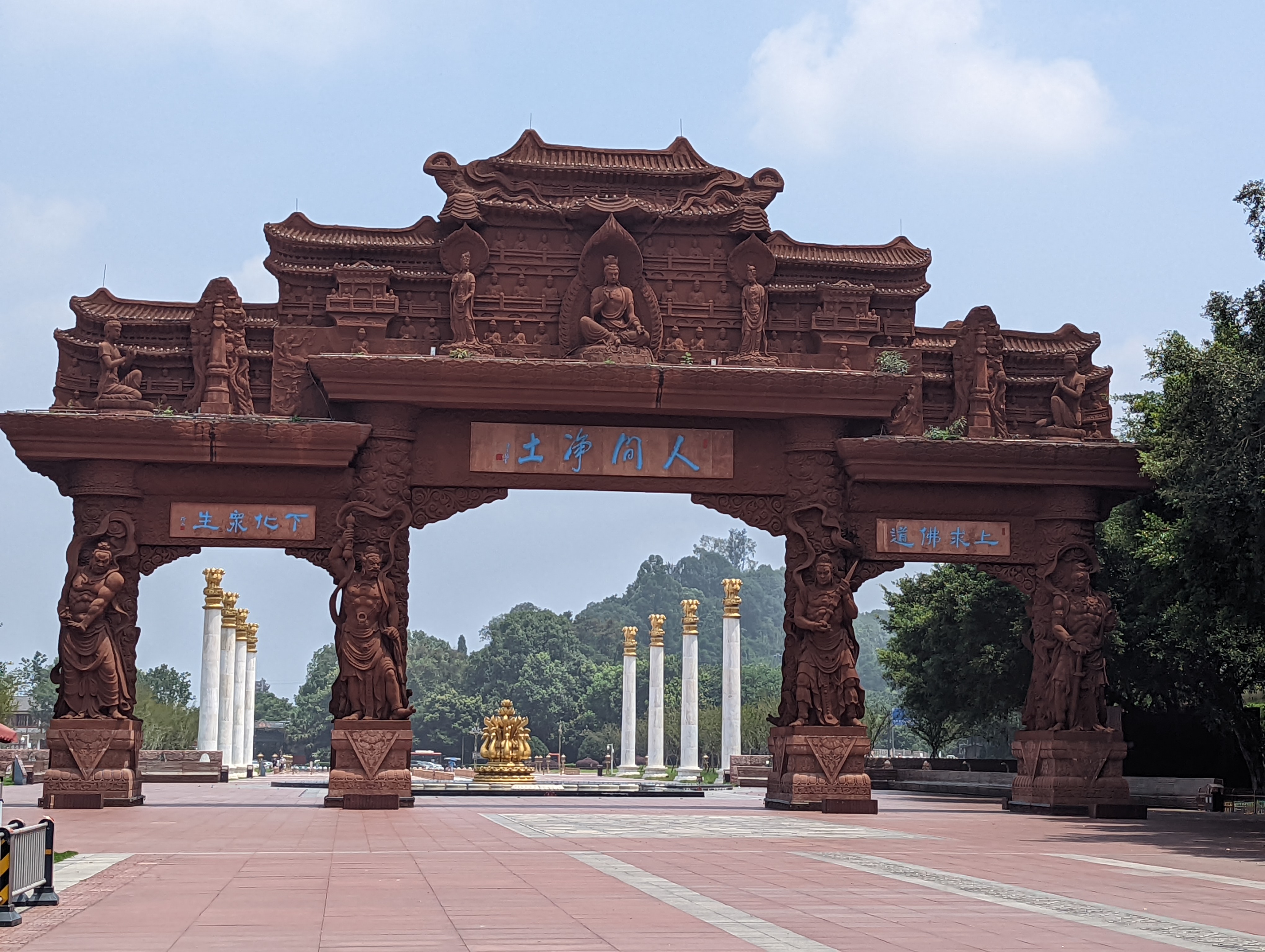 The entrance is beautiful.After climbing 36 steps you are at the top of the buddha head. It is suggested to not look back as you climb, only look forward.You can see the Buddha’s head on three sides before going down to the feet and back up again.The back side of the buddha head shows the detail of the hair. It is designed so that Easter runs off the back or side of the head and not in the face.You can see on the left side the zig zag stairs going from the head to the feet. On the upper right is okay of the path to return to the top After descending all the stairs, you can see the buddha but the light was not the best. We will be seeing it by boat as well. Check out the toenails!The pagoda at the top of the hill along the way to leaving the park.You can pay to burn a candle for prayer at the Temple.Back of the Temple.The Buddha’s taken from the top deck of a boat.Some of the Buddha’s were destroyed during the cultural revolution.In the bottom right is the tail of a dragon and right below the sun rays is the head of the dragon with water pouring out of its mouth. He is curled inside of the mountain.Symbol for happiness.Dragon fountain.Dancers at the entrance