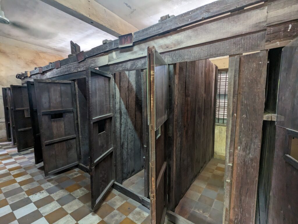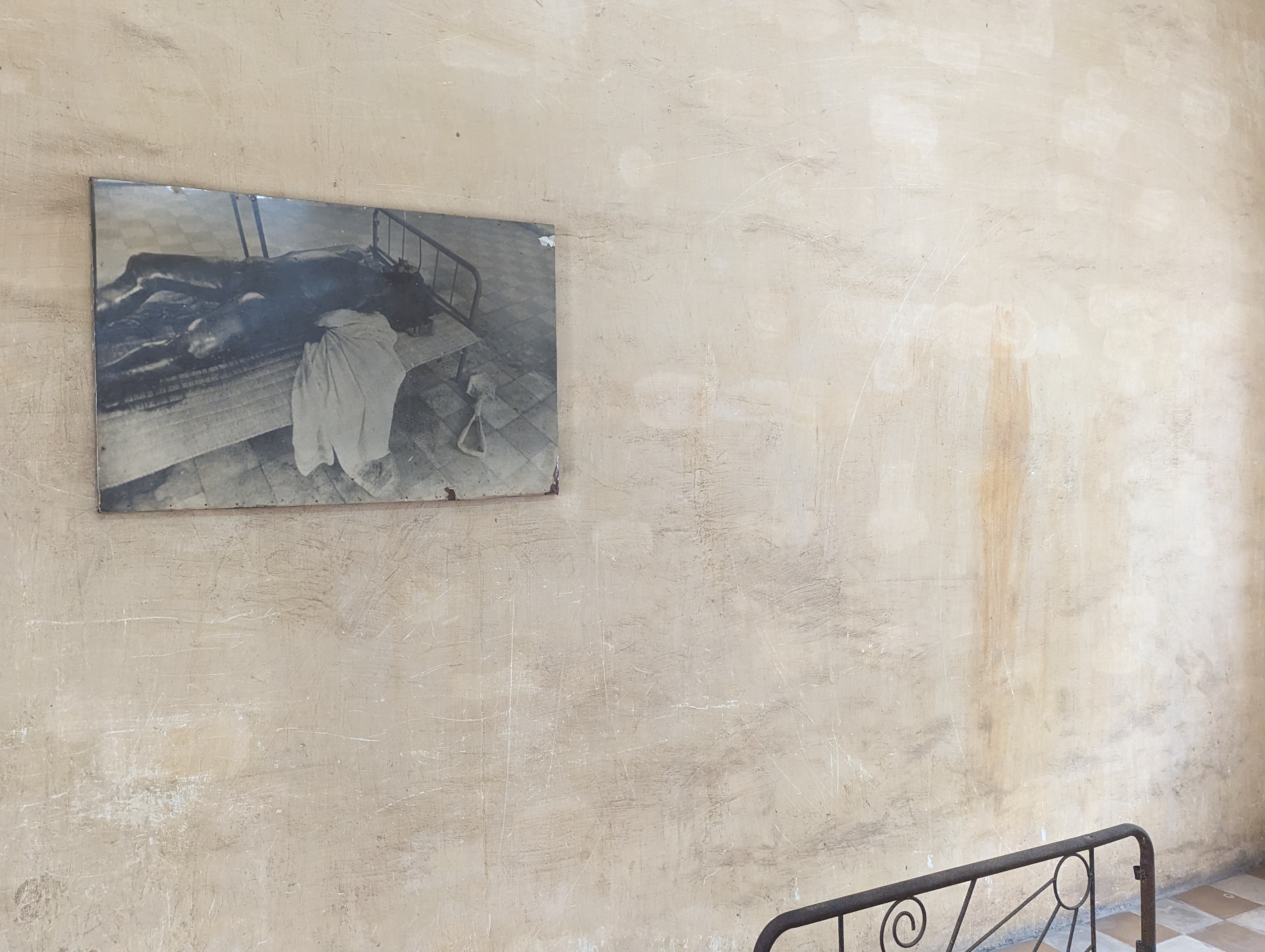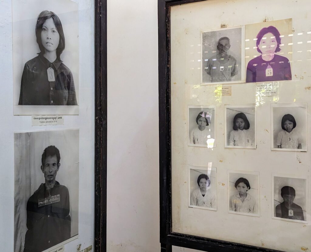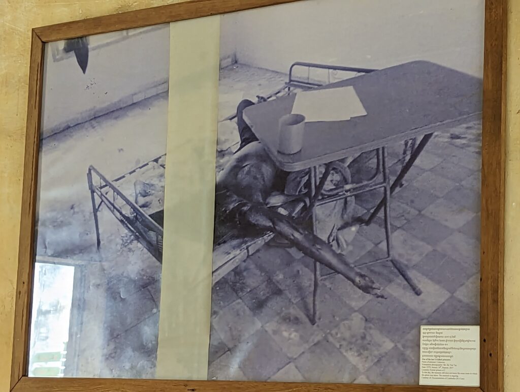 Once in the countryside, they were forced to be farmers. They eliminated all forms of religion and destroyed the country’s infrastructure. Workers in the country were then asked if they had been a professional. They believed they were going back to their jobs. Instead they were interrogated as potential spies and foreign agents and imprisoned and brutalized. Many “confessed” and were asked for family and friends names. There was more than one prison but the one I toured was S21. It is the site of a high school turned into a prison.