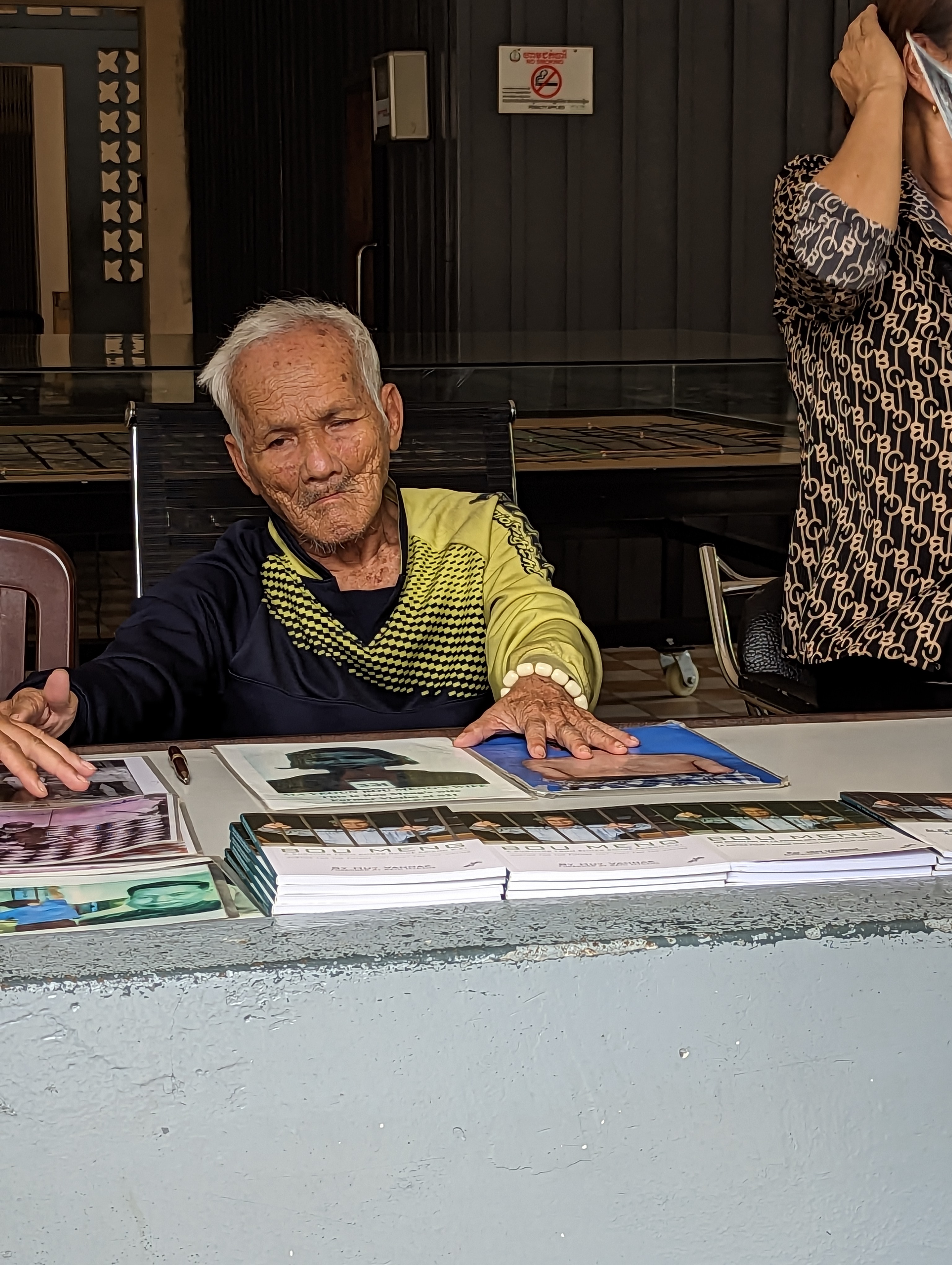 He is 94. He survived as he was an artist and painted for the soldiers. His painting of Pol Pot could be mistaken for an actual photograph.Here is a picture of him and his wife, who was killed at the prison.This man was a bit at the time of the regime. The rest of his family was killed.When the prison was found by liberators, only 7 survived. 2 of these men are alive today.