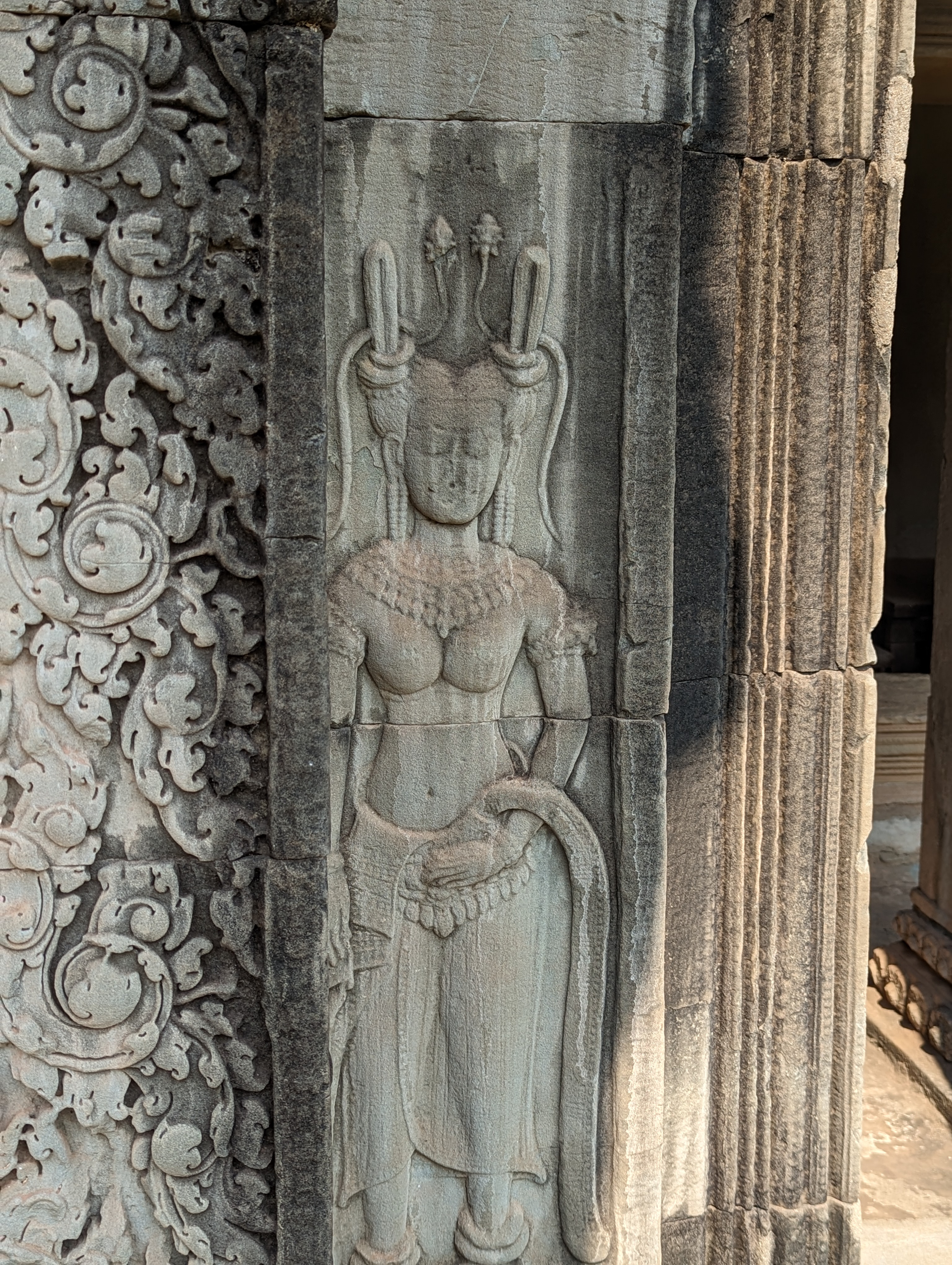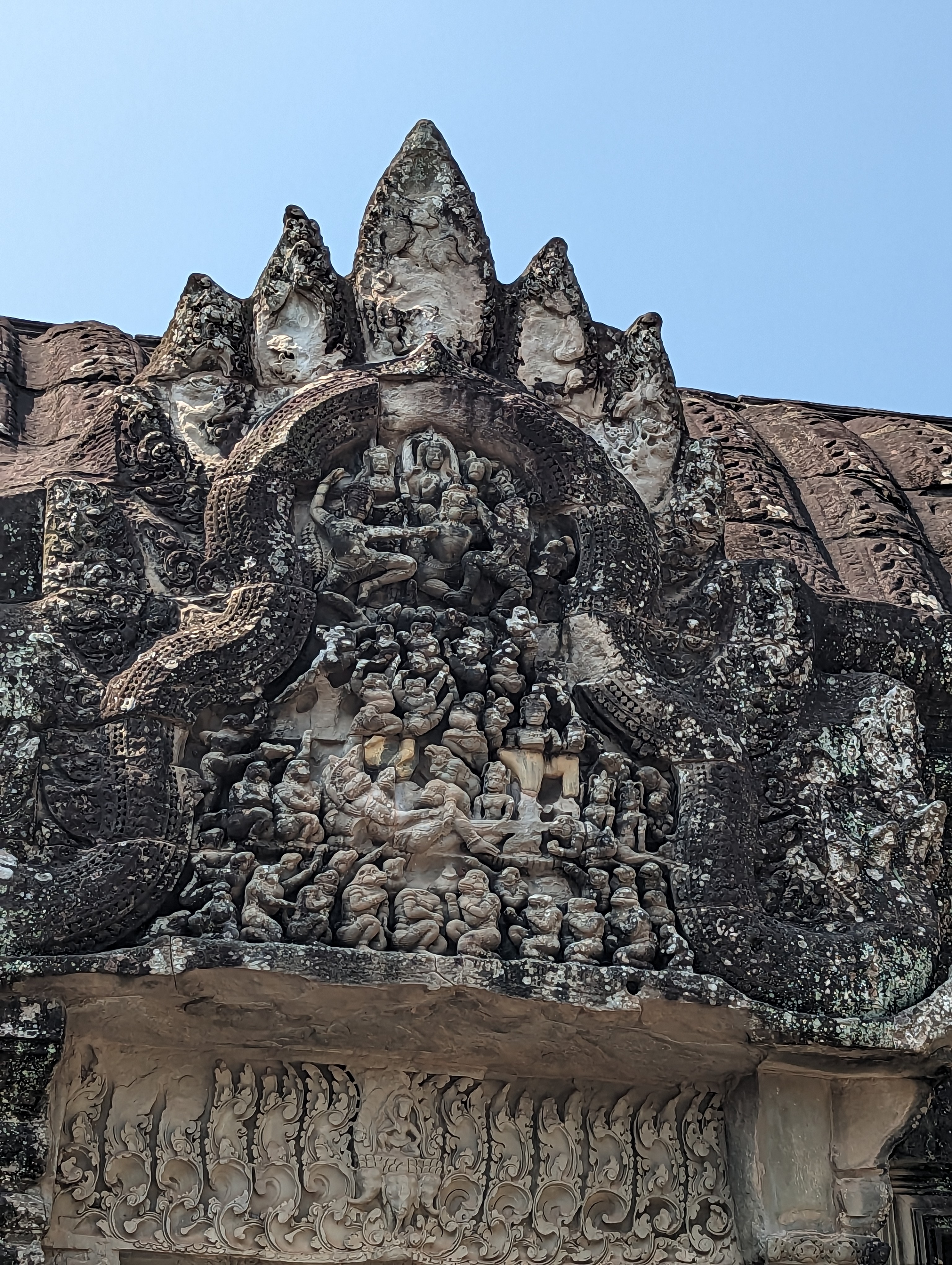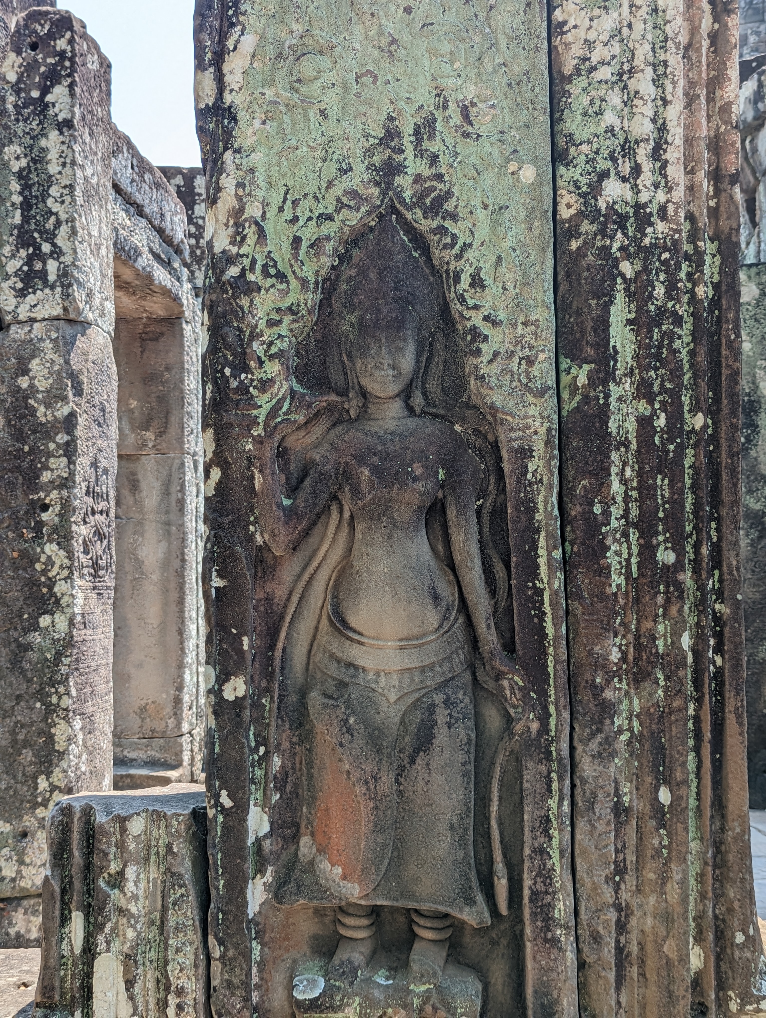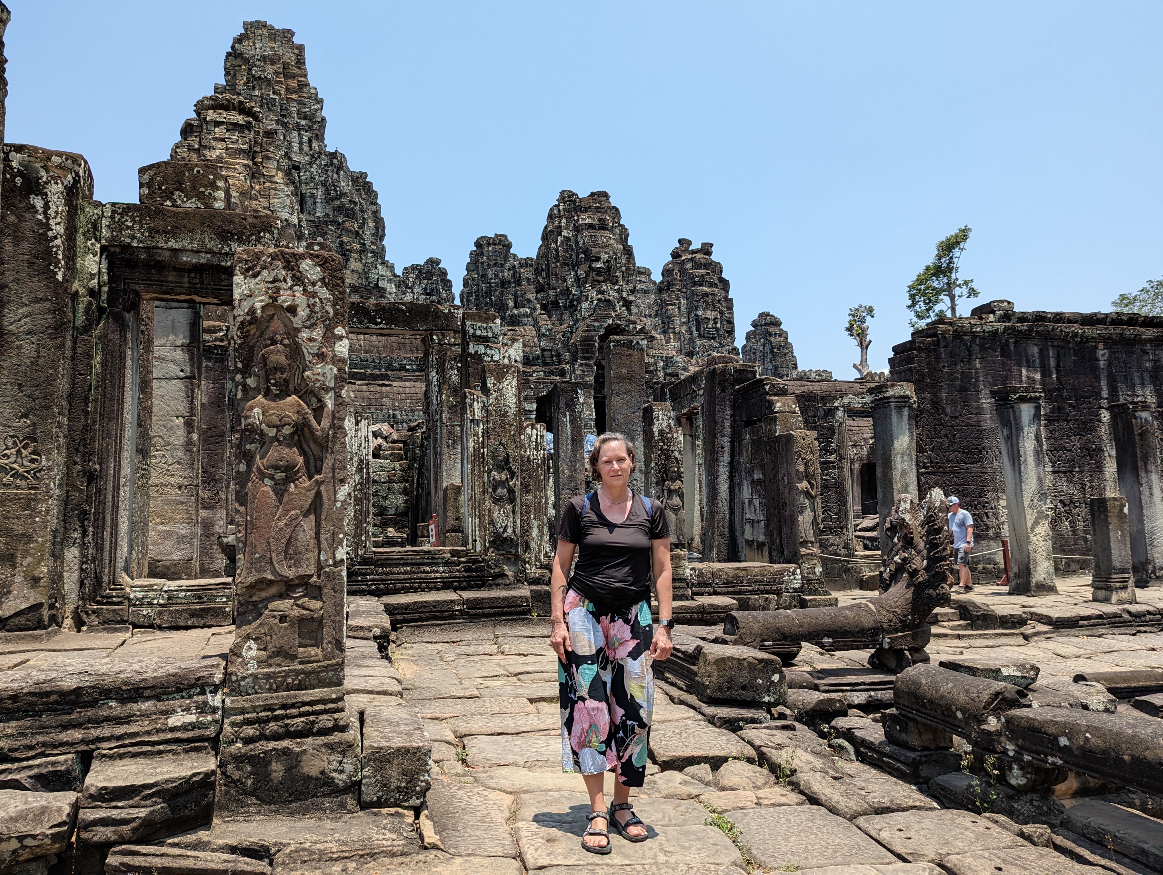 The Bayon temple is also decorated with intricate carvings called bas-reliefs, which depict scenes from Hindu and Buddhist mythology. The bas-reliefs are some of the most famous examples of Khmer art. I haven’t seen other art, but I’ll take their opinion. They are amazing and depict scenes of daily life, good vs. evil stories, etc.