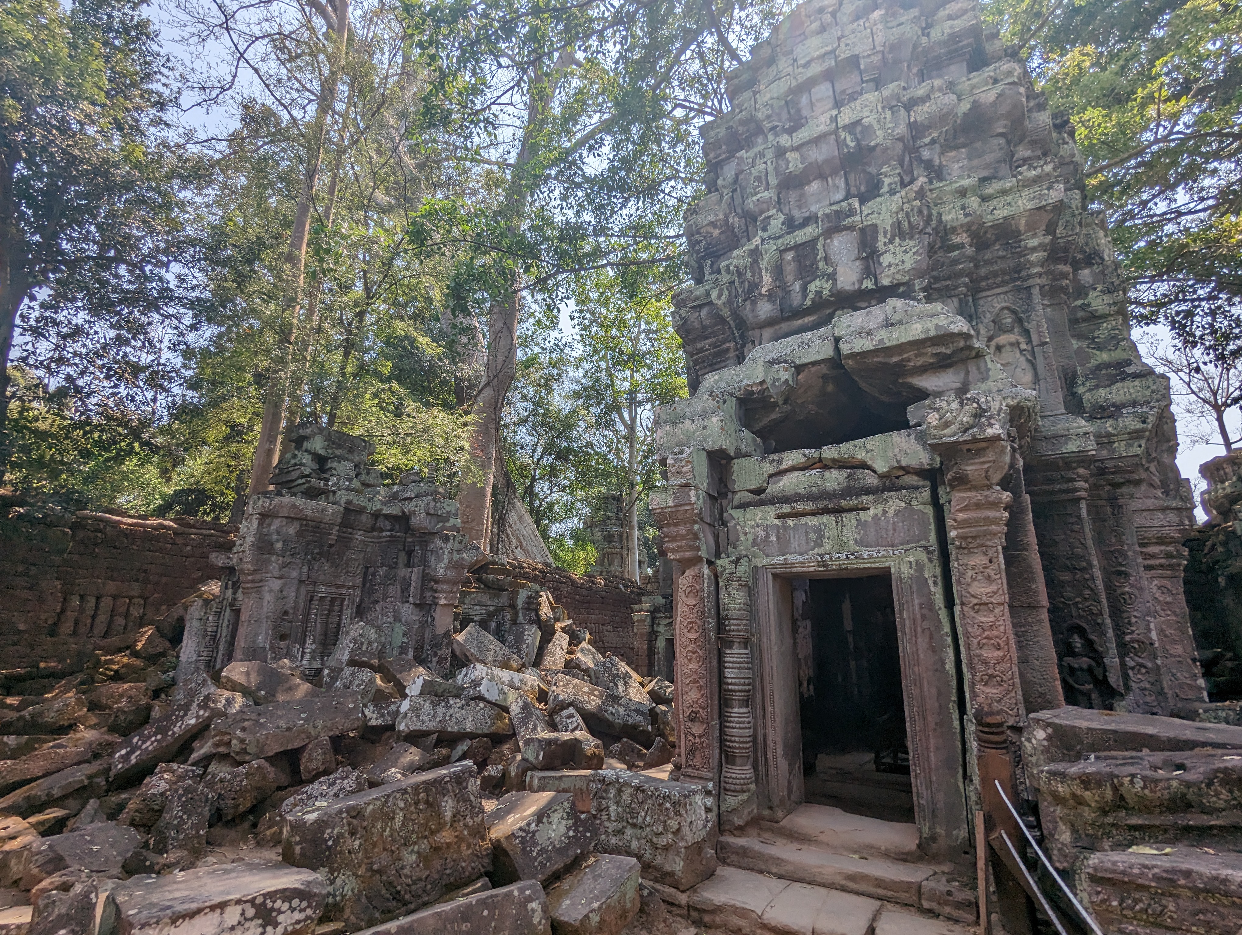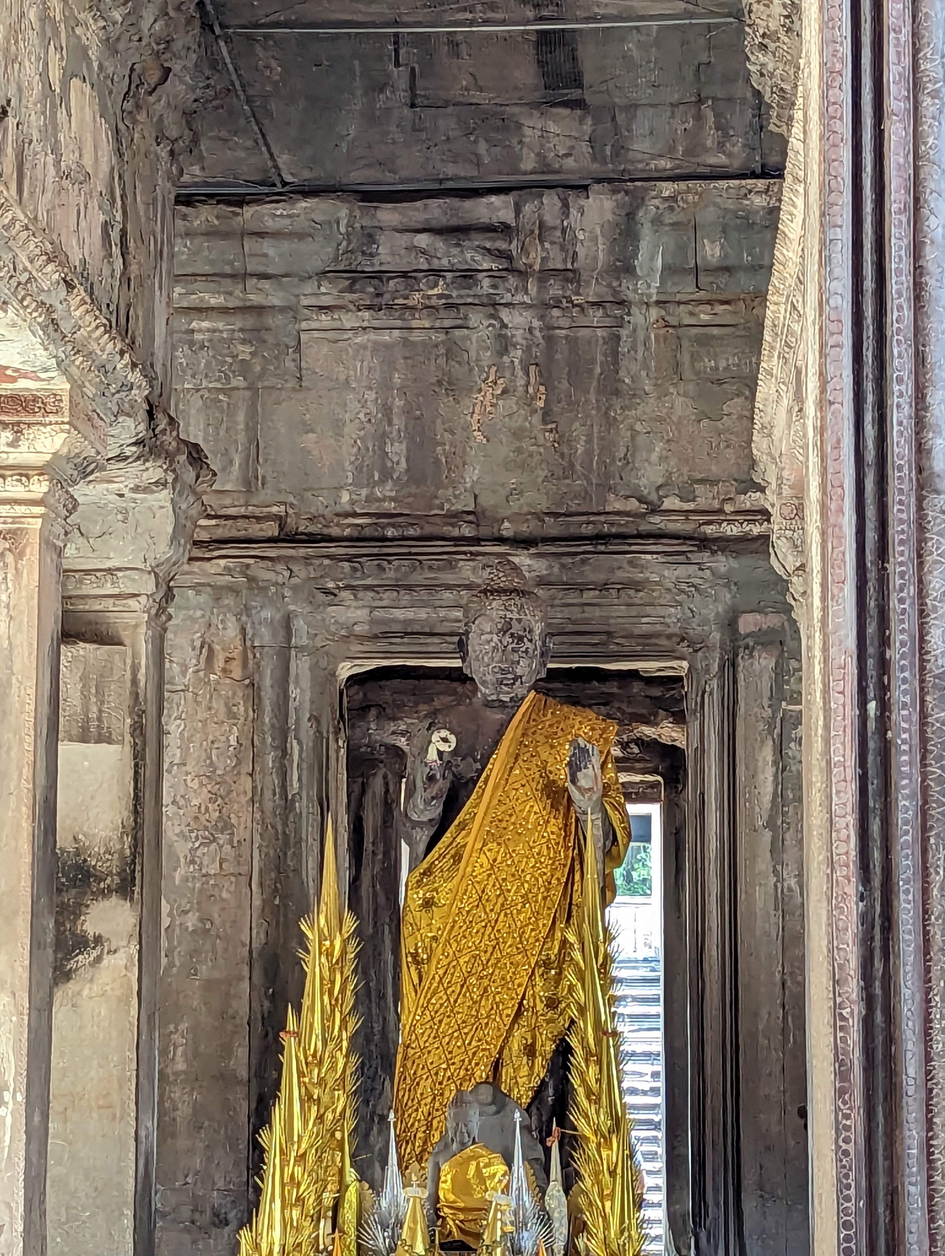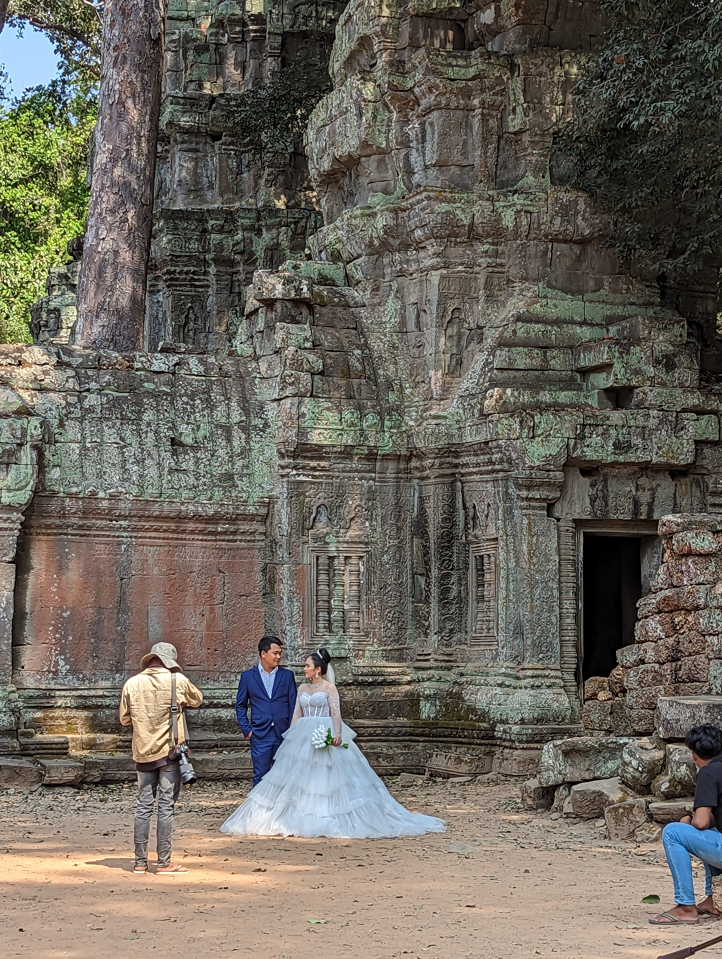 Amazing. In the complex many of the walls have fallen and you can see which being to the roof and which blocks belong to the walls.Inside the Ta Prohm complex.This roof has been replaced. They are the original blocks but now held together by mortar. Countries have pledged and taken over the reconstruction of the various temples in Angkor Wat.A headless Buddha. Many of the rooms had gold buried and jewels in the walls but those have been removed and are long gone.Inner courtyard passage.Many walls and towers are in ruins.We were there when wedding photographs were taken. They take the pictures before the wedding and of course they have more than one dress.