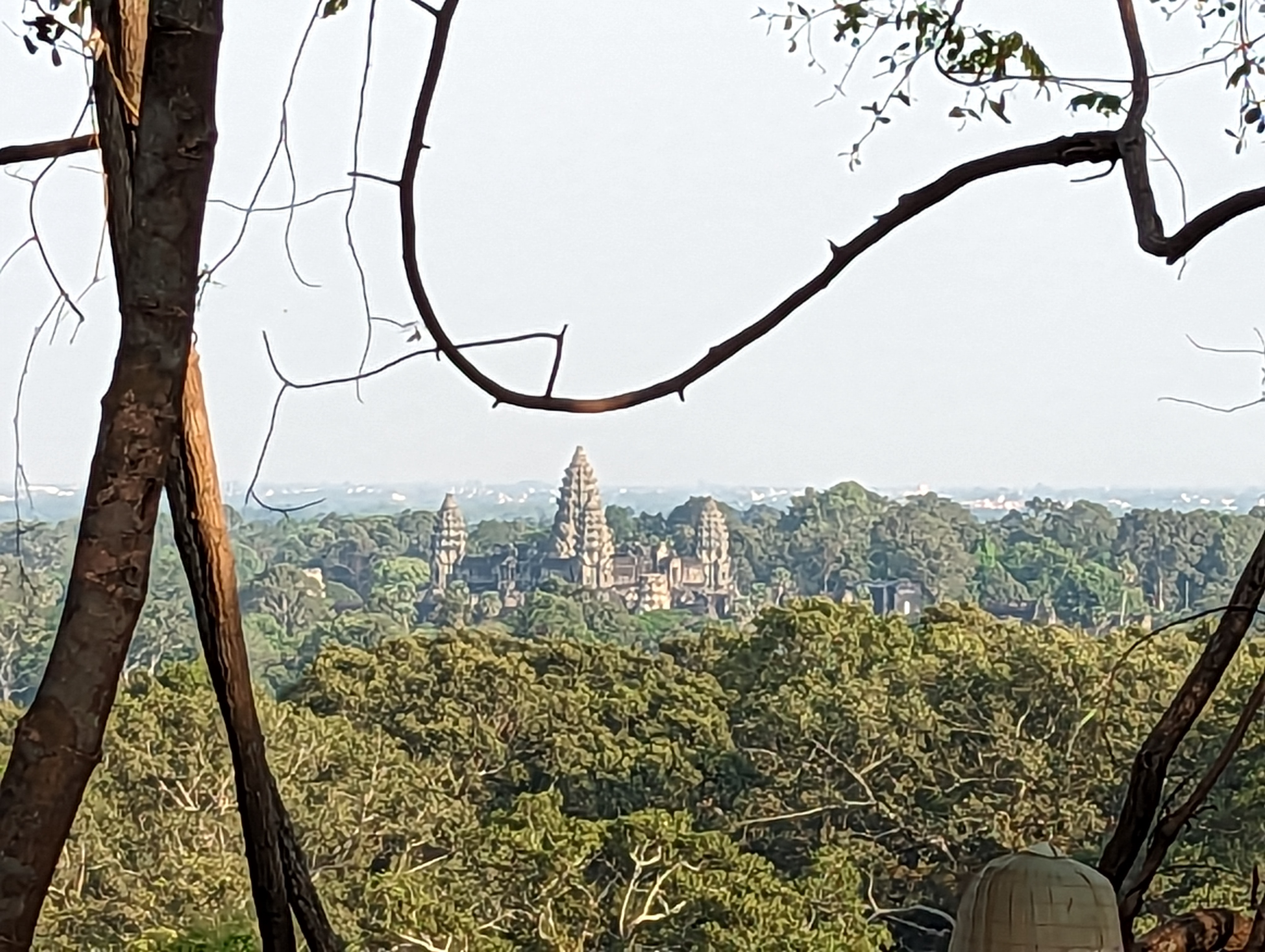 The top of the tower.From the hill you can see the Angkor temple. We are still in the Angkor Wat complex from this point.
